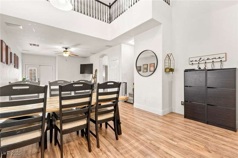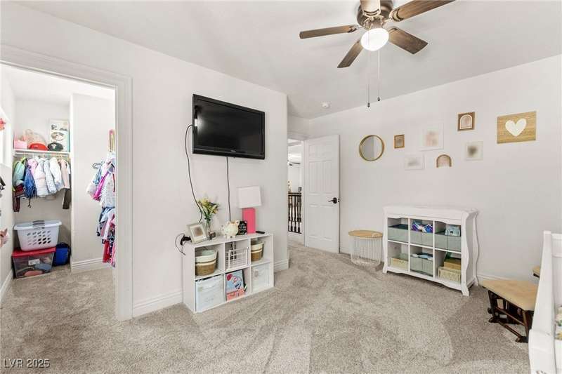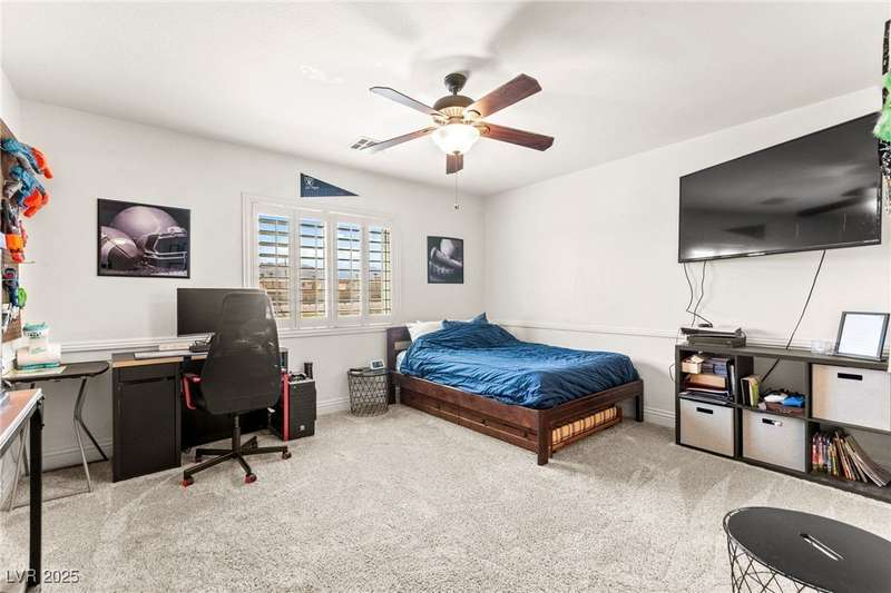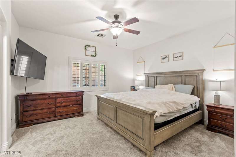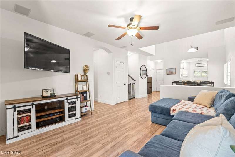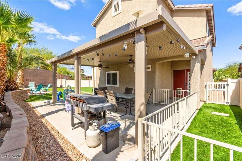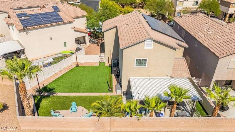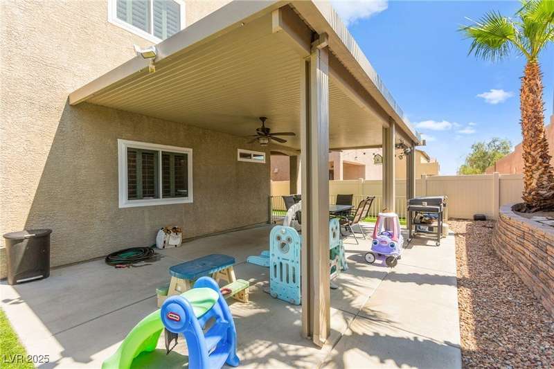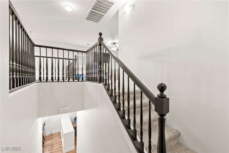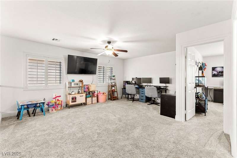 Welcome to an incredible corner lot gem w/ NEW windows throughout installed in 2025 w/ shutters, NEW carpet installed in 2024, NEW turf installed in 2023.This amazing 3 bedroom (ALL w/ walk-in closets) & 2.5 baths boasts high ceilings w/ great natural lights throughout.Primary bedroom is located downstairs for a desirable floor plan w/ dual vanity sinks & a large walk-in closet.Upstairs features a spacious loft for office/play area/additional lounging area along w/ 2 additional bedrooms & bathroom with door separation between shower/toilet & sink/vanity areas ideal for shared space .The backyard is an extensive corner lot w/ covered patio & plenty of room for outdoor lounging & activities for memories to be created w/ loved ones including a perfect space for dog run for fur babies WITH GATE as well as space for a future pool or small recreational sports court.This spectacular home is located by freeways, restaurants, grocery stores & outdoor amenities including Floyd Lamb Park