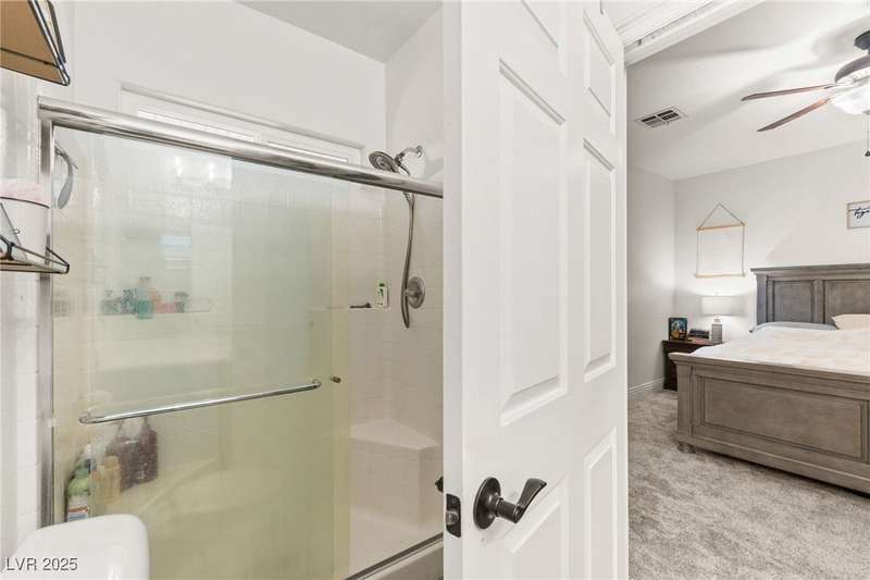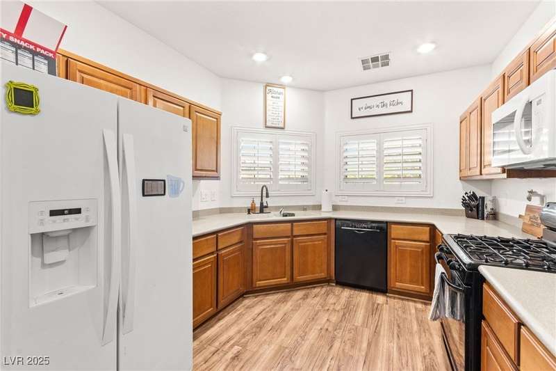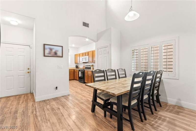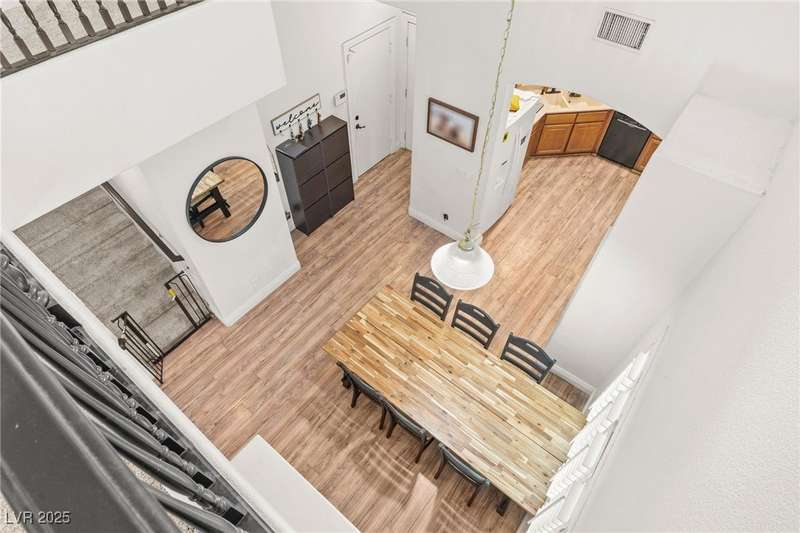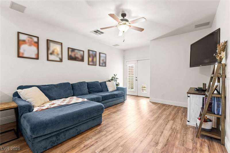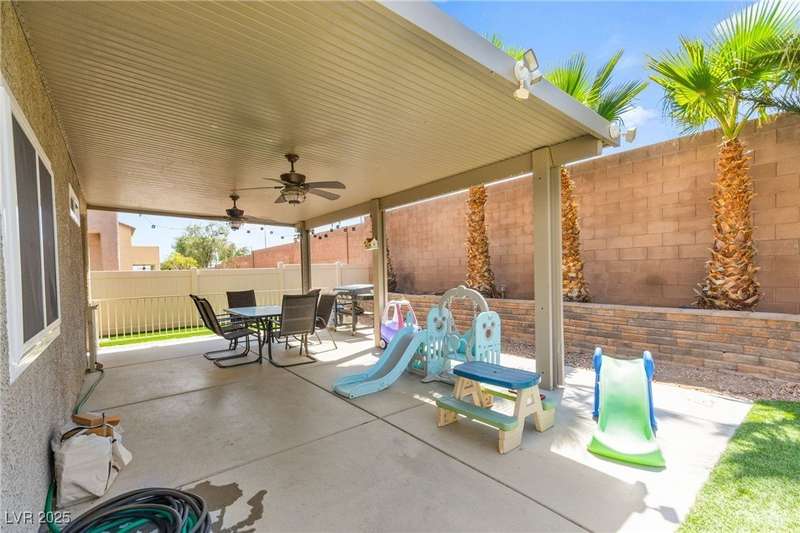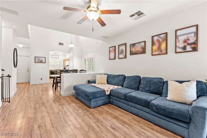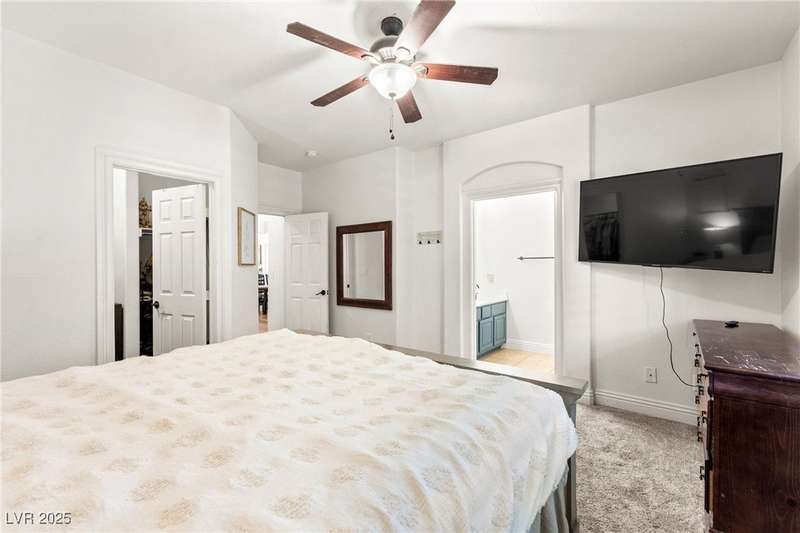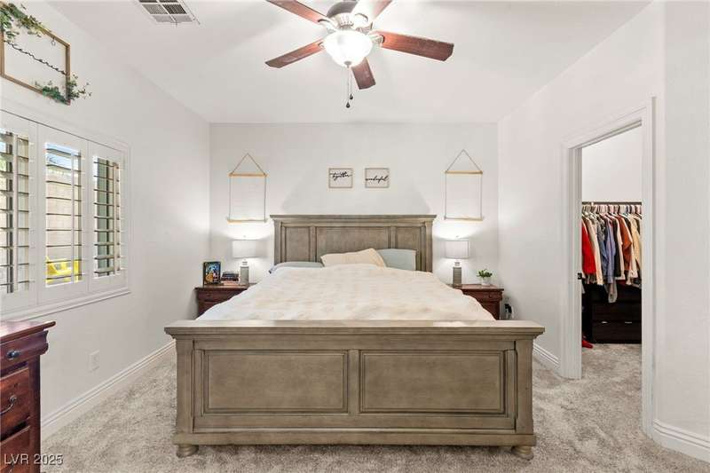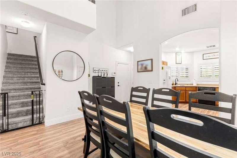 Welcome to an incredible corner lot gem w/ NEW windows throughout installed in 2025 w/ shutters, NEW carpet installed in 2024, NEW turf installed in 2023.This amazing 3 bedroom (ALL w/ walk-in closets) & 2.5 baths boasts high ceilings w/ great natural lights throughout.Primary bedroom is located downstairs for a desirable floor plan w/ dual vanity sinks & a large walk-in closet.Upstairs features a spacious loft for office/play area/additional lounging area along w/ 2 additional bedrooms & bathroom with door separation between shower/toilet & sink/vanity areas ideal for shared space .The backyard is an extensive corner lot w/ covered patio & plenty of room for outdoor lounging & activities for memories to be created w/ loved ones including a perfect space for dog run for fur babies WITH GATE as well as space for a future pool or small recreational sports court.This spectacular home is located by freeways, restaurants, grocery stores & outdoor amenities including Floyd Lamb Park