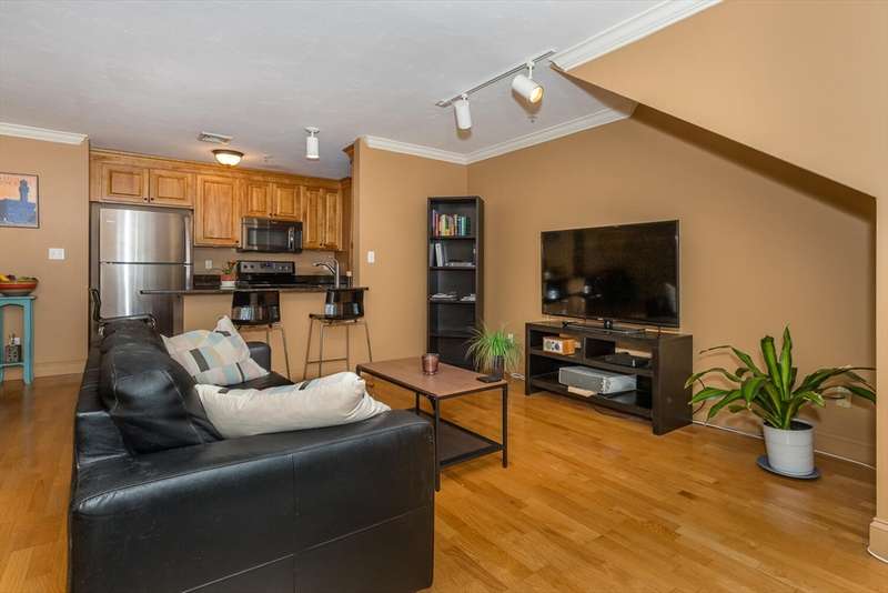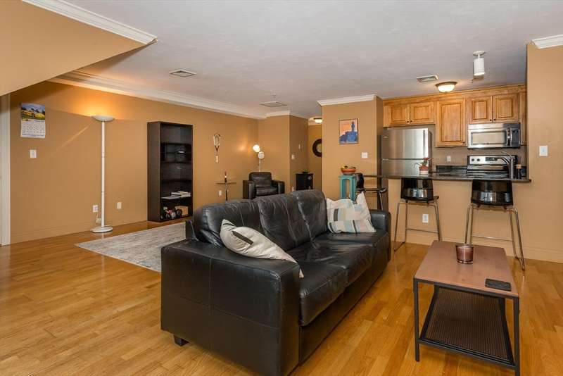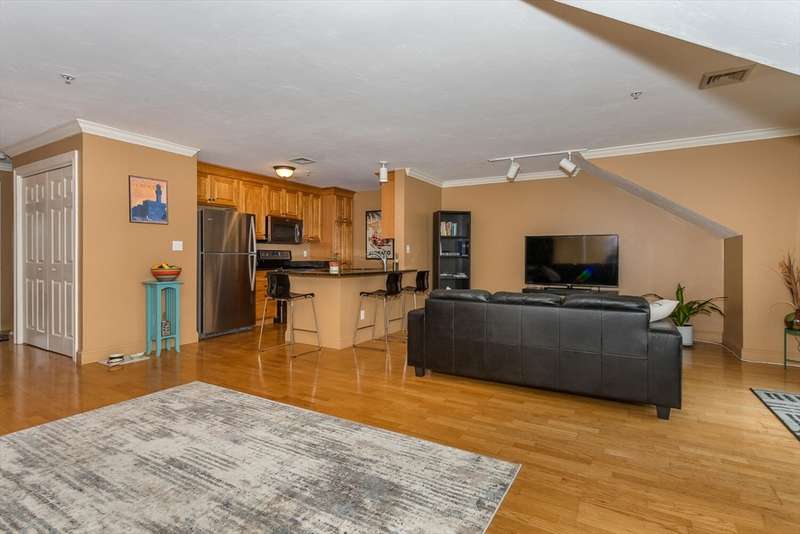 Experience stylish, open-concept living in this Beautifully Designed 1 Bedroom Penthouse Condo. The modern granite kitchen features stainless steel appliances and a breakfast bar, seamlessly flowing into a spacious living room with hardwood floors throughout. Step through the sliding doors to your private balcony and take in peaceful sounds of the Forge Pond waterfall. Additional highlights include in-unit laundry and a prime downtown Canton location, just steps from the train, shopping, dining, and more!