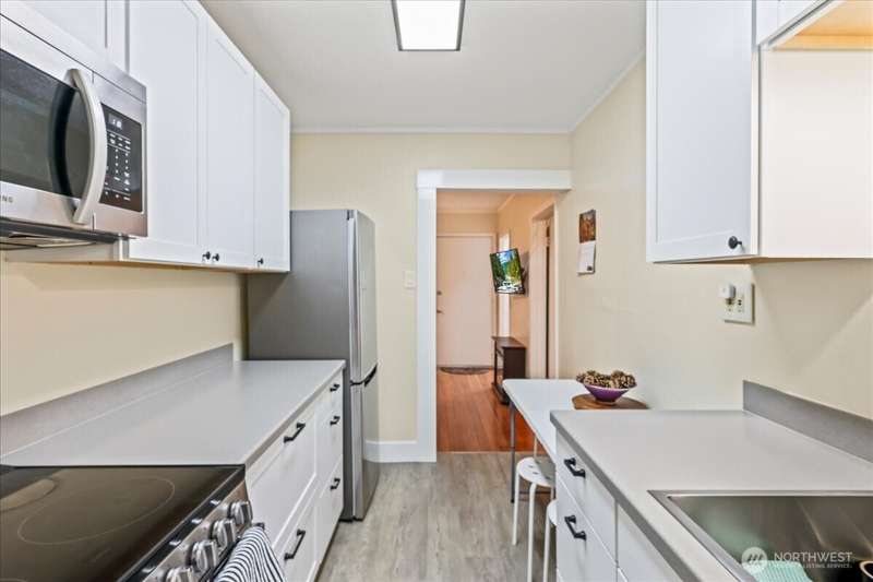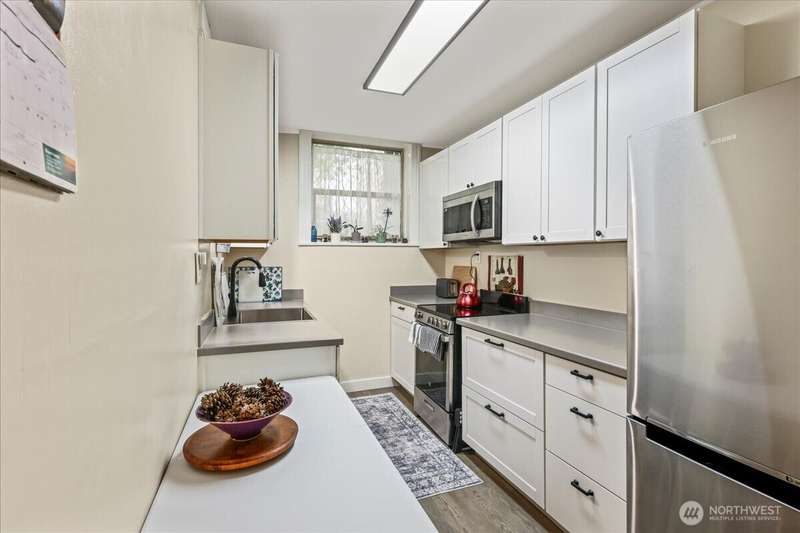 Best kept secret in Seattle! Adorable 2 bedroom Strathmore co-op. Corner unit with lots of windows and well designed floorplan. Updated kitchen with eating area, hardwood floors in the living room and bedrooms, full size bathroom. Community room, storage unit, laundry, mailbox, & bike storage all conveniently located just down the hallway. Ideal location on beautiful tree-lined street in sought after lower Queen Anne, near numerous restaurants, shopping, Climate Pledge Arena, Seattle Center, Space Needle, Olympic Sculpture park and Myrtly Edwards waterfront park. Easy access to unit through West side entry near unit door or enter through stylish main lobby. Spec Asses paid by seller at closing. Dues include W/S/G, prof management & taxes.