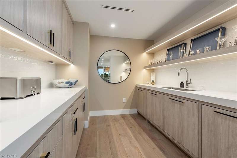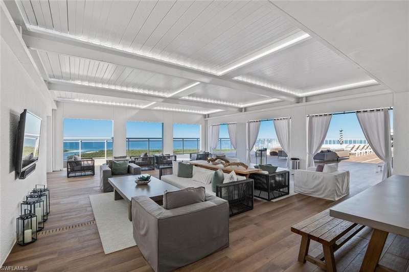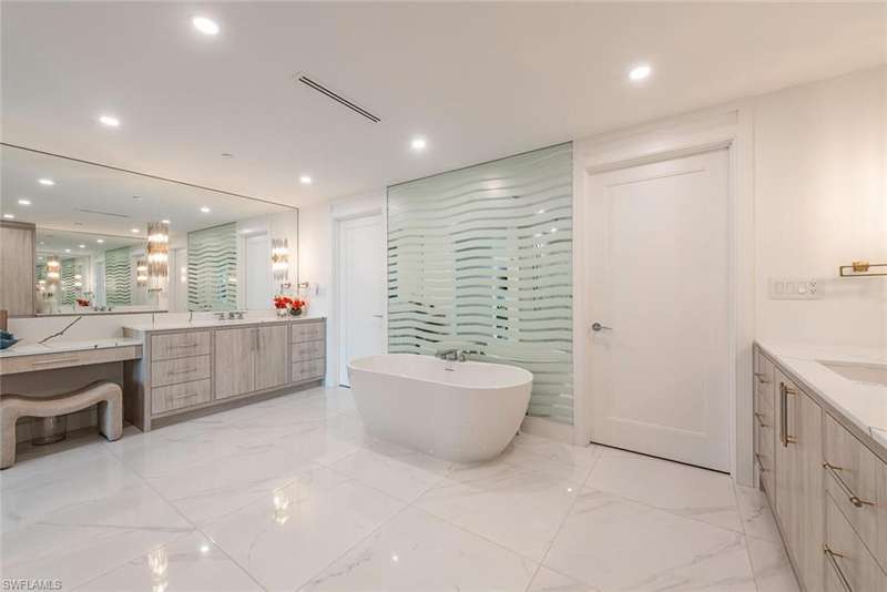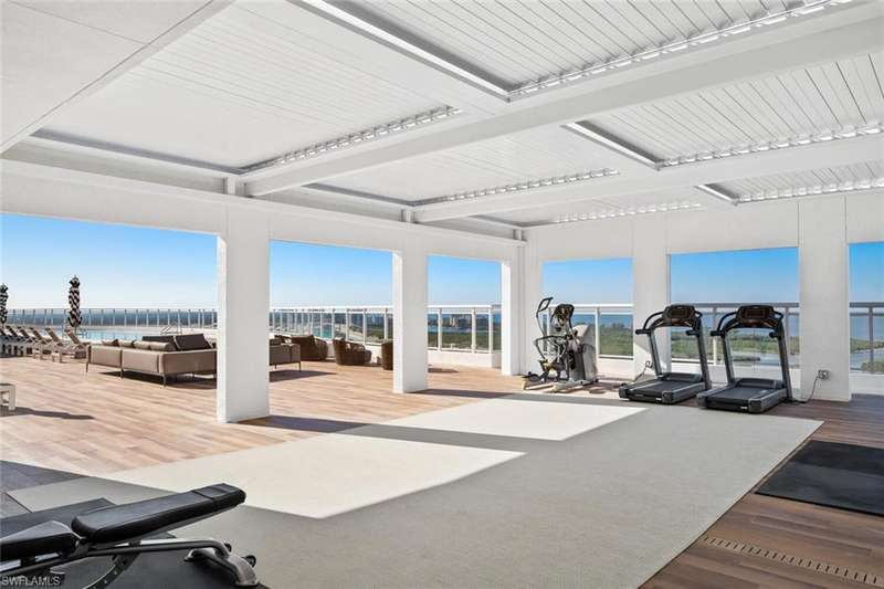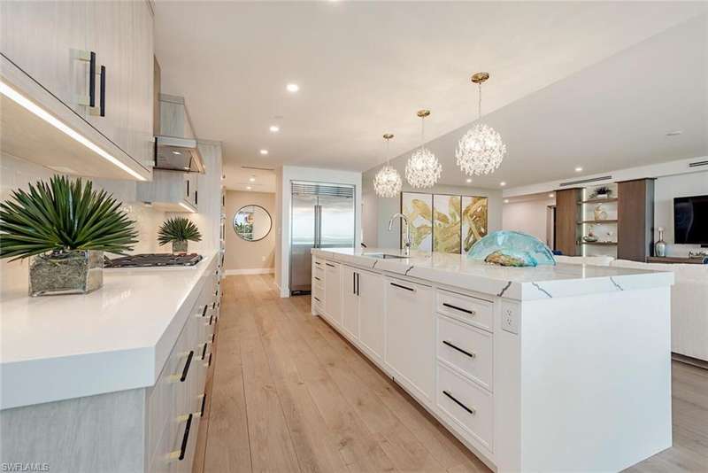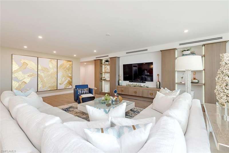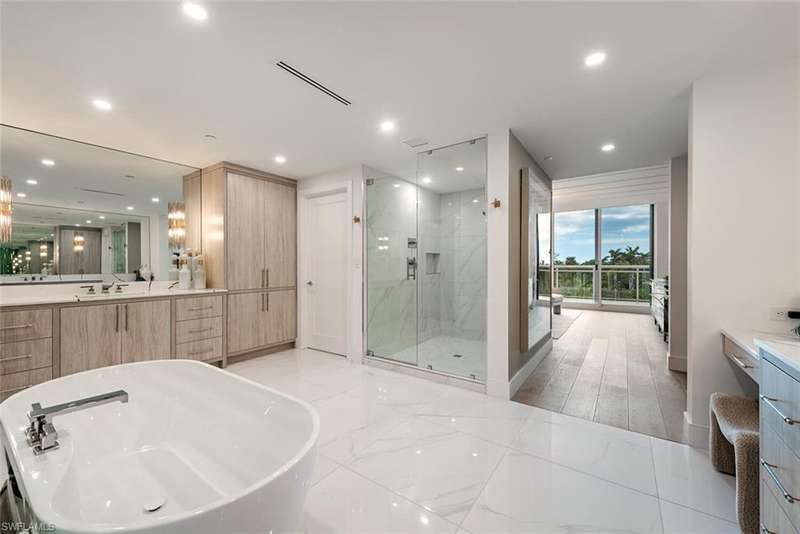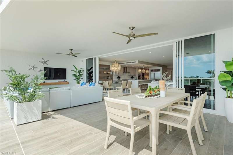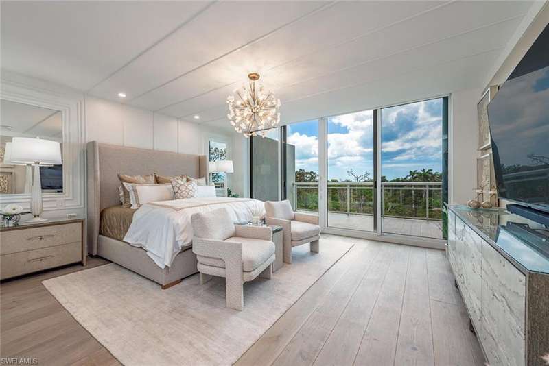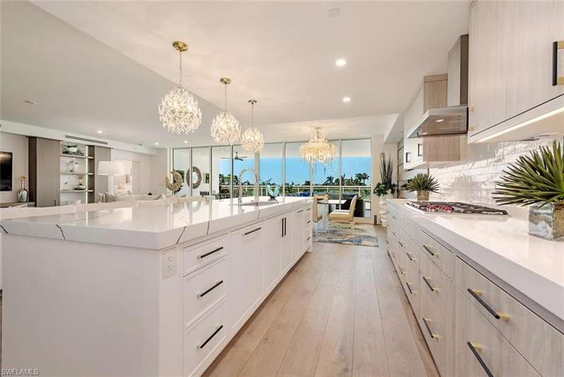 Welcome home to unit 302 in Tower 400, recently completed and beautifully finished, this Kalea Bay residence provides all the conveniences of living in a brand-new luxury condominium and a 5-star amenities center, a combination that has made Kalea Bay one of the most successful and desirable communities in Naples. This residence features a wall of sliding glass doors leading to a unique expansive extended terrace totaling 1,242 square feet including 523 square feet of covered outdoor living plus 719 square feet of open balcony area. The interior of the unit lives like a single-family home with 3,290 square feet of living space including 4 bedrooms and 4 full bathrooms including spectacular primary suite with a massive custom closet. Highlights include stunning wall decor throughout plus impressive built-in units in the great room and the media room including back-lit wall panels that can be dimmed for movies. The lighting fixtures are fabulous and eye catching as you enter the home