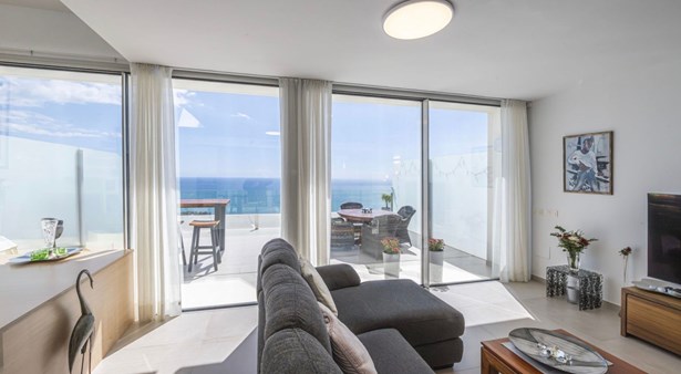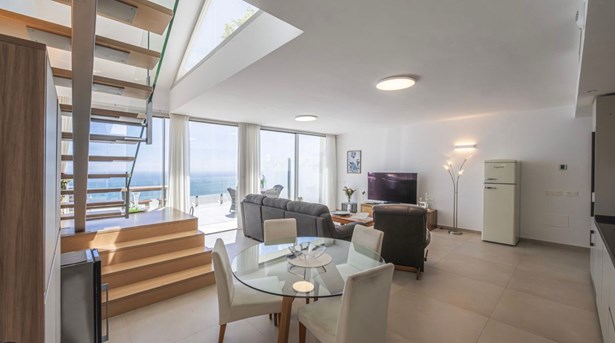 Discover a one-of-a-kind duplex penthouse in the prestigious Stupa Hills development in Benalmádena, right next to the iconic Buddhist Temple. Designed to impress, this home is bathed in natural light thanks to its southeast orientation and features breathtaking, uninterrupted views of the Mediterranean Sea.Step inside and experience effortless elegance. A welcoming hallway flows into a bright open-plan living and dining space, framed by floor-to-ceiling windows that invite the sea into your home. The state-of-the-art Italian-designed kitchen is fully equipped with premium appliances and an advanced osmosis water filtration system. From here, slide open the glass doors and step out onto your expansive terrace – the perfect spot to entertain, dine, or simply unwind with stunning sunsets as your backdrop.The main level also offers two beautifully designed bedrooms with bespoke Italian wardrobes, alongside a sleek, contemporary bathroom.An architectural staircase of glass, wood, and