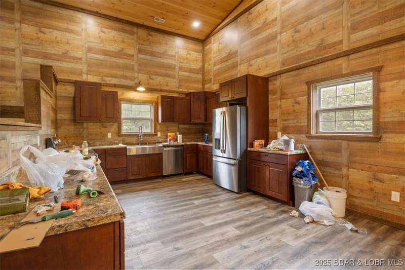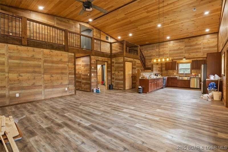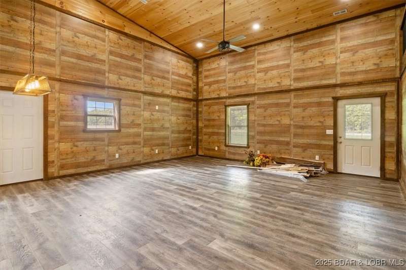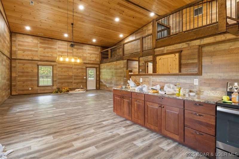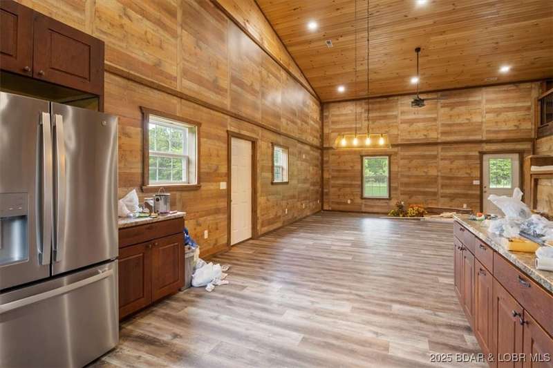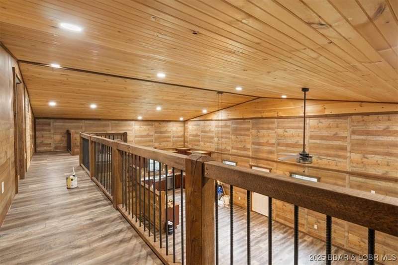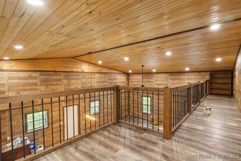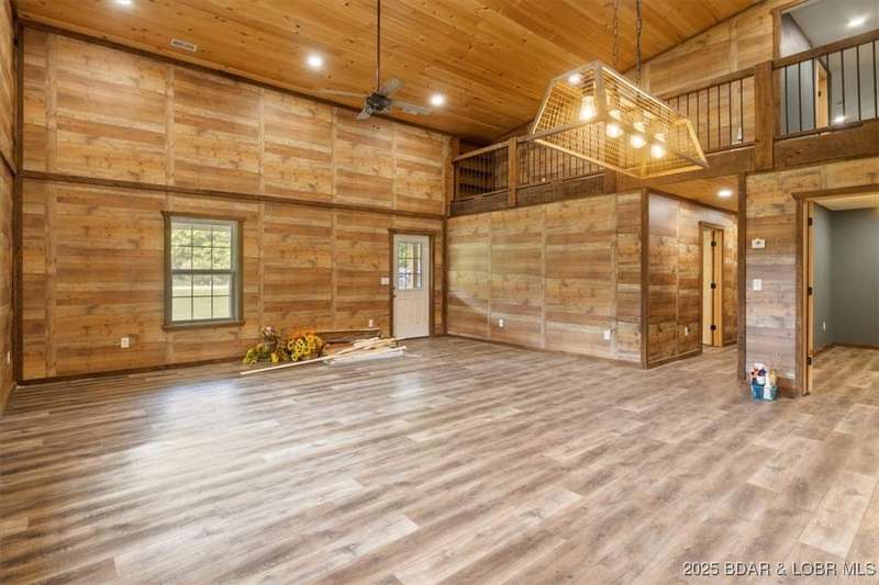 Custom Shouse on 5 acres with so much potential!!! If youre looking for a gorgeous, serene setting right in the middle of a nature preserve like subdivision, this home is the perfect fit! With 3,400 sqft of living space and an oversized 2 car garage, there is space for it all here. Walk inside to an open concept living space with beautiful cathedral ceilings, LVP flooring and tons of cabinets in the kitchen! The main level also features main level living with the owner suite and bathroom, a second bedroom, and laundry/ utilities. The upper level has 3 additional bedrooms and two more bathrooms. Upgrades such as spray foam insulation keep utilities costs very low and the metal siding / roof provides a no maintenance exterior! Forbes subdivision has outstanding amenities such as stocked ponds that are well maintained, tennis courts, gun range, camping sites, and access to lake of the Ozarks! This gated community is designed for those who want space and to be in a well kept location. Just 1 mile of gravel and fiber optic internet available! While the rooms upstairs currently dont have windows, they are spacious and could be easily converted to conforming bedrooms.