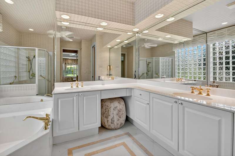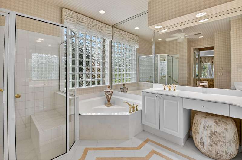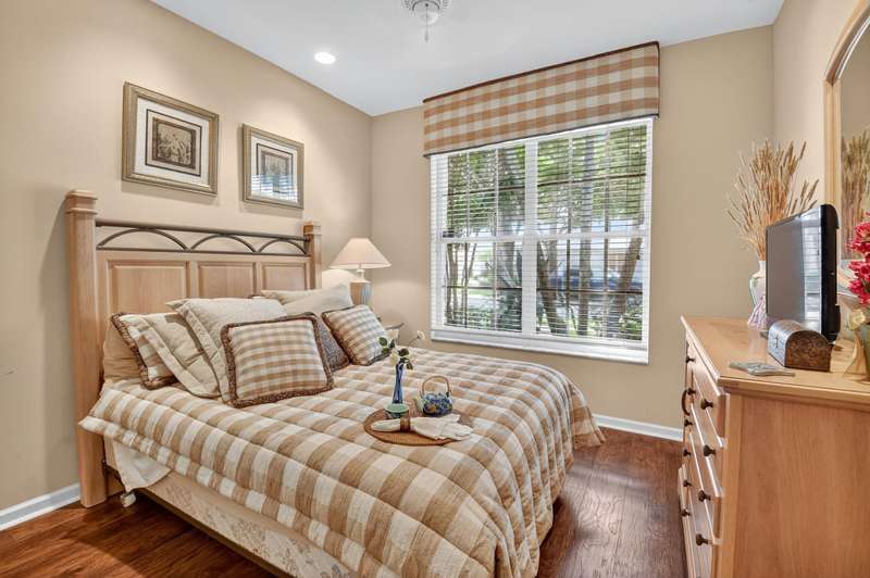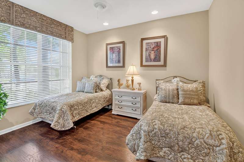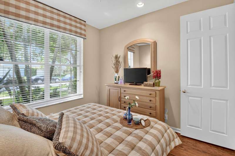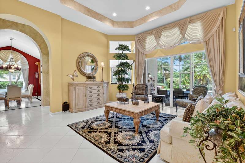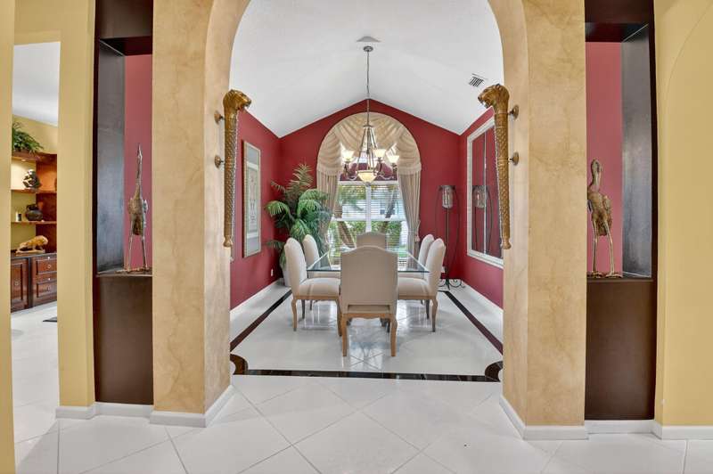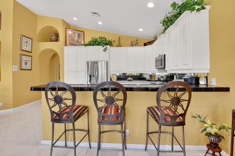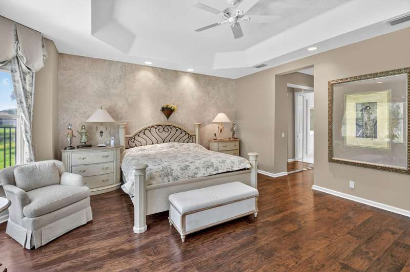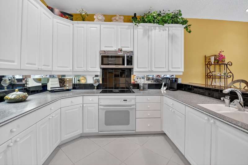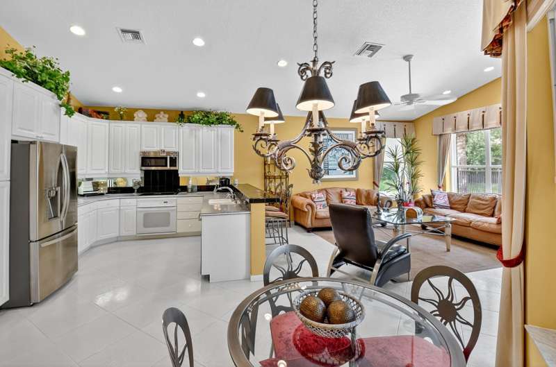 Immaculate 4BR/2.5BA Madrid on oversized lot with stunning pool. Elegant double-door entry opens to soaring ceilings and abundant natural light throughout. Gourmet kitchen features custom 42" cabinets, granite counters with backsplash, connecting seamlessly to spacious family room. Sliders from both living areas lead to screen-enclosed patio with private pool - perfect for entertaining. Master suite includes his & hers walk-in closets, luxurious bath with dual vanities, separate shower and Roman tub. Beautiful tile flows throughout all living areas. 4th bedroom currently serves as den with custom built-ins. Community boasts fabulous newly refurbished multi-million dollar clubhouse offering tennis, pickleball, state-of-the-art fitness center, lakeside café and more activities.