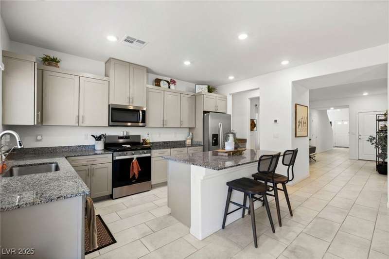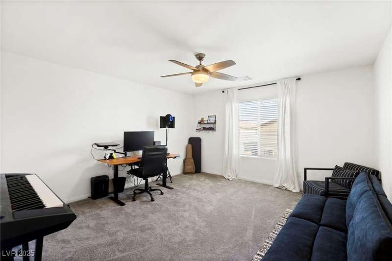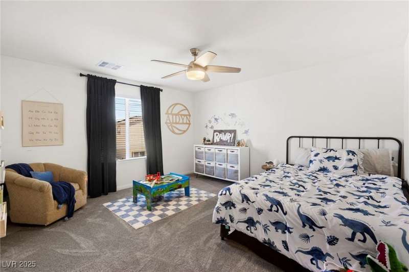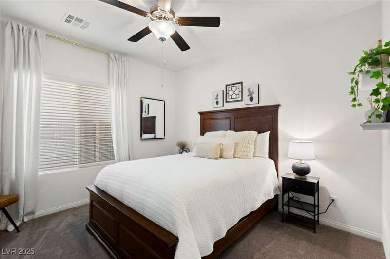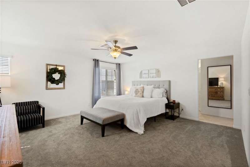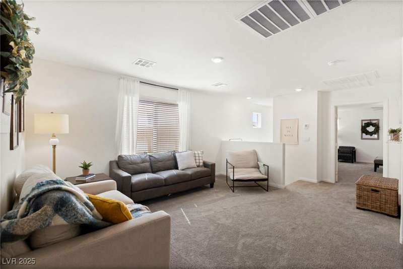 Beautifully maintained and nearly new DR Horton home located in a gated, highly sought-after community! This spacious 5-bedroom floor plan offers a full bedroom and bathroom on the first floor?perfect for guests, multi-gen living, or a private home office. Upstairs, enjoy a versatile loft space and generous room sizes throughout. This home is truly move-in ready! Enjoy mountain views, community walking trails, a private park, and easy access to Nellis AFB, with Creech AFB also within reach. Why wait to build? This stunning home is ready for you now!