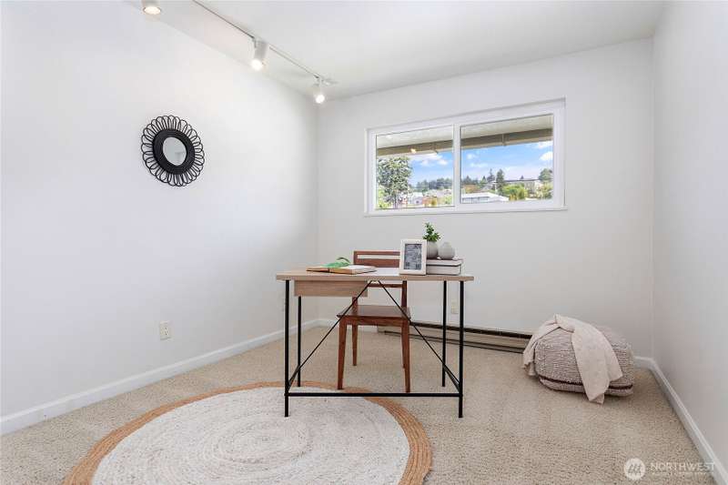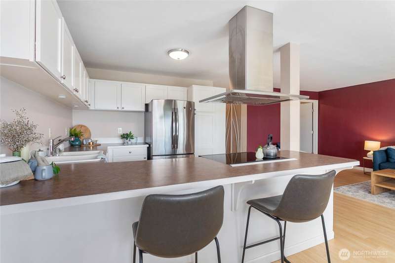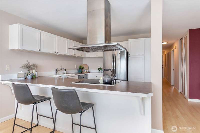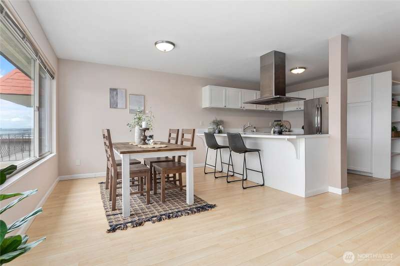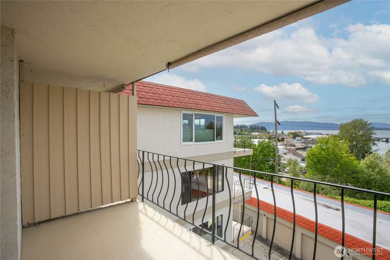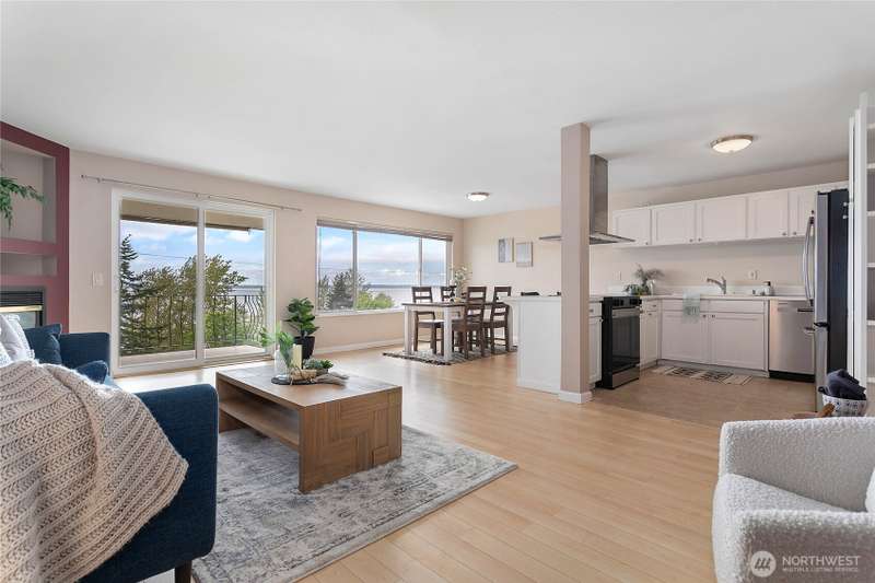 Experience the charm of Fairhaven living! Soak in stunning bay and island views from this airy 2-bedroom, 1-bath condo perched above the South Bay Trail. Just steps from shops, restaurants, and scenic marine parks, this open-concept, top-floor condo has it all. With a newly refinished deck and cozy gas fireplace, you'll enjoy relaxing in this bright space and viewing outstanding sunsets. Access via the elevator or stairs. Updates include a new bathtub/shower, new dishwasher, and new water heater. Assigned garage space as well as general covered carport parking. The bottom level has secure storage and a common space with men's and women's separate saunas and bathrooms.