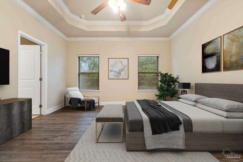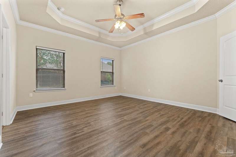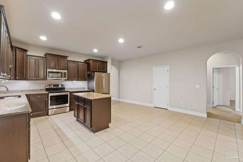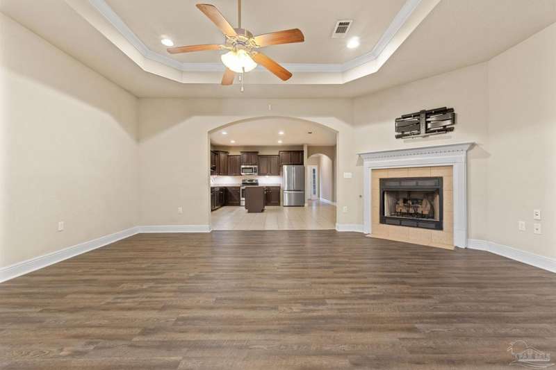 Welcome to a beautiful well-maintained home in the desirable Autumn Meadows Subdivision just outside the back gate of NAS. Built in 2013, this one story residence offers an open and inviting floor plan, perfect for entertaining or everyday living. This 3 bedroom, 2 full baths at approximately 1979 square foot is a spacious split bedroom floor plan with a separate office/den that could serve as a forth bedroom. Stunning kitchen and baths feature granite countertops, walk in pantry and plenty of cabinetry. Elegant touches throughout with 9- foot ceilings, crown molding, recessed lighting. Flooring includes tile in foyer, kitchen and baths, LVP Family room and primary bedroom, carpet in secondary bedrooms and office. Cozy family room with a fireplace that opens to a covered porch-perfect for indoor and outdoor flow. Assumable VA loan, ACT FAST!! WONT LAST!!!!