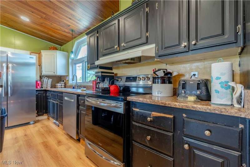 On five sprawling acres, this ranch-style manufactured home offers a unique blend of rustic charm and modern potential. Featuring three bedrooms and two bathrooms, this property is ideal for those looking to infuse their personal style into a comfortable living space. The home boasts updated operating systems from 2024, including a new HVAC system with central air, hot water heater, pressure tank, and enhanced attic insulation, ensuring efficiency and peace of mind. Outside, the expansive 40x100 barn and two additional sheds provide ample storage or workshop space. A distinctive grain bin gazebo adds character to the landscape, perfect for outdoor relaxation or entertainment. The property also includes a new metal roof, and durable metal siding, combining aesthetic appeal with low maintenance. This home presents a fantastic opportunity to add your finishing touches and create the rural retreat you've always dreamed of. With a propane furnace and a wood burner for a secondary heat source, comfort is guaranteed year-round. The kitchen comes complete with all appliances, high ceilings, and a luxurious wood-finished ceiling, enhancing the interior's appeal. Mineral rights are negotiable, adding potential value to this exceptional property.