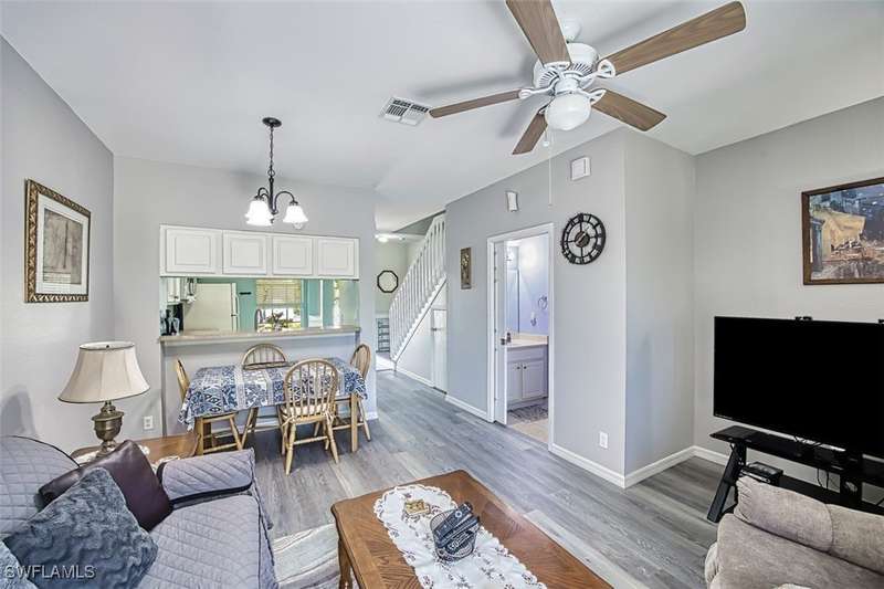 Welcome to this charming 2-bedroom, 2.5-bathroom townhome in the desirable gated community of Cypress Landing. This well-maintained home features brand-new laminate flooring and fresh paint, offering a modern and inviting atmosphere. Enjoy serene lake views from your home, providing a peaceful retreat. This home is in pristine condition, having been lived in by "snowbird" owners for only three months per year and never rented. Cypress Landing boasts low HOA fees, including internet, Wi-Fi, cable, lawn/land maintenance, pest control, and access to premium amenities-a community pool, hot tub, fitness center, playground, and pet-friendly. Conveniently located within walking distance to the new $435M Lee Health Hospital campus, this home is also just minutes from restaurants, shopping, I-75, bike paths, and the beach. Don't miss this opportunity-schedule your showing today!
