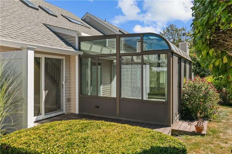 Don't miss this very special home in the heart of Portsmouth just a stone's throw to coveted "Water Street" and the Sakonnet River. This 2 level Townhouse style unit has a wonderful, extra large SouthEast Facing Sunroom overlooking ample green common space and Vast Aquidneck Land Trust Protected Farmland & the Polo Ponies training area beyond! Features include all new kitchen with granite, newer Powder Room and flooring on 1st floor, newer Treks decking, 1 car garage with storage and workshop and 1st floor laundry! Brand new roofs and siding throughout this cozy 14 unit complex! Primary & 2nd bedrooms and Jack & Jill type bath on 2nd floor. All 2nd floor windows are new. Walk to Clement's Marketplace or any number of access points to the Sakonnet River, or stroll through eclectic Island Park, home of Flo's Clam Shack and other hip restaurants & coffee shops! This unit is a great value at under $288 per square foot!