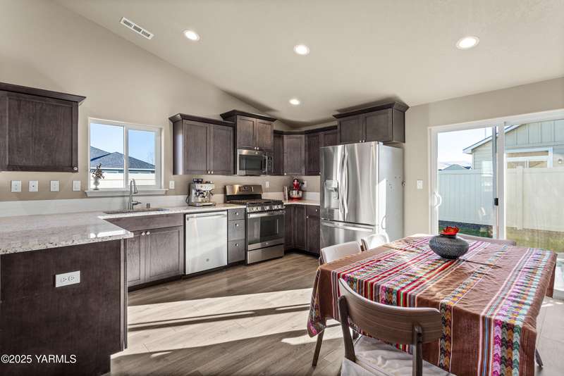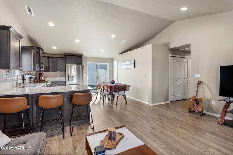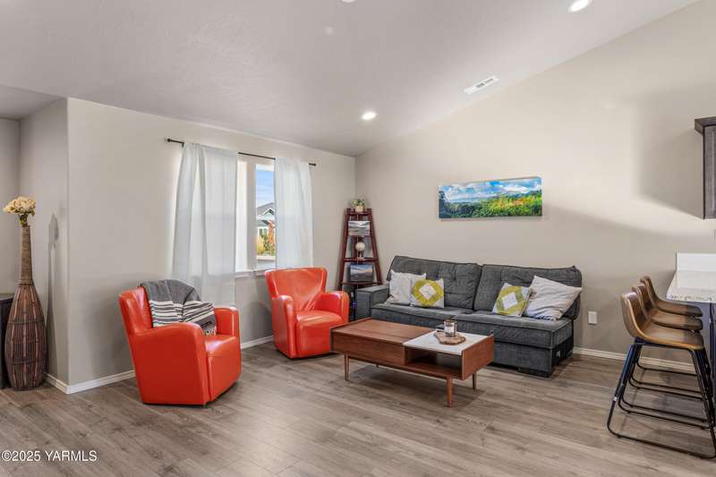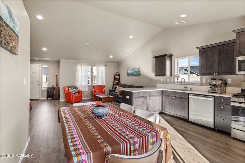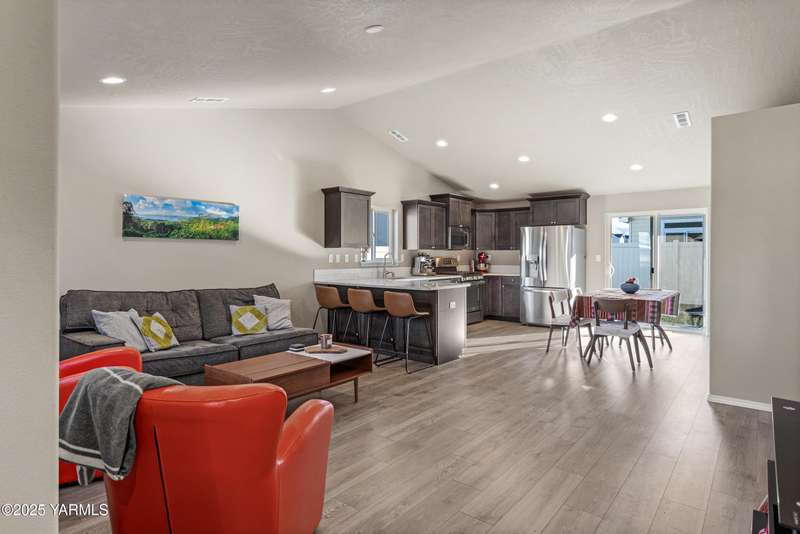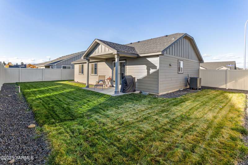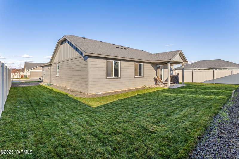 Welcome home to this 2023, better-than-new West Valley gem! Thoughtfully designed, this 3-bedroom, 2-bath home feels remarkably spacious with 1,152 sq ft of well-used living space. Step inside to a welcoming foyer that opens into the light-filled great room, featuring vaulted ceilings and upgraded vinyl plank flooring. The open-concept layout seamlessly connects the living, kitchen, and dining areas--perfect for everyday living and entertaining. Enjoy meals in the eat-in kitchen or at the expanded peninsula with eating bar. The kitchen is complete with a gas range, LG stainless steel refrigerator, upgraded cabinetry and granite countertops, and a pantry for extra storage. A sliding door leads to the covered back patio and fully fenced backyard, ideal for outdoor dining or weekend BBQs.Down the hallway, you'll find a convenient laundry area with an LG washer and dryer included. The private primary suite comfortably fits a king-size bed and includes a full ensuite bath. Two additional bedrooms and a second full bath complete the layout.Built in 2023 with numerous upgrades, this home offers: Extended 4' garage addition for truck parking Side garage door Covered back patio Ceiling fan wiring in the living room Upgraded vinyl plank flooring, kitchen cabinets, countertops, and eating bar/ kitchen peninsulaTruly move-in ready, this lovely home can be yours just in time for the holidays!