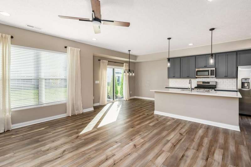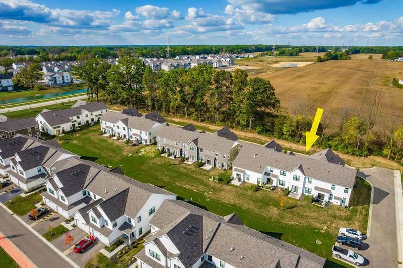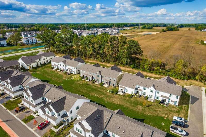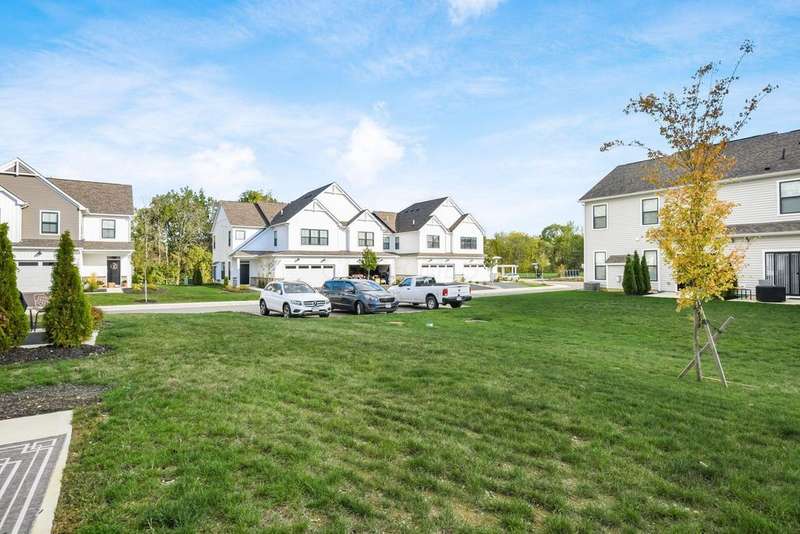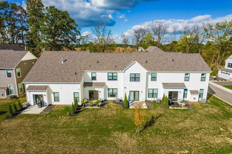 Welcome to this nearly new 3-bedroom, 2.5-bathroom M/I Homes townhouse condominium in Westerville's desirable Townes at Hamilton neighborhood. Offering 1,800 sq ft of stylish and spacious living space, this truly spotless modern farmhouse-style two-story home features a bright and spacious open 'Braeden' floorplan that seamlessly connects the living, dining, and kitchen areas. The kitchen is equipped with gorgeous quartz countertops, a large central island, stainless steel appliances, a breakfast bar, eat-in space, beautiful soft-close cabinetry, and recessed lighting, ideal for both everyday living and entertaining. Upstairs, the owner's suite boasts a private en-suite bathroom, while the two additional well-appointed bedrooms and bathroom offer flexibility for guests or office use. Enjoy the convenience of nearly new high efficiency Samsung washer and dryer located upstairs, tankless hot water heater, and any/all remaining warranties which began in 2024. A concrete patio off the kitchen/dining area is perfect for cookouts, and a two-car attached garage adds extra comfort and storage. This unit is located in a quiet, low-traffic location in the rear of the complex. Enjoy neighborhood amenities, including walking paths, green spaces, and tranquil ponds, perfect for relaxation and outdoor activities. Conveniently located near major freeways, New Albany, Intel, golf courses, and Easton with endless dining and shopping options. Additional Metro Parks such as Inniswood, Blendon Woods, and Rocky Fork are all located nearby. Schedule a showing today to come see this spectacular condo that's just about as new as you will find! Priced under replication!