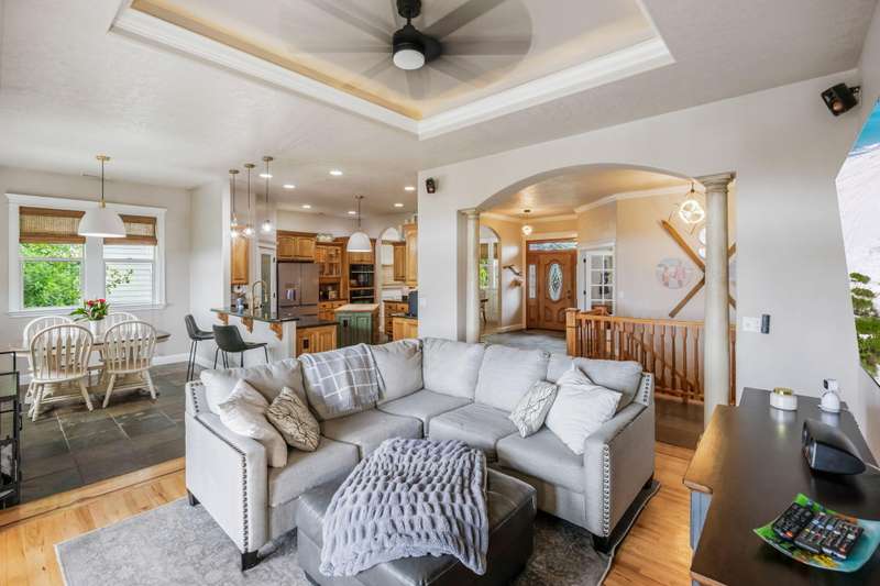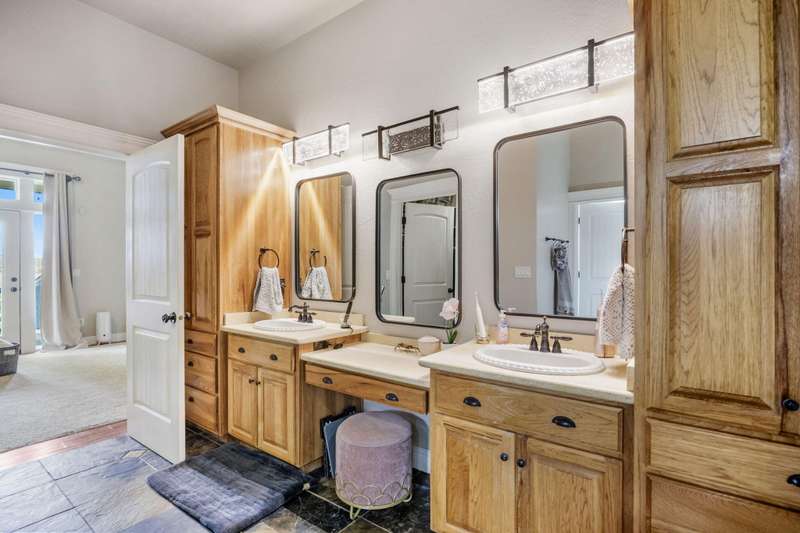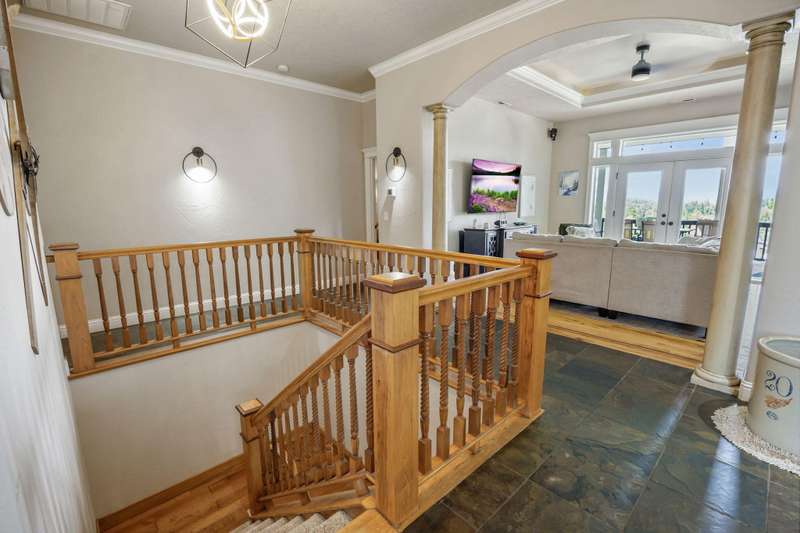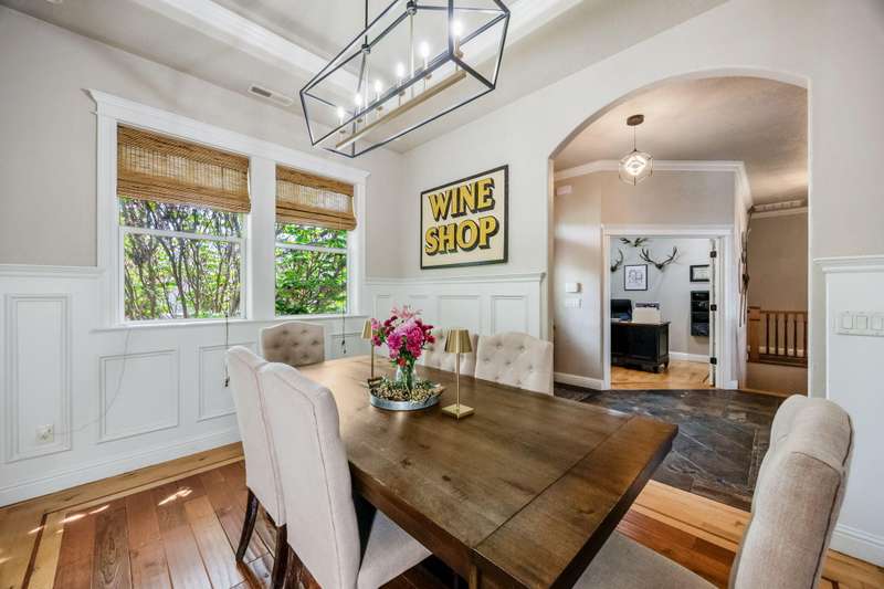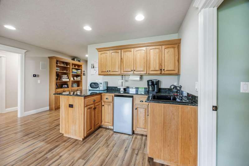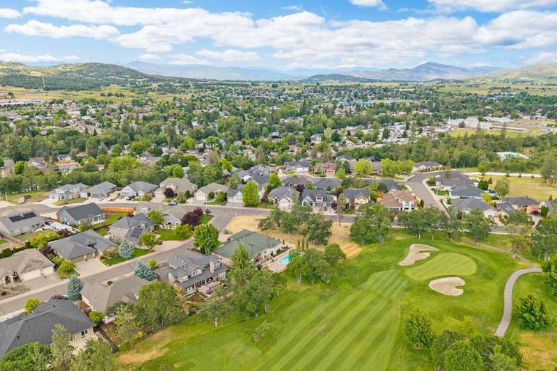 This is a beautiful home located in the highly desirable Eagle Point Golf Course Community, right across the street from the 17th green. The open floorplan features vaulted ceilings, a gourmet kitchen with granite counters, and a living room leading to a spacious deck with stunning views. The main floor's primary suite is spacious and opens onto the deck. It has an extra-large beautifully appointed bath with jetted tub, double vanity, step in shower, and large walk-in closet. The main floor has a full bathroom for guests, an office, and a format dining room with trayed ceiling and wainscoting. The daylight basement features four bedrooms, one bedroom with its own large bathroom, another full bathroom with tub/shower combo, and a bonus room with wet bar and counter seating. This bonus room leads to the spacious backyard and covered patio. A must tour home!