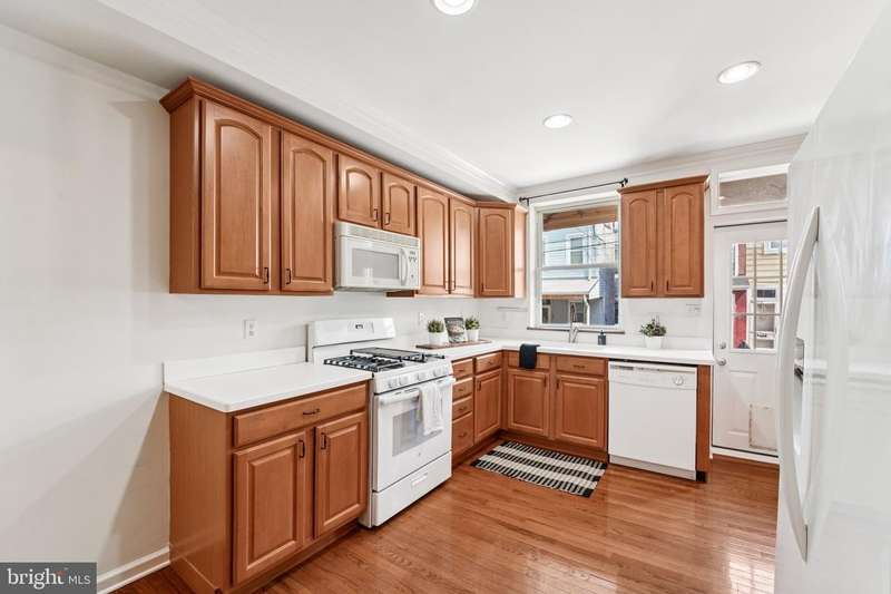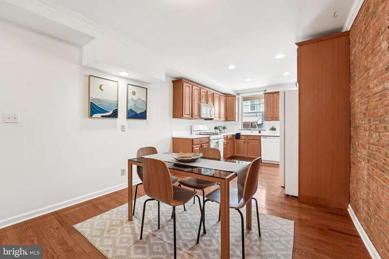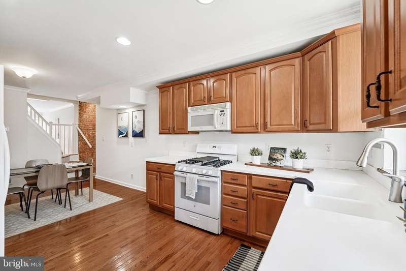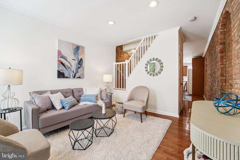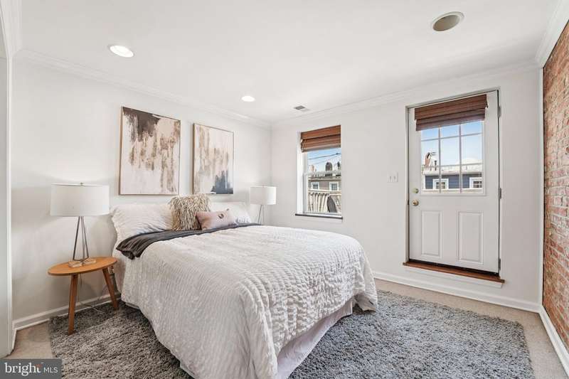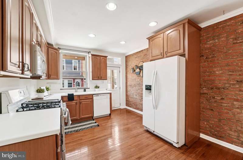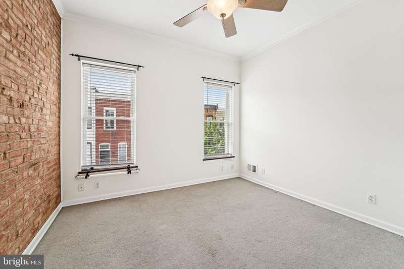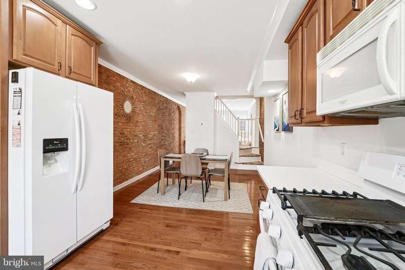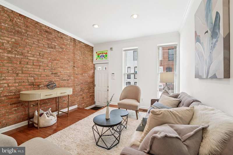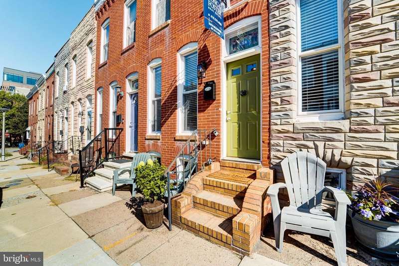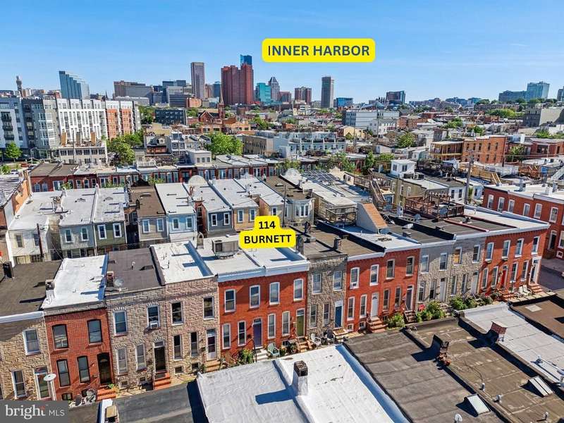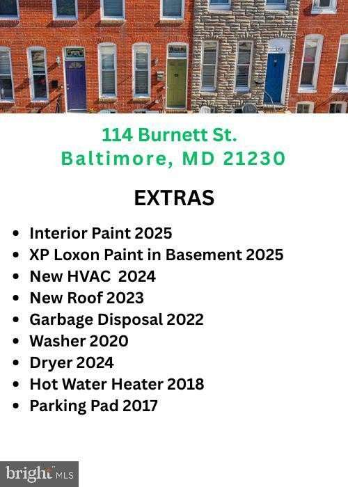 Don't miss this perfect blend of historic charm and modern convenience at 114 Burnett Street. Nestled on a quiet one way street located in Baltimore's iconic Federal Hill. This 2-bedroom, 2-bath rowhome offers nearly 1,000 square feet of well-designed living space with a functional layout that maximizes comfort and flow. Rich in character, the home features original exposed brick walls that add warmth and a touch of historic charm throughout the space, complementing the hardwood floors, and crown molding. The kitchen features beautiful cherry cabinets and white corian countertops. The kitchen opens directly to a private paved patio -ideal for outdoor dining, container gardening, or simply relaxing in a quiet, urban setting. The patio can also serve as a private parking pad (2017), a rare and valuable feature in the neighborhood. Upstairs, you'll find two generously sized bedrooms and two full bathrooms. The primary suite includes an ensuite bath and access to a private balcony-perfect for morning coffee or evening brew. Both bathrooms reflect a modern style and have been well maintained. With a new HVAC system (2024), plus ceiling fan, the home offers year-round comfort. A new roof (2023) offers added peace of mind and long-term value. The unfinished basement has washer, dryer and utility sink. This area has been freshly painted and has potential for expanded living space such as office, workout or storage area. You're just steps from the restaurants, shops, and nightlife of Federal Hill, with easy access to M&T Bank Stadium (.6mi), Camden Yards (.9mi), Horseshoe Casino(.8mi), and Cross Street Market (.3mi) . Major commuter routes like Ostend and Hanover Streets are just around the corner with direct access to 95 and 395, making this an ideal home for both convenience and city living. Schedule your showing today and call this home yours before Pre Season kicks off!