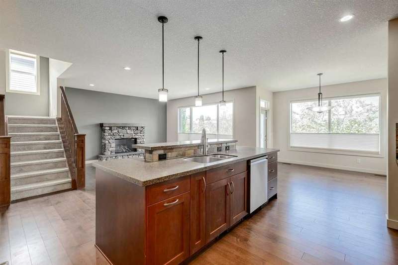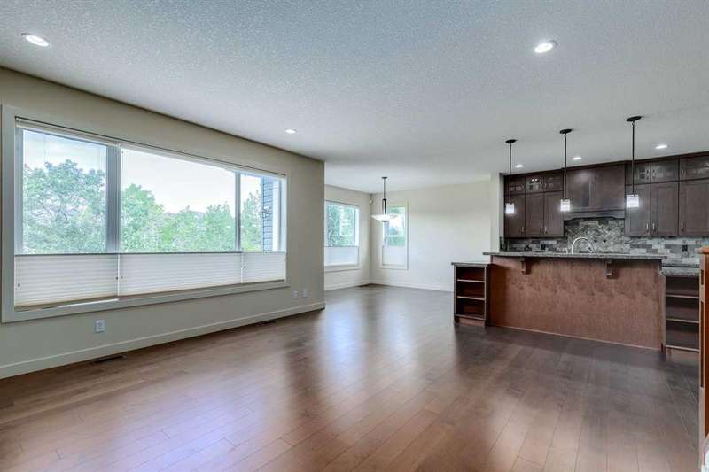 This stunning two-storey home offers 2,600 square feet of living space above grade and is perfectly positioned on a peaceful cul-de-sac. It boasts a fully finished walkout basement that backs onto a beautiful south-facing ravine, ensuring privacy and breathtaking views. Originally designed as a show home, this property is loaded with high-end upgrades, including 9-foot ceilings on the main level, sleek granite countertops, and a gourmet kitchen equipped with a central island, breakfast bar, gas range, and a spacious corner pantry. Upon entering, you'll be greeted by a front-facing den. The open-concept main floor showcases stunning views of the ravine, filling the space with natural light and creating a warm, inviting atmosphere. The home offers over 3,600 square feet of total living space, featuring 4 bedrooms, 3 full bathrooms, and a convenient half bath. Upstairs, you'll find three generously-sized bedrooms, a spacious bonus room, and a beautifully appointed laundry room with built-in cabinetry & a lenghty counter. The Primary Bedroom offers ample space for a King-sized bed and overlooks the serene backyard and ravine. The luxurious ensuite is complete with a deep soaker tub, an oversized shower, dual sinks, and a walk-in closet with custom cabinetry and plenty of storage. The walkout basement is perfect for privacy and separation, offering a large living area, recreation room, an additional bedroom, a full bathroom, and direct access to the backyard. Relax in the evenings on the expansive deck, taking in the peaceful surroundings as the sun sets over the ravine. This home also features two high-efficiency furnaces, in-floor heating in the basement with an on-demand heating system, and an oversized garage with an 8-foot high door. See supplements for a floor plan and don't forget to view the Virtual Tour.