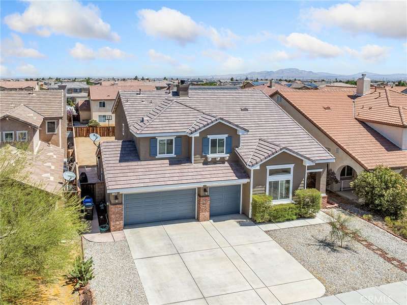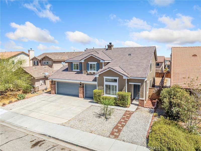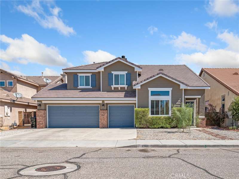 If you're searching for space, style, and standout upgrades, your search ends here. Welcome to 11786 Alana Way in Victorville. This immaculate 5-bedroom, 3-bathroom home offers 2,686 square feet of beautifully updated living space on a generous 7,244 sq ft lot--and it's full of pride of ownership from the inside out. Step into curb appeal perfection with a newer exterior paint job, low-maintenance rock landscaping, and a striking 3-car garage plus large driveway for extra parking. Double front doors take you inside, soaring ceilings, elegant tile flooring, and custom white shutters set the tone, paired with new energy-efficient double-pane windows by Anlin with a lifetime warranty throughout. You'll love the formal living and dining rooms, filled with natural light, and the expansive open-concept kitchen and family room, complete with a stone-wrapped fireplace and built-in surround sound system--included with the home. Downstairs features a private bedroom with walk-in closet and updated laminate flooring, perfect for guests or a home office, plus a bathroom with shower and a convenient indoor laundry room with shelving. Upstairs, find four more spacious bedrooms, including the serene primary suite with double door entry, vaulted ceilings, a large walk-in closet, and a spa-like bathroom featuring double sinks, a soaking tub, and separate shower. Upstairs guest bathroom has double sinks and tub/shower combo. All bathrooms have been tastefully modernized with updated fixtures and toilets. Step out back to enjoy a fully fenced backyard with a full-length patio, extended concrete on both sides, and a storage shed that stays. Ideal for commuters with quick access to Highway 395 and I-15 Freeway, this home is move-in ready and checks every box--whether you're upsizing, relocating, or looking for your forever home.