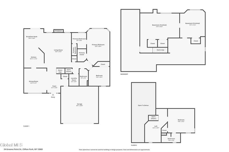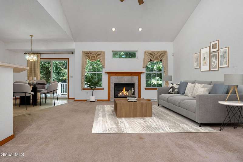 Welcome to this spacious, low maintenance Grooms Pointe townhome! As you enter the foyer, you are greeted with high ceilings and lots of natural light. Formal dining room. Kitchen features adjacent breakfast nook. Gas fireplace in the living room to enjoy on chilly nights. Two full baths and two bedrooms on first floor. First floor laundry room. Upstairs features a cozy loft area, bedroom and 3rd full bath. Basement has finished game room and office area, which also includes abundant closet space. 2 car garage. Back deck off the breakfast nook is upgraded composite decking. Convenient Clifton Park location, central to shopping, I-87, Saratoga and Albany points of interest. Make it yours today!