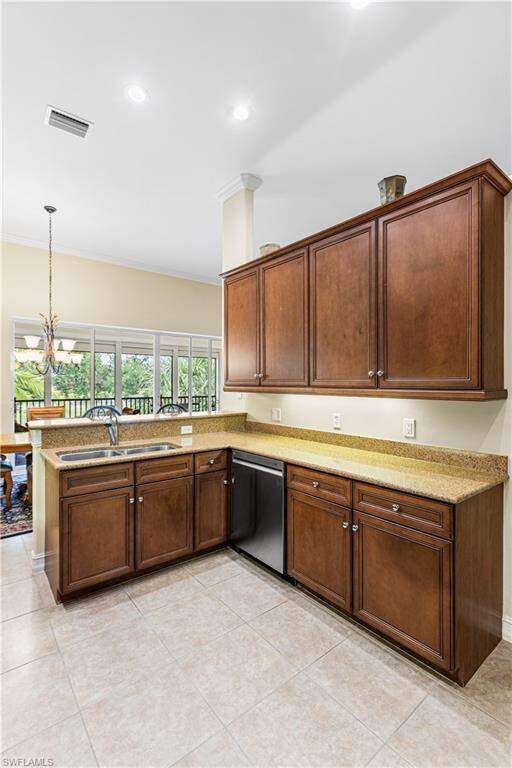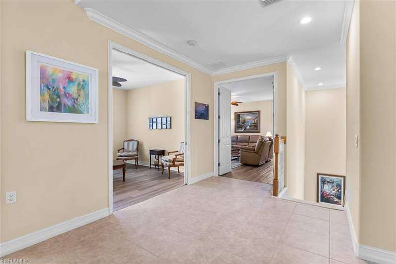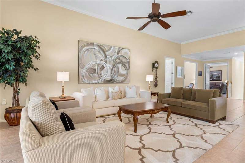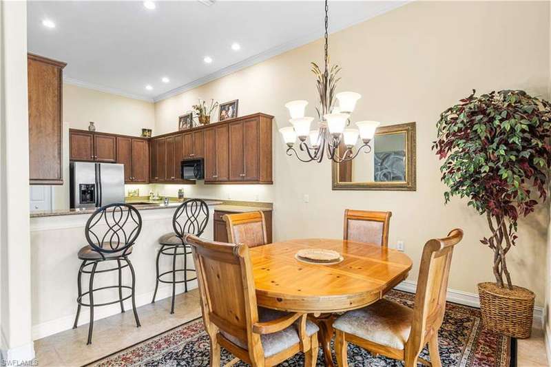 Welcome to one of the most desirable floor plans in the Triana neighborhood of The Renaissance Community a rarely available second-floor carriage home offering panoramic lake and golf course views, perfectly framed by vibrant morning sunrises. This elegant residence features three bedrooms, three full bathrooms, and a spacious den, all designed for effortless living and entertaining. The open-concept layout is complemented by volume ceilings and abundant natural light throughout. The kitchen is both stylish and functional, boasting granite countertops, 42-inch wood cabinetry, and ample workspace for cooking and gathering. The primary suite is a serene retreat, while the second bedroom is generously sized, features its own en-suite bath, and is perfectly suited for use as a media room, family room, or private guest suite. A third bedroom and dedicated den provide added flexibility for guests or remote work. Finishes include tile flooring in the main living areas and newly installed laminate in the bedrooms and den, adding warmth and a modern touch throughout. Set within the exclusive, low-density Renaissance community, residents enjoy a luxury lifestyle surrounded by beautifully manicured grounds and top-tier amenities, including: The Arthur Hills Championship Golf Course Resort-style pool and pavilion Full-service spa and state-of-the-art fitness center Children's play area Six red clay tennis courts, two pickleball courts, and two bocce courts The Renaissance community is home to just 386 residences, including 130 carriage homes in Triana and 256 grand estate and villa-style homes across six exclusive neighborhoods: Terabella, Vittoria, Via Lago, Monteverdi, Villagio, and Triana. Located in the heart of the Daniels corridor, this exceptional residence offers luxury, privacy, and convenience-all within one of Southwest Florida's most prestigious golf and lifestyle communities. Schedule your private showing today and experience the timeless elegance of Renaissance living.