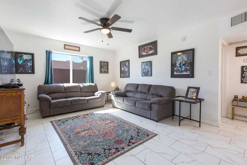 Charming Central Tucson Bungalow with Modern Updates and New Metal Roof! Discover this beautifully updated central Tucson bungalow offering timeless charm with modern comfort. Enjoy a welcoming front porch, new flooring throughout, dual pane windows. Three spacious bedrooms and one opening up to an AZ room that's ready for compliments of your own unique style. Indoor laundry room. Fully fenced front and back yard provides generous space for off street parking and outdoor living. Located minutes from the University area.