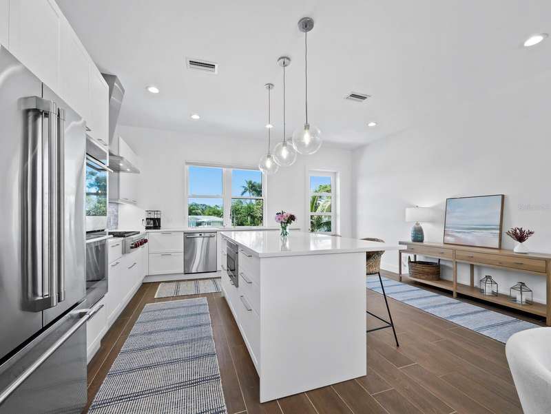 All new in 2024, this dream retreat is uniquely positioned in the highly sought after “Village” of Longboat Key, a neighborhood known for its quaint charm and vibrant community atmosphere. Featuring 4 bedrooms and 4 and a half baths in open and light filled rooms, a backyard oasis with a pool and outdoor kitchen, high impact windows and doors throughout, 1230 sq ft of porches and balconies and an amazing rooftop top deck with spectacular water views: this is truly the epitome of luxury island living! The stunning chefs kitchen features high end appliances, including a 6 burner gas range, double ovens and a large center island. A perfect open flow into the inviting dining and living area, allows for exceptional entertaining with picturesque views out to the backyard oasis, seamlessly connecting indoor and outdoor spaces. This rare offering of NEW construction in this wonderful neighborhood is hard to come by. It affords its owner peace of mind, whether this is your forever home, your part time vacation retreat or a fabulous investment rental property. The community features multiple restaurants, a couple of Bayfront docks and even a community boat ramp. The gorgeous Gulf of Mexico is within a short walk, bike or golf cart ride away and is one of the nicest beaches on the island. It stretches for miles and is the perfect spot to spend the day before returning to watch the sunset from your rooftop deck. Come savoir the laid back island lifestyle that Longboat Key is known for and make this tranquil coastal retreat your own.