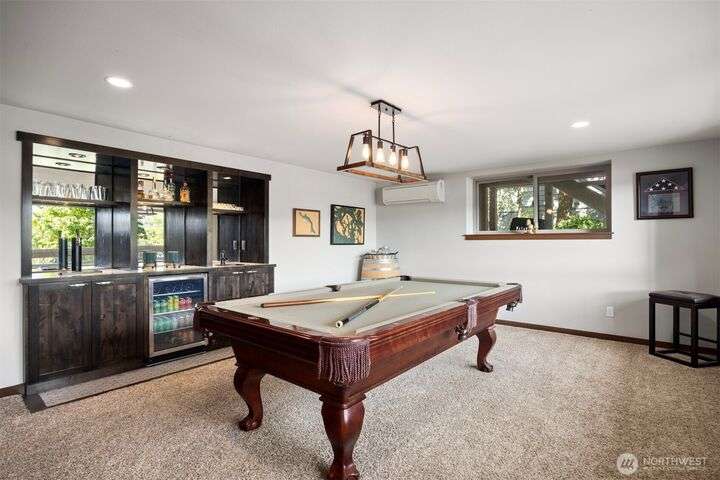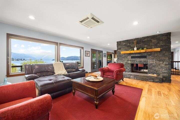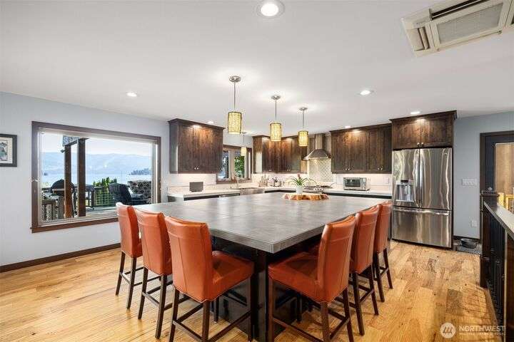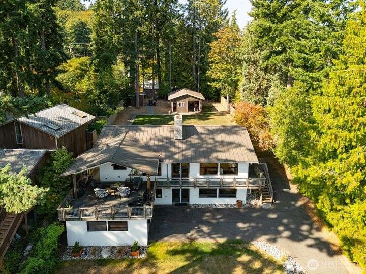 Lake living at it's finest - tucked on a quiet stretch of the street! Beautifully updated mid-century Lake Whatcom waterfront home with 60' of sunny beachfront and your own new dock. Completely remodeled in 2015 this home blends timeless style with modern upgrades. 3 spacious bedrooms, 2.5 baths, fantastic chef's kitchen with custom Eric Waltz Cabinetry, large island with seating for 6 & formal dining. The expansive heated covered deck offers year-round entertaining. New metal roof, exquisite finishes throughout, heated tile floors, media room, pool room complete with wet bar & kegerator. Relax in the custom sauna w/ cold plunge. Disappear in the coveted large shop w/220amp-perfect for hobbies & lake toys. Live your best life in Bellingham!