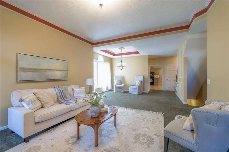Back on Market! No fault of Sellers. Spacious 1.5 story villa, one of the largest in the community in coveted Stoneybrook! NO STEPS FROM GARAGE TO BACK PATIO. Expansive living room /dining room combo with vaulted ceilings and fireplace. Amazing kitchen has been expanded with an additional wall of cabinetry from the normal plan! Plan has been enlarged to include a laundry/mud room with abundant storage. Sunroom overlooks brick courtyard with access to second bedroom on main level. Primary suite has ample space for sleeping and a sitting area. Ensuite bathroom includes double vanities, tub with separate shower and stool area. Second level features a large guest suite and bath. The lower level provides additional living space for entertaining or media area. HUGE unfinished area for storage and or future finish. Enjoy low maintenance living in a desirable community close to shopping, dining and more.