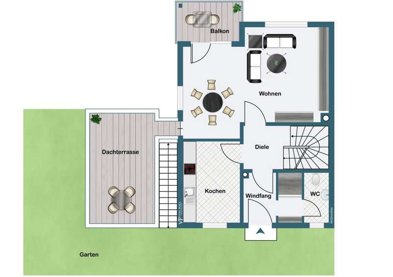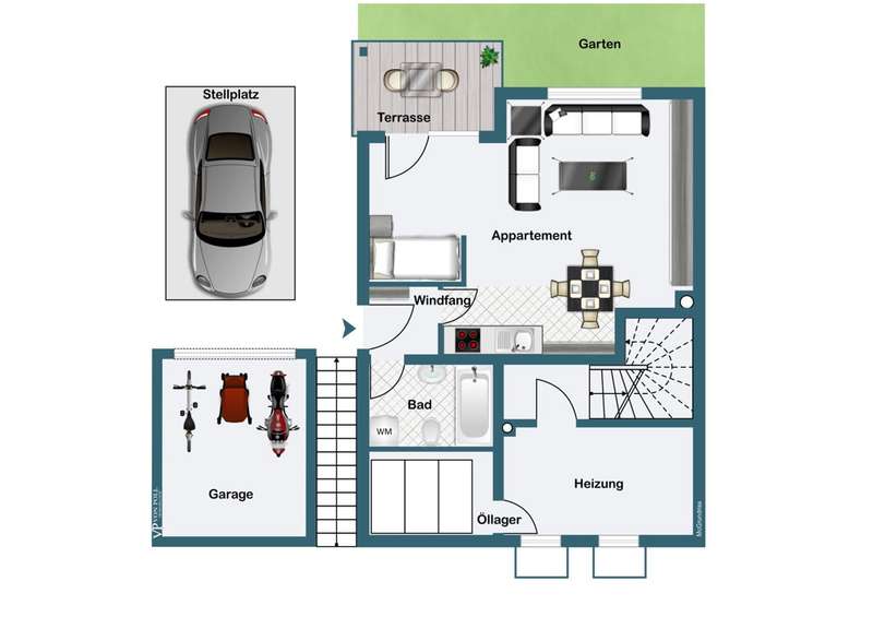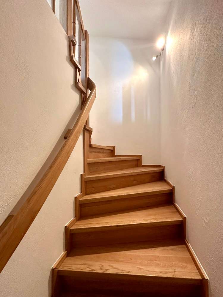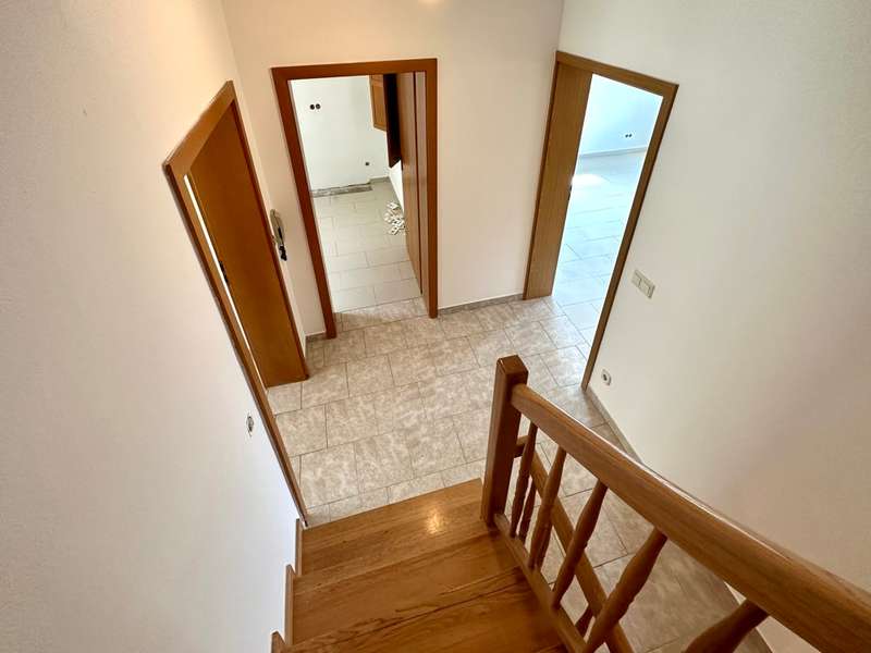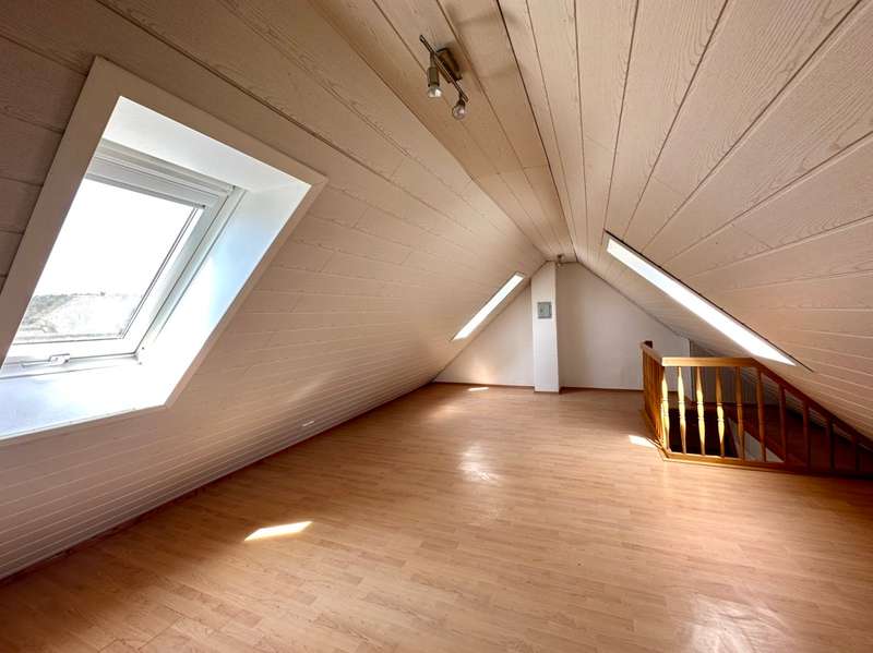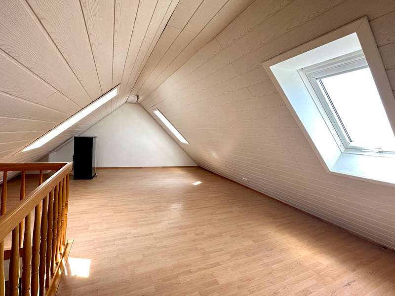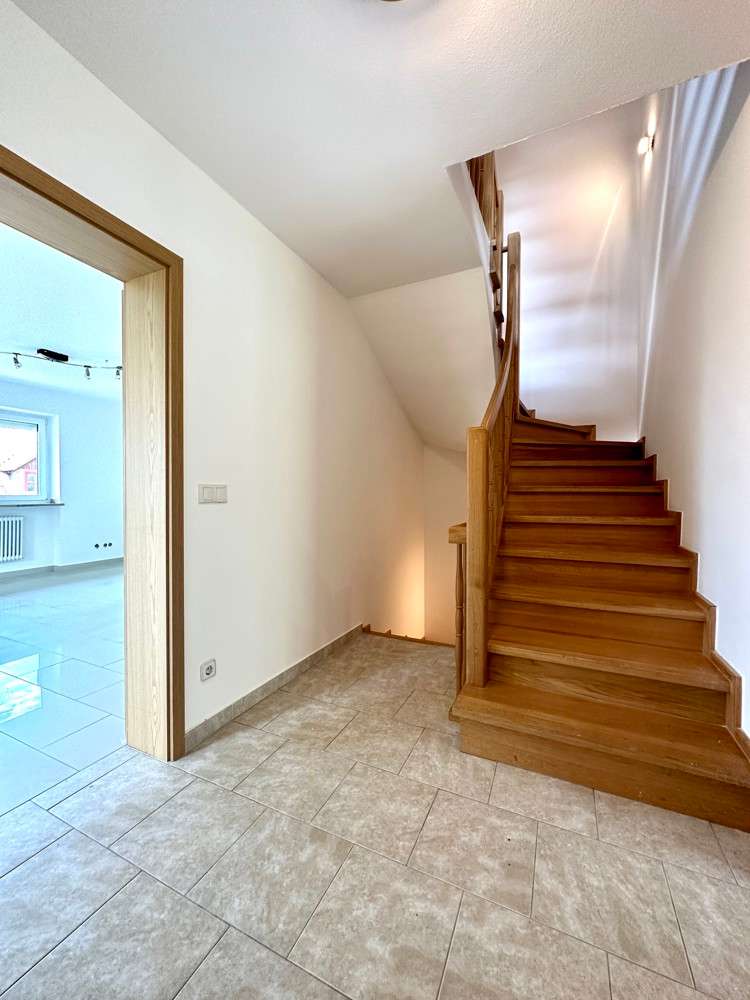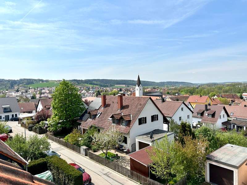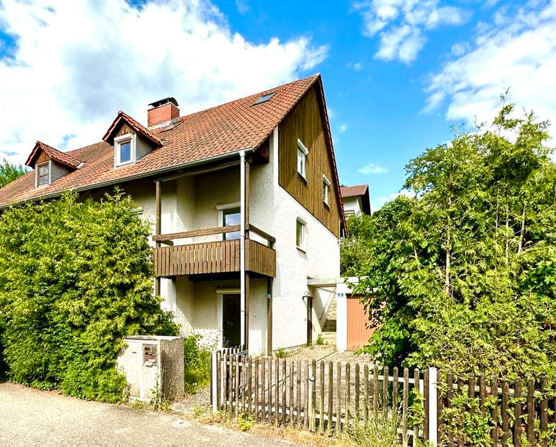 Welcome to this fantastic semi-detached house in Wenzenbach near Regensburg! This well-maintained and modernized property is situated on a beautiful plot of approx. 275 sqm with a lovingly landscaped garden. Here you can spend relaxing hours in the countryside and leave everyday life behind you. The well-kept detached house with its pretty front garden and spacious entrance area with a garage can be reached via a road that is only used by residents. The total living space of 150 sqm is spread over 7.5 rooms, offering plenty of space for your family. After passing through the bright entrance hall with the neat guest WC and the large side checkroom, you enter the hallway leading to the elegant real wood staircase and then directly into the heart of the house: the bright living room and open-plan dining area. This not only offers enough space for a large living area, but is, like most of the rooms, fitted with a high-quality tiled floor, which blends perfectly into the harmonious overall picture. Generosity is always a central feature of this beautiful property. Numerous window fronts and direct access to the balcony emphasize the special atmosphere. This spacious west-facing balcony offers a wonderful view over Wenzenbach and its beautiful landscape. The brightly tiled kitchen with practical serving hatch also impresses with its generous layout, giving you enough space to realize your individual ideas for your own fitted kitchen. This offers enough space for cooking evenings - a dream for every hobby chef! The beautiful, elegant wooden staircase with wooden handrail takes you to the second floor. Two spacious children's rooms, a master bedroom and a large bathroom with bathtub, two washbasins and plenty of natural light await you there. The top floor was subsequently converted and can be used as an attic studio for a study, playroom or home office. Here, large skylights provide a pleasant flood of light and a beautiful view. In the basement there is a fully-fledged granny apartment with its own entrance, a beautiful terrace with a garden area, a bathroom with shower and a large living room with an open kitchen. The bedroom offers enough space for a large bed and has direct access to the terrace. This apartment is perfect for guests or as a retreat for a family member. There is a parking space for your car in the large driveway area and a private garage. The garden shed offers additional storage space for garden utensils. The beautiful detached house has an attractive large-format tiled floor and high-quality laminate vinyl flooring in the living area. The large and well-kept garden area can be planted with flower beds or equipped with an event terrace or a cozy garden lounge to suit your taste. Live out your green thumb or spend relaxing barbecue evenings with family or friends.