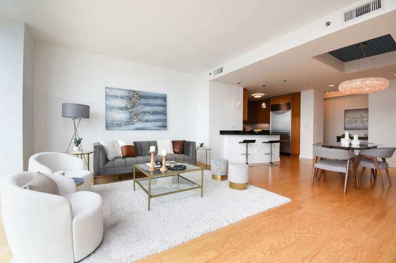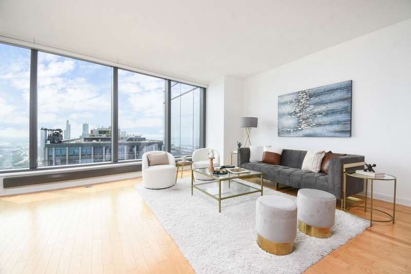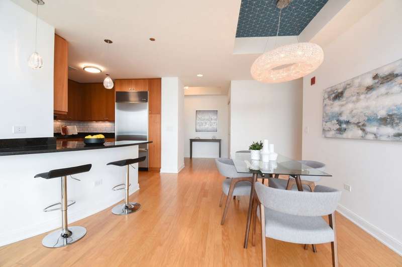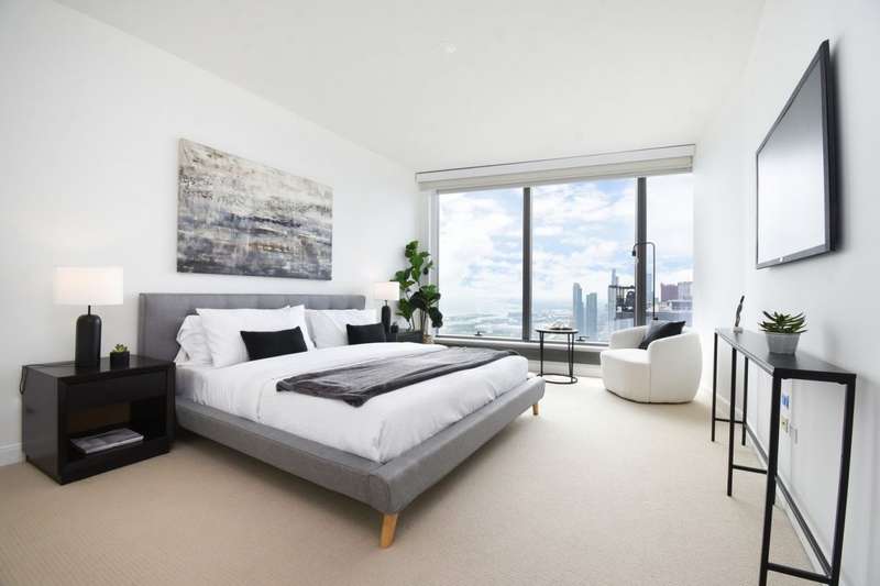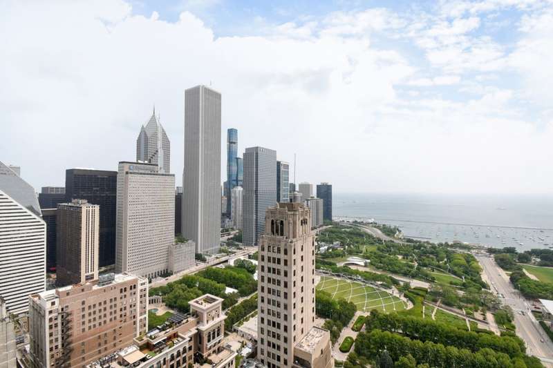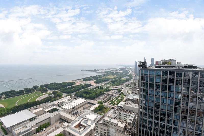 Be prepared to be wowed by this spacious, sun-drenched, luxurious 54th-floor condo with amazing lake views, in The Legacy at Millennium Park - a luxury condo building in the heart of everything Chicago offers. Enter the gorgeous lobby that's staffed 24/7, and take the high-speed elevator up to the 54th floor. At the unit, be welcomed into the inviting foyer featuring a convenient coat closet. Step into the main, open concept living area and take in the jaw-dropping south-facing views of Buckingham Fountain, Grant Park, Museum Campus, and the beautiful blue expanse of Lake Michigan - stunning views from every room in this home, including from your private balcony! Host your friends for a game night in the generous living area or cozy up with someone special for a quiet evening in. The adjoining spacious dining room can easily host your largest gatherings and features a beautiful accent tray ceiling and a stunning light fixture. Prepping your meals and snacks will be a delight in the generous chef's kitchen that features miles of granite countertops, quality, soft-close cabinetry, all stainless appliances, including a Sub-Zero refrigerator and separate wine fridge, and a deep, extra-large sink with a touchless faucet. When you're ready to retire, head down the hallway past your second bed and bathroom to the dreamy primary en suite! The amazing views continue with a full wall of windows in this spacious, sun-drenched retreat. The bedroom is bright and spacious, but also has fantastic motorised blackout blinds for when you want to sleep in! The massive primary bath was reconfigured for luxury - it boasts double vanities, a newer, large shower with rainshower head and a modern Toto Washlet seat. The expanded walk-in primary closet is spacious and organized, with space for all your apparel. The second bedroom is also spacious and boasts the same amazing view, along with its large closet. The oversized hallway full bath is new sliding glass door on the tub/shower enclosure, and leads to a huge bonus closet that's fully organized as well. A stacked, full-sized LG washer and dryer are stylishly tucked away off the hallway behind a door that's a beautiful rendering of Chicago. A garage parking spot and a separate storage locker included as well. This condo truly has it all - everything you need for stylish, comfortable, and convenient modern-day living and entertaining: quality updates; a reconfigured primary en-suite; convenient motorized Hunter-Douglas blinds throughout; thoughtful touches; and fantastic finishes; and a desirable South-facing view to take your breath away! But wait, there's more! The building boasts a fabulous pool with lakefront views, steam rooms, a private gym, two unique party rooms featuring their own kitchens and terraces, one with a fireplace (friendly neighbors often use these as coworking spaces as well!), plus a bonus outdoor terrace with a lush garden to enjoy outdoor green spaces and even a dog run for your furry family memb