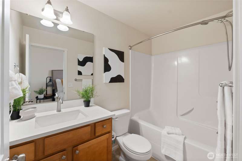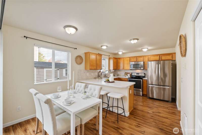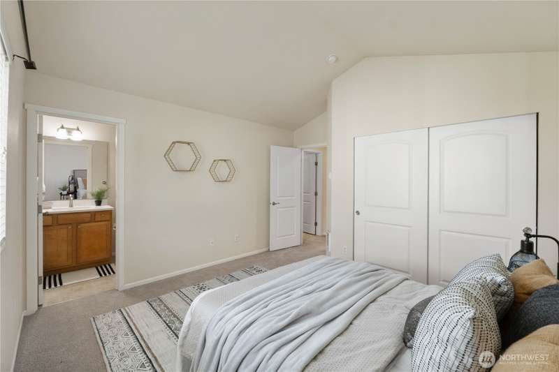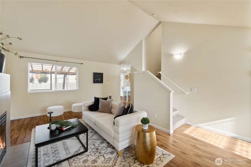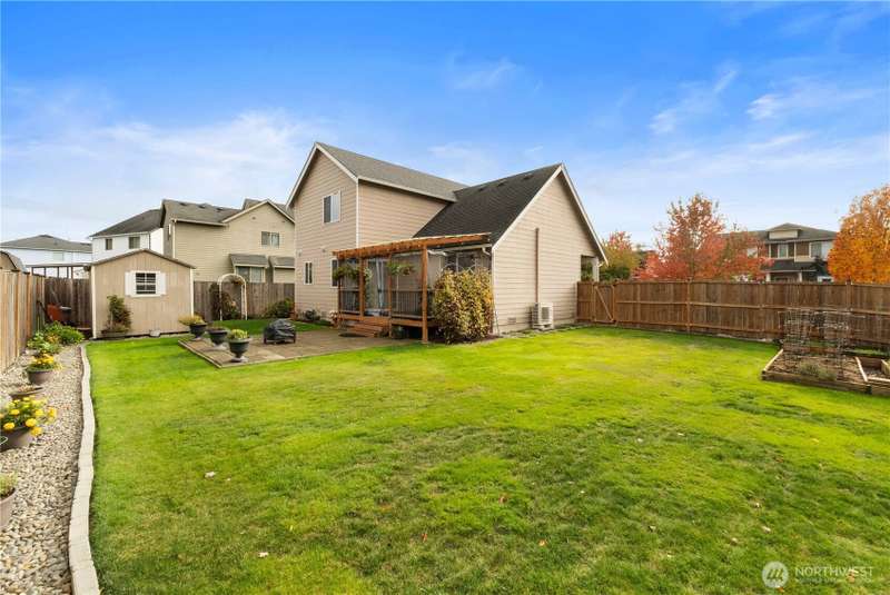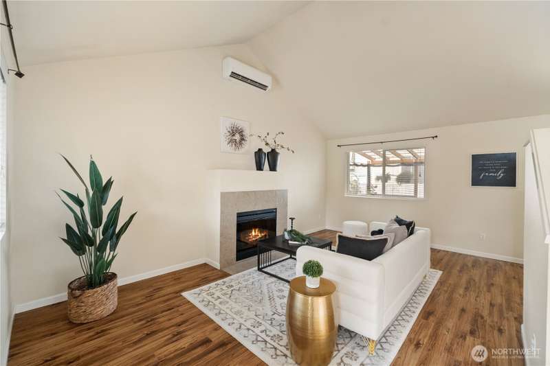 Welcome to this charming 3 bed, 2.5 bath home. Inside you'll enjoy a large perfect for relaxation living room with vaulted ceilings and cozy fireplace, beautiful open kitchen complemented by quartz countertops & stainless steel appliances, dining room with slider to a covered deck that is perfect for entertaining year round, primary bedroom with private ensuite, mini split system ensures comfort year-round. Outside meticulously maintained fully fenced yard with garden beds, fire pit area, shed, attached 2-car garage, ample parking and there is no HOA. Close proximity to freeways, stores complete this must-see gem!