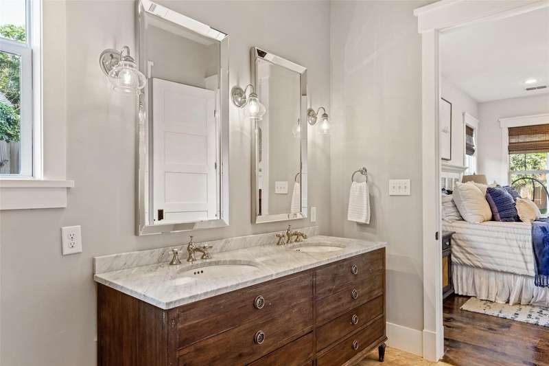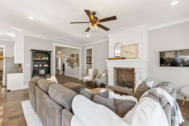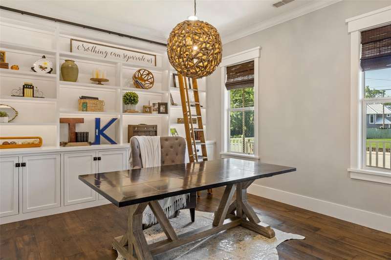 This beautifully designed custom two-story Craftsman-style home offers a tasteful blend of elegance, charm, and modern comfort. With an open-concept layout, the home features four spacious bedrooms (including two conveniently located downstairs) and three full baths. Let your children's imaginations come alive with whimsical hidden Narnia rooms tucked into the upstairs two bedrooms-perfect for magical play areas or convenient extra storage. From the moment you arrive, you'll appreciate the inviting covered front porch, while the screened-in back porch provides a relaxing spot to unwind and enjoy views of the private backyard. The oversized two-car garage offers plenty of room for vehicles and storage. Inside, the home boasts custom features throughout, including brick accents in the foyer, a 300-year-old reclaimed sink in the laundry room, built-in bookshelves with a functional library ladder, and exquisite craftsmanship in every detail. Built with top-tier energy efficiency in mind, all appliances and HVAC systems are Energy Star rated, and foam insulation keeps utility costs low while being environmentally friendly. Ideally located in the heart of DFW, this home offers a quick commute to any major destination in the Metroplex. This is more than just a houseit's a truly unique home you have to see to believe.