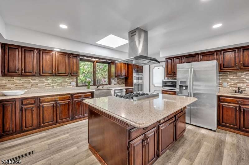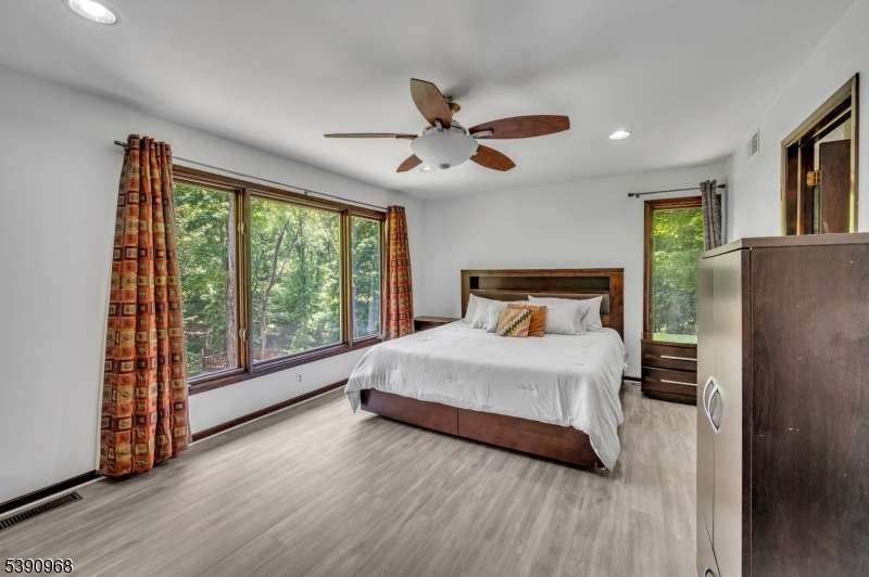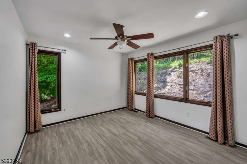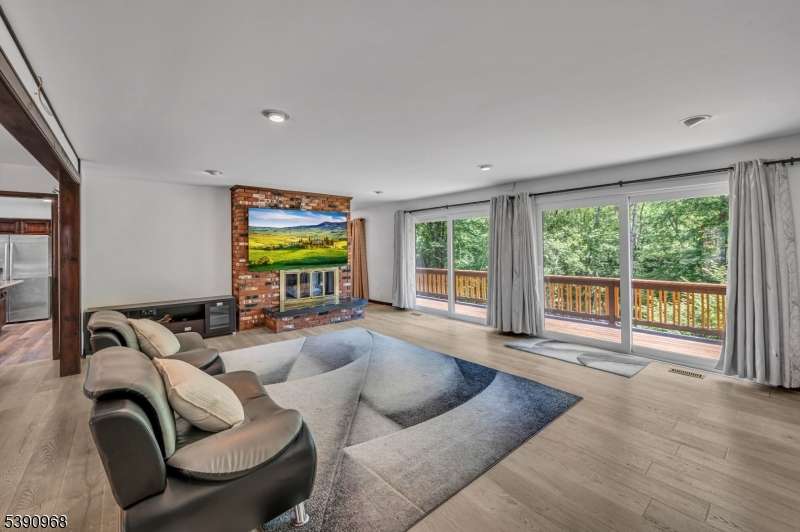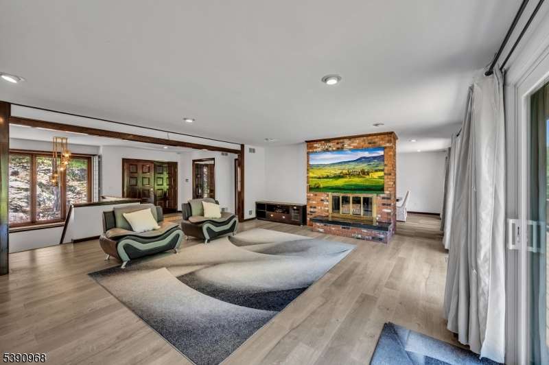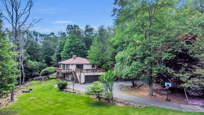 Nestled on 2.85 private, wooded acres, this spacious 5-bedroom, 3-bath custom raised ranch offers a tranquil outdoor setting and plenty of potential. The home needs some work but has great bones and is being sold strictly as is. Recent updates include a new HVAC system (installed 9/3/25), new roof, new flooring, and new sliders, plus coverage with a Cinch home warranty for added peace of mind.The bright kitchen features stainless steel appliances and a dishwasher (sold as is) and opens to a formal dining area and large living room with a wood-burning fireplace. Step onto the wraparound porch to enjoy peaceful views and the surrounding natural beauty.The main level includes a primary suite with an en-suite bath and walk-in closet, plus a second bedroom and a full bath with soaking tub and rain shower. The finished lower level adds even more living space with three additional bedrooms, an office, recreation room with fireplace, full bath, laundry area, and a two-car garage. Come and make it your own. Fireplace chimneys flues sold as is as well. Boonton address RockawayTWP. Schools and Taxes.