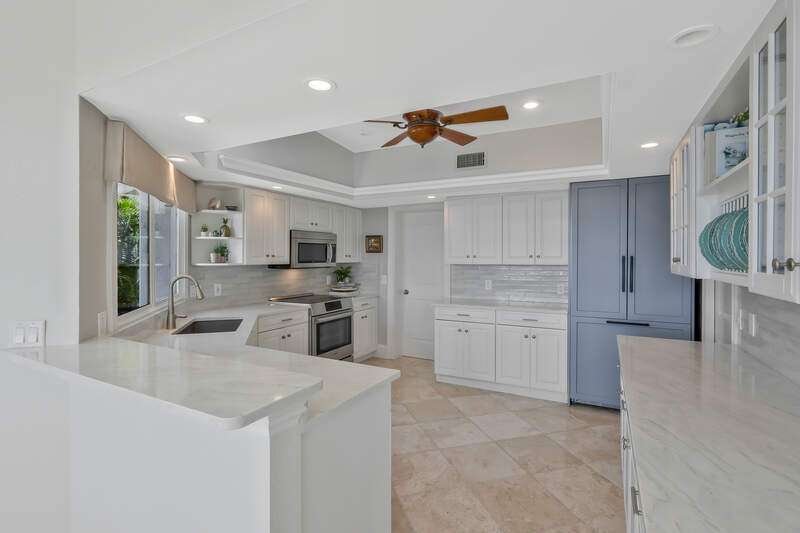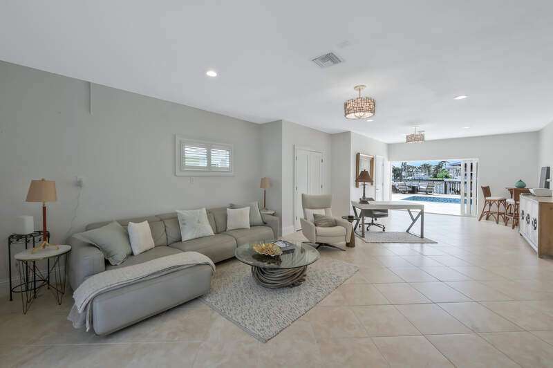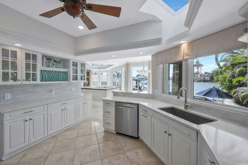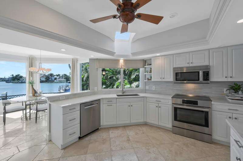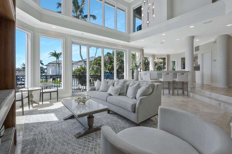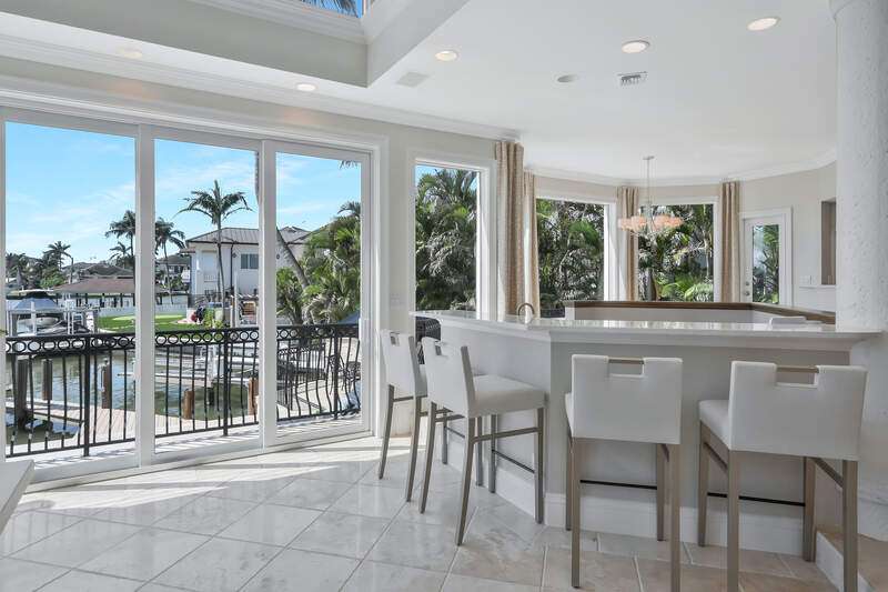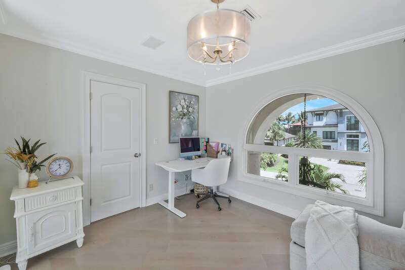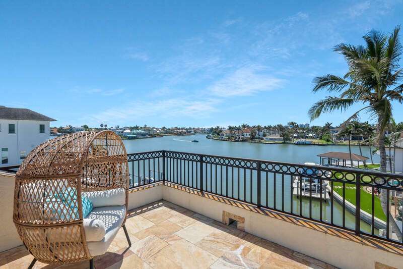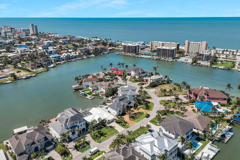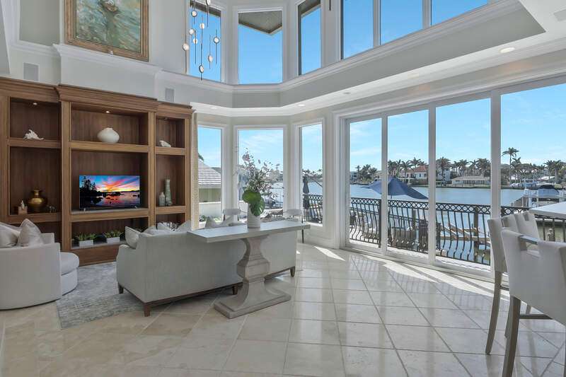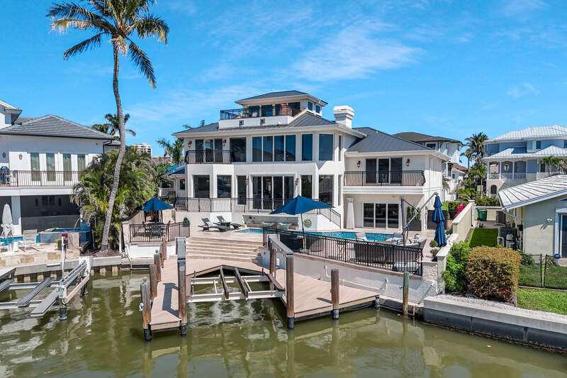 Sky-high waterfront fortress with 360 views, boat dock, pool, and southern exposure. Prepare to be captivated by this one-of-a-kind vertical masterpiece-a multi-story waterfront fortress in Naples that redefines luxury coastal living. With each level offering a unique experience, this architectural gem is designed for those who crave views, space, and unforgettable moments. From the moment you arrive, the circle driveway welcomes you with ease and elegance. Step inside to discover a custom-designed residence overflowing with natural light, dramatic floor-to-ceiling windows, and exquisite finishes throughout. Nearly every room showcases magnificent bay views, and the much-desired southern rear exposure ensures all-day sun and post-worthy sunsets from your pool deck. The ground level features a versatile family/recreation room with a full bathroom-ideal for guests, a gym, or game nights-that opens directly to the sun-soaked pool deck and private boat dock. Boating enthusiasts will love the direct Gulf access, updated pilings, and electric lift accommodating up to a 10,000 lb boat. The beautifully designed pool, surrounded by stunning travertine pavers, invites relaxation amid tranquil Gulf breezes. The second floor boasts the main living quarters with soaring ceilings, multiple dining areas, a custom wet bar with wine rack, and a show-stopping living room designed for effortless entertaining and everyday elegance. Stone pillars and travertine marble flooring elevate the ambiance, while expansive glass windows frame the surrounding water views. The third floor offers two spacious guest suites, each with private en-suite bathrooms and scenic water views for the ultimate in comfort and privacy. The fourth floor is home to the luxurious owner's retreat with skyline views, a skylight above the bed, a jetted tub, oversized walk-in shower with dual shower heads, and a generous walk-in closet. Also on this level is a private glass-enclosed home office, perfect for remote work or creative inspiration. The fifth floor, or "Crow's Nest," is a private 360-degree lookout accessed via a stunning spiral staircase. This entertainer's dream space includes a large balcony offering panoramic vistas of Naples, the bay, and glimpses of the Gulf, ideal as a sky bar or relaxation lounge. This custom home includes 3 bedrooms and 4.5 bathrooms, a gourmet kitchen with quartz countertops, custom cabinetry, and stainless steel appliances. The backyard is fully fenced for privacy, and the layout offers space and comfort for everyone. This is not just a home-it's a lifestyle. Schedule your private showing today.