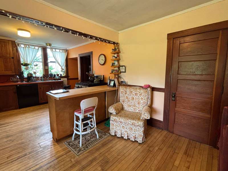 MIXED USE ZONING...OPPORTUNITY This charming family home offers an abundance of delightful features! You'll appreciate the inviting front and rear covered porches, perfect for relaxing, a one car garage and a lovely yard. Inside, the home boasts a much-needed mudroom, a spacious kitchen, and a dining room adorned with beautiful hardwood floors and vintage craftsman-style cabinets. A cozy reading nook overlooks the rear porch and yard, offering a serene escape. The main level also includes a large living room and a versatile office/den, a half bath providing ample space for all your needs. The second floor features two comfortable bedroom suites, a third bedroom, and a large full bath. Additionally, there are stairs to the attic, providing potential for future expansion and a partially finished basement. DOG NOT INCLUDED...:)