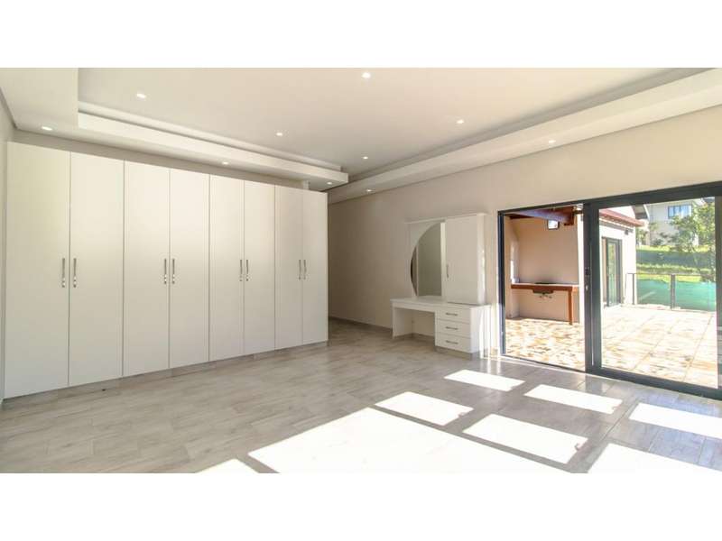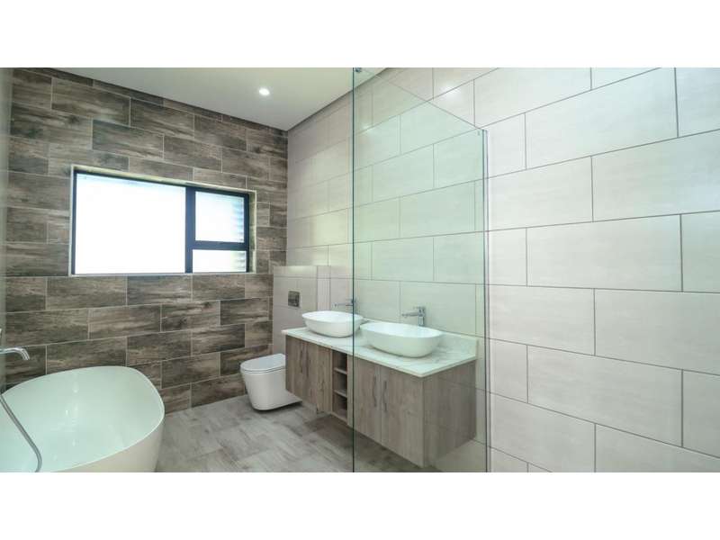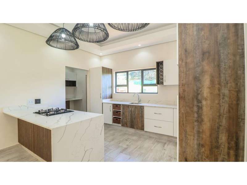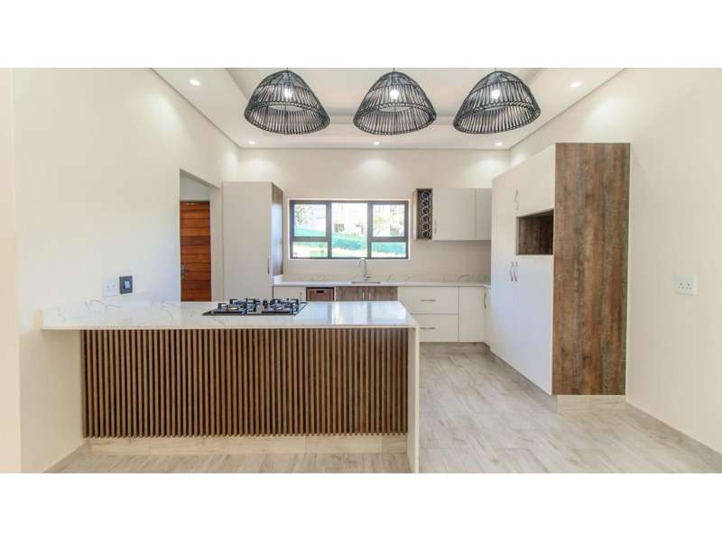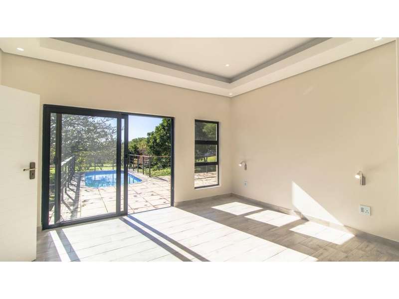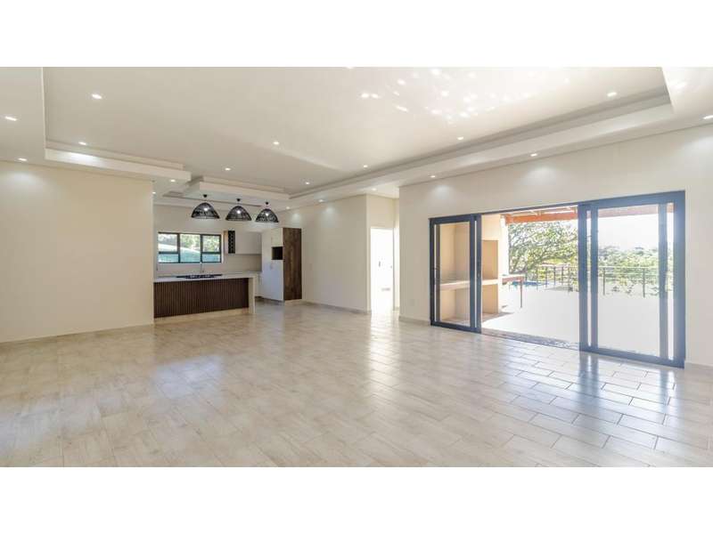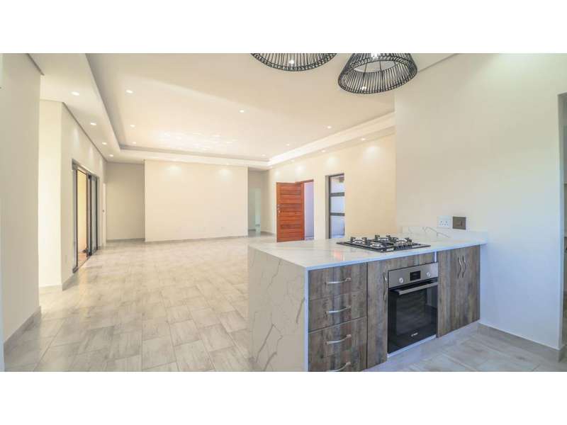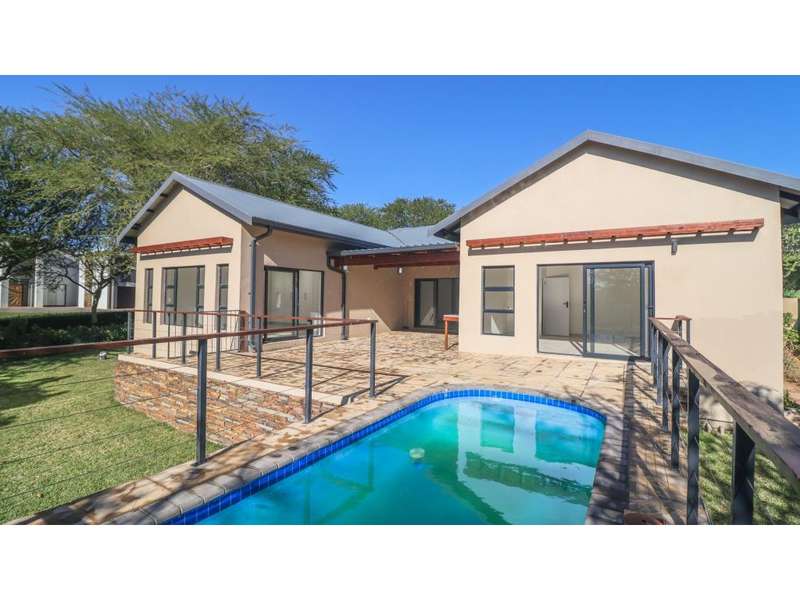 Enjoy unparalleled ease of living in this newly built, single-story home, perfectly designed for complete comfort within a secure estate. This expansive residence features five well-appointed bedrooms, four of which boast their own en-suite bathrooms, offering ultimate privacy and convenience. The fifth bedroom is complemented by a separate bathroom just across the passage, which ingeniously doubles as a guest loo. The heart of this home is its modern kitchen, which features a gas hob, ample cupboard space, and elegant granite countertops. This flows seamlessly into the open-plan living area, creating an inviting space for relaxation and entertaining. Step outside onto the covered patio, where you'll find a sparkling pool, the perfect spot for outdoor enjoyment. Beyond your private oasis, the home offers picturesque views overlooking a parkland area, providing a serene backdrop. Residents also benefit from being just a short stroll away from the communal swimming pool, tennis and volley ball courts and the welcoming clubhouse, perfect for recreation and social gatherings. This property truly combines luxurious living with the tranquility and security of estate life.