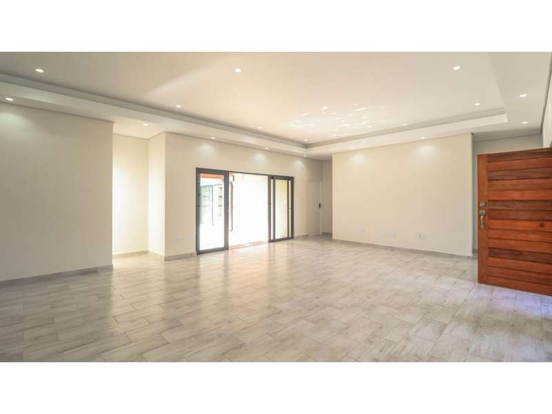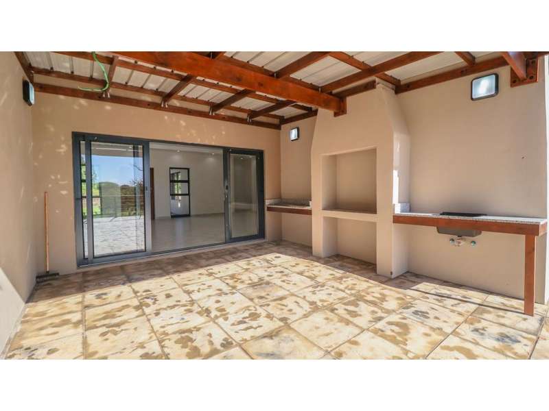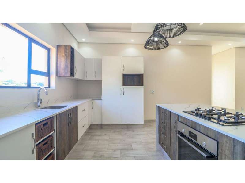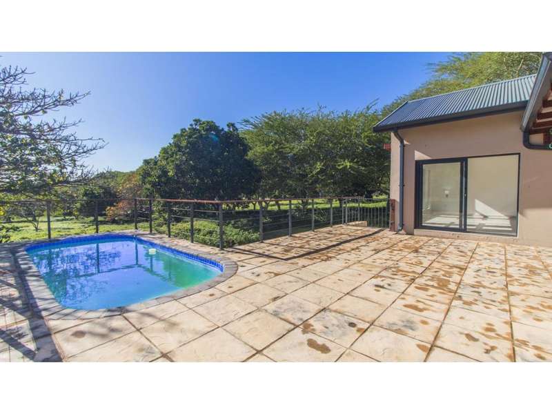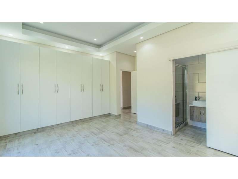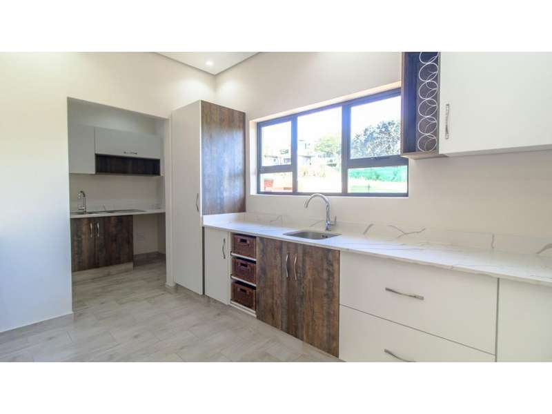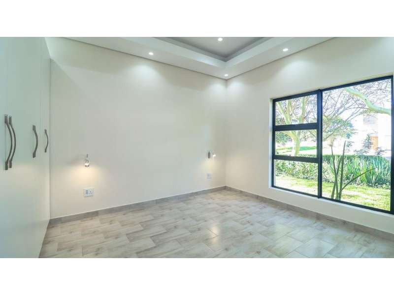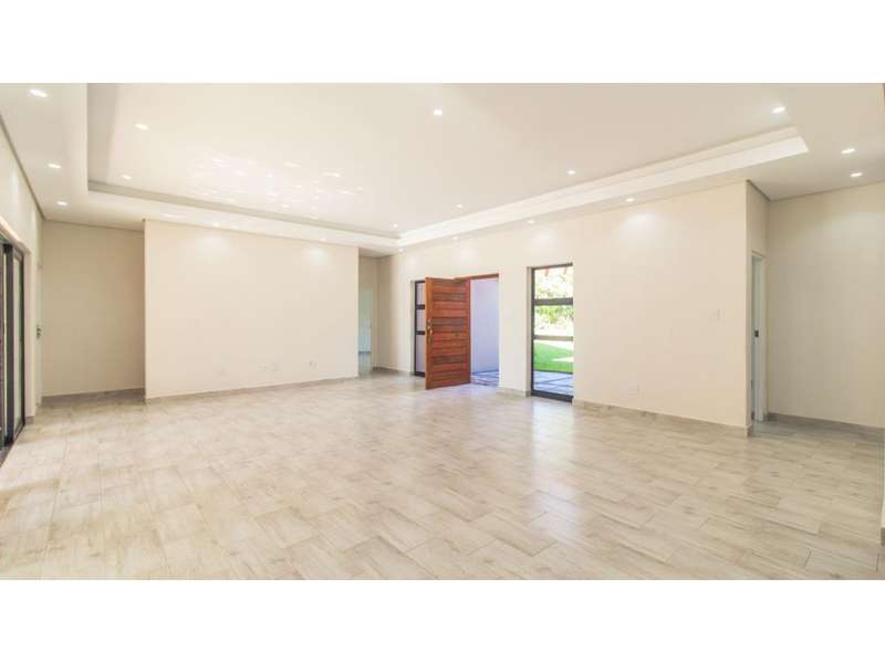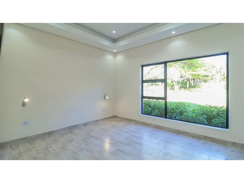 Enjoy unparalleled ease of living in this newly built, single-story home, perfectly designed for complete comfort within a secure estate. This expansive residence features five well-appointed bedrooms, four of which boast their own en-suite bathrooms, offering ultimate privacy and convenience. The fifth bedroom is complemented by a separate bathroom just across the passage, which ingeniously doubles as a guest loo. The heart of this home is its modern kitchen, which features a gas hob, ample cupboard space, and elegant granite countertops. This flows seamlessly into the open-plan living area, creating an inviting space for relaxation and entertaining. Step outside onto the covered patio, where you'll find a sparkling pool, the perfect spot for outdoor enjoyment. Beyond your private oasis, the home offers picturesque views overlooking a parkland area, providing a serene backdrop. Residents also benefit from being just a short stroll away from the communal swimming pool, tennis and volley ball courts and the welcoming clubhouse, perfect for recreation and social gatherings. This property truly combines luxurious living with the tranquility and security of estate life.