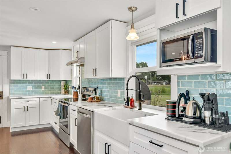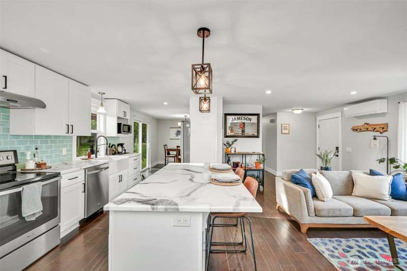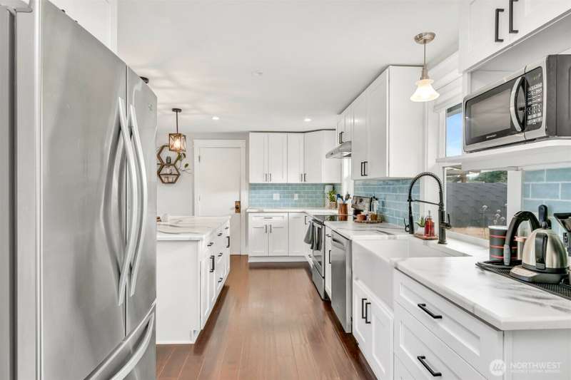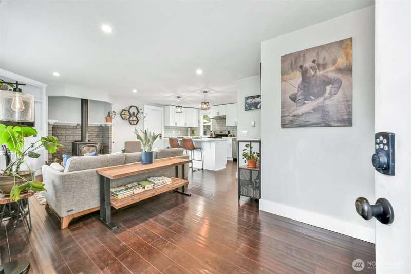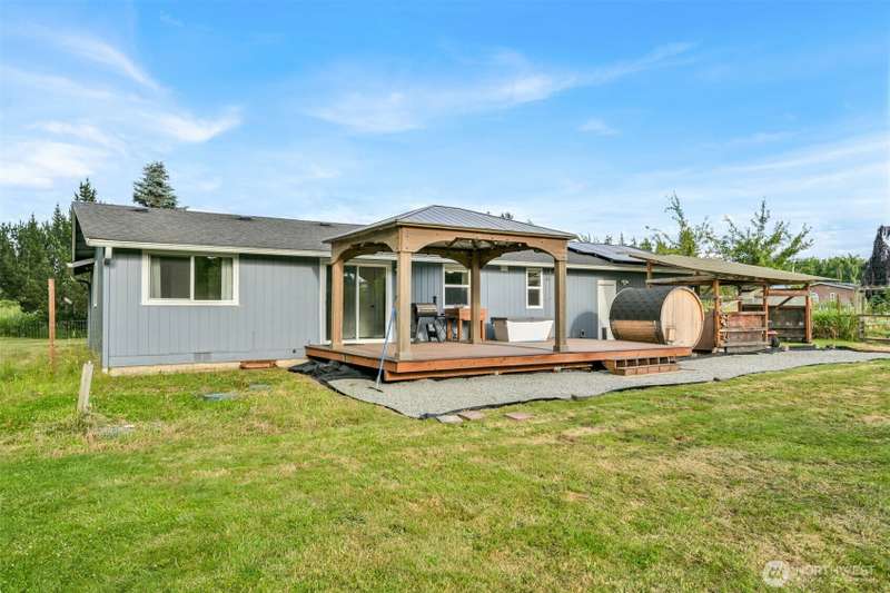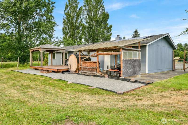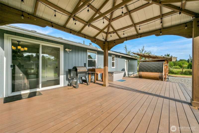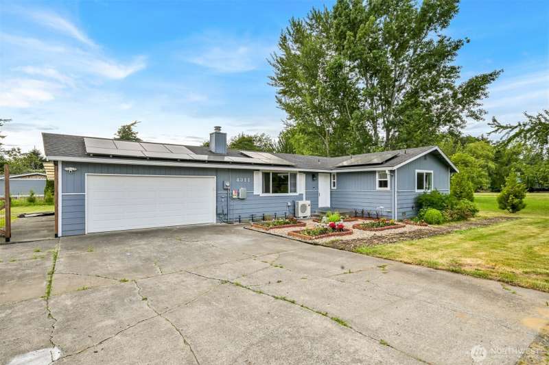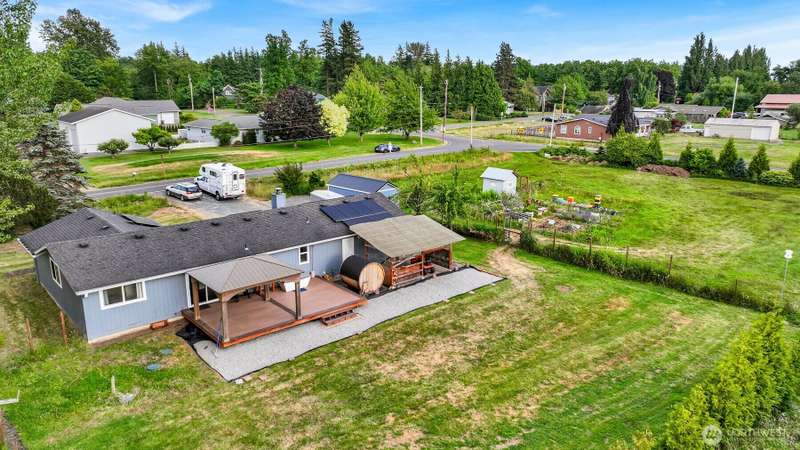 Country charm just minutes from downtown Bellingham and I-5! Nestled on a picturesque 1-acre lot, this updated home blends cozy living with modern touches. The remodeled kitchen features poured epoxy counters, subway tile backsplash, a farmhouse-style sink, and a spacious pantry. With 3 bedrooms—including a primary suite with a private ¾ bath—there’s space for everyone. Step outside to a large composite deck with covered seating and a hot tub area, perfect for relaxing or entertaining. The fenced backyard includes a firepit, while the expansive side yard (approx. ¾ acre) offers irrigated raised garden beds, and fruit trees. Ample space for a future shop, RV parking, or your next project. A rare mix of rural living with city convenience!