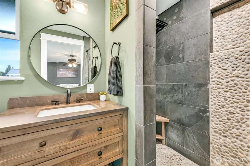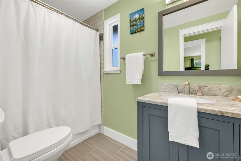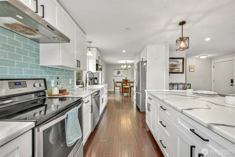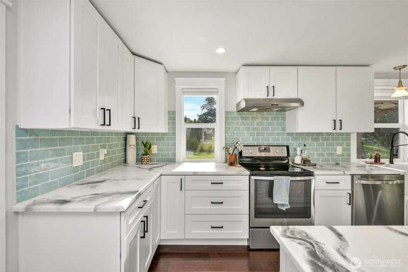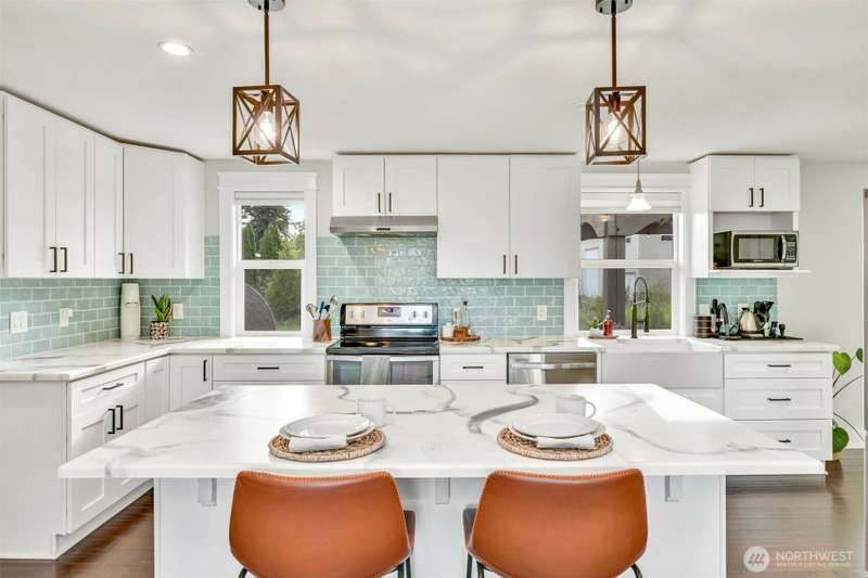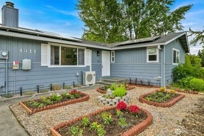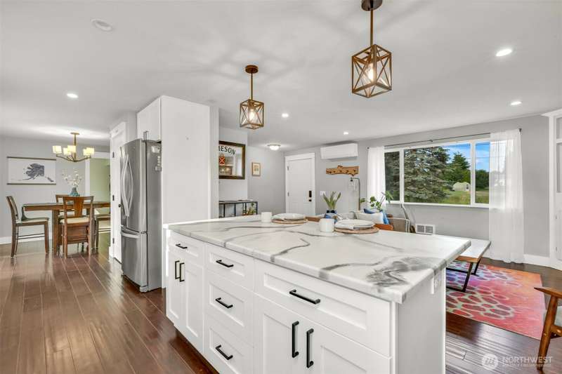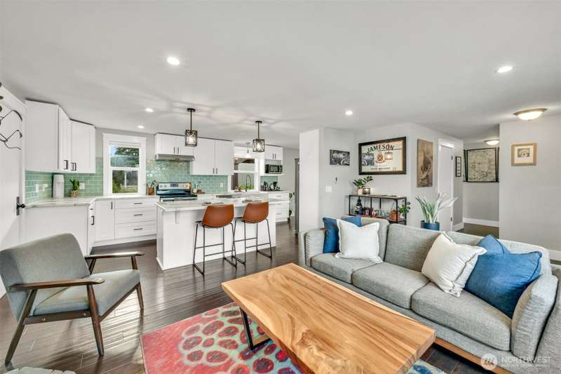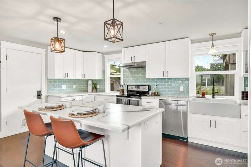 Country charm just minutes from downtown Bellingham and I-5! Nestled on a picturesque 1-acre lot, this updated home blends cozy living with modern touches. The remodeled kitchen features poured epoxy counters, subway tile backsplash, a farmhouse-style sink, and a spacious pantry. With 3 bedrooms—including a primary suite with a private ¾ bath—there’s space for everyone. Step outside to a large composite deck with covered seating and a hot tub area, perfect for relaxing or entertaining. The fenced backyard includes a firepit, while the expansive side yard (approx. ¾ acre) offers irrigated raised garden beds, and fruit trees. Ample space for a future shop, RV parking, or your next project. A rare mix of rural living with city convenience!