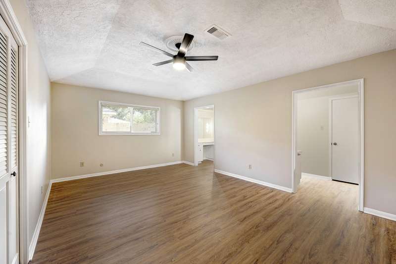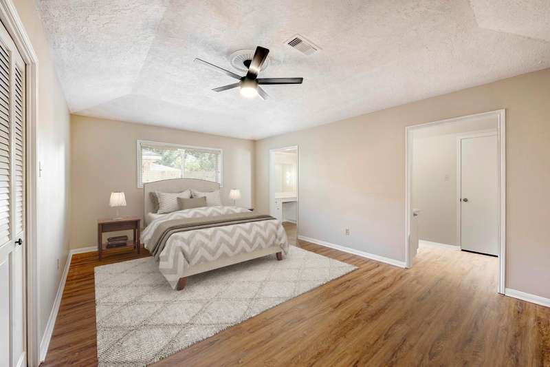 Your new home is waiting in the golf course community of Quail Valley. Featuring four bedrooms, two separate living spaces and large covered patio, 3603 Point Clear Drive is suburban living defined. The large primary bedroom features an ensuite bath with double sinks, built-in chest of drawers, a built-in vanity and three closets! All three secondary bedrooms are generously sized and include new carpet (2025). The large living room with vaulted ceiling and fireplace also features large windows looking out to the covered patio. Almost all of the home has been recently painted and has new vinyl plank flooring and carpet throughout most of the house (2025). Seller also has recently installed double-paned windows, new roof (2017) and new A/C (2018). All info per Seller.