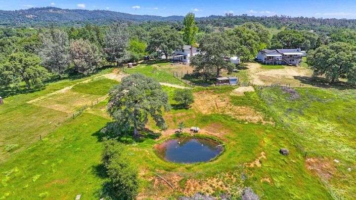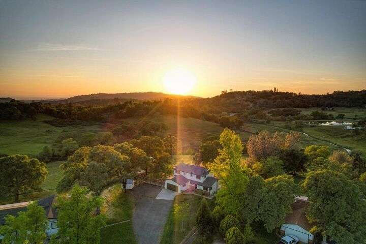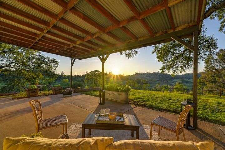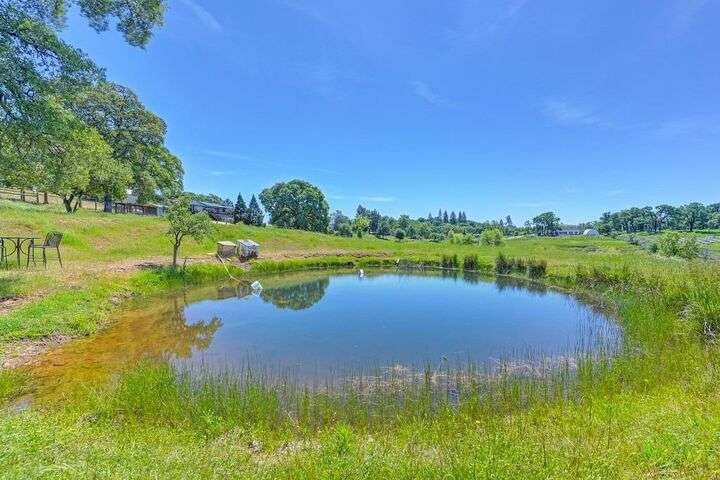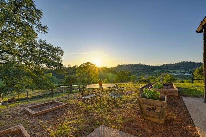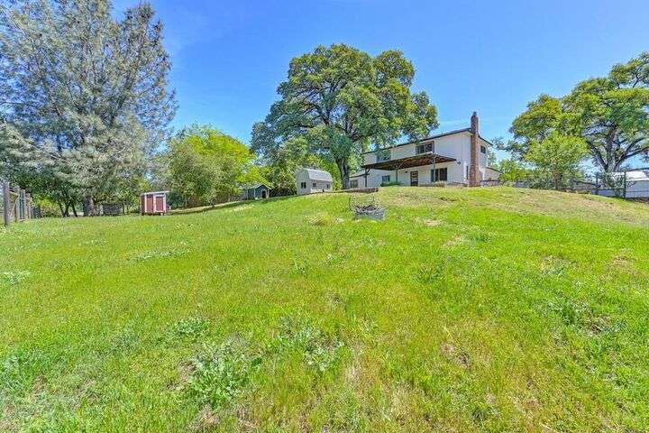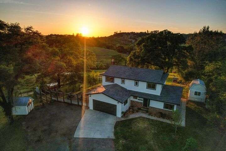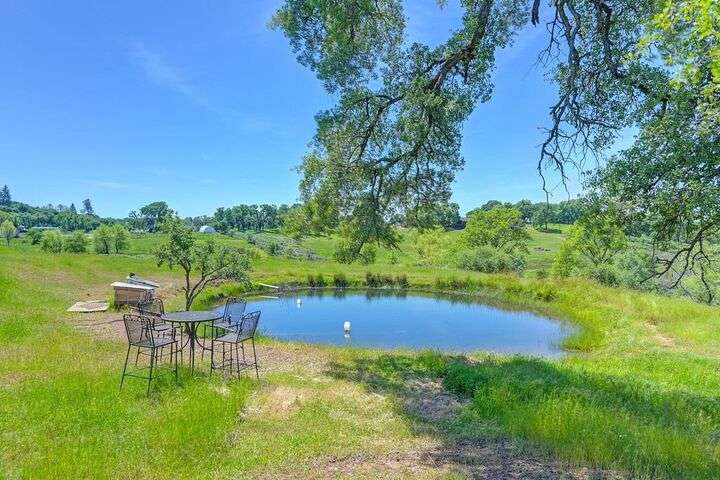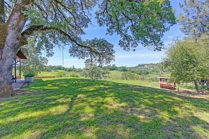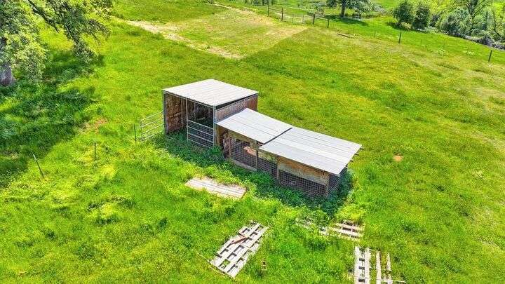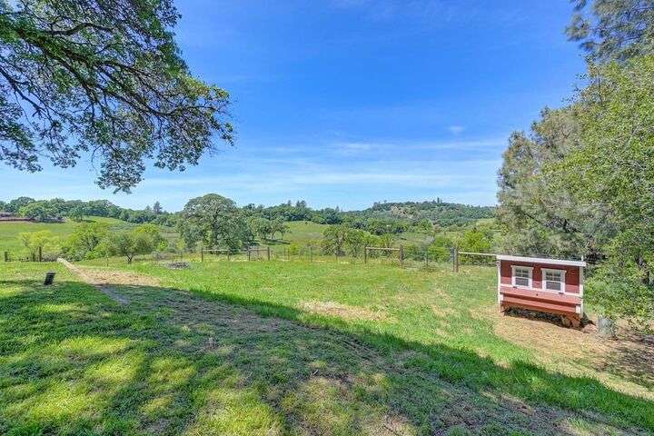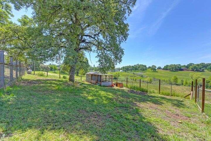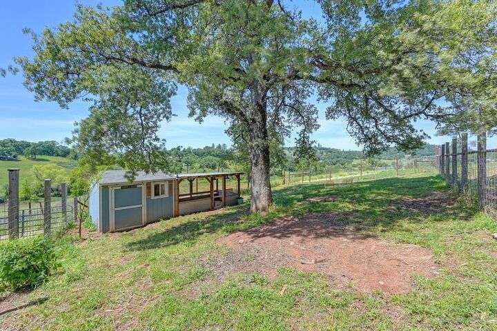 Among rolling hills, this property is like a dream and is unlike anything else on the market. Charming and classic, this modern farmhouse features a view that simply cannot be missed. You will want to sit out on the back patio or in the pasture for hours listening to the wind in the trees, gazing at the rolling hills, local ponds, and grapevines. Step inside and you will find rustic elegance throughout. The wood ceramic plank flooring throughout and the hexagon tiles in the bathrooms are a real highlight. Fresh interior and exterior paint, a brand new 30 yr roof, new Anderson lifetime windows, and other updates make this home not only turnkey, but a retreat. This home is ready for animals and the homestead you have been longing for. There are 2 large fenced and cross fenced pastures, 1 smaller fenced area that makes for large chicken area with a coop, several areas of shade and a single stall structure with a lean to for goats or horses, an additional fenced area with raised garden beds, 1/2 of irrigation water in the summer that feeds the year round pond, and an amazing well producing 15 gal / min. With four bedrooms, two and a half baths, multiple living areas, and a large kitchen this home is not lacking areas to entertain.