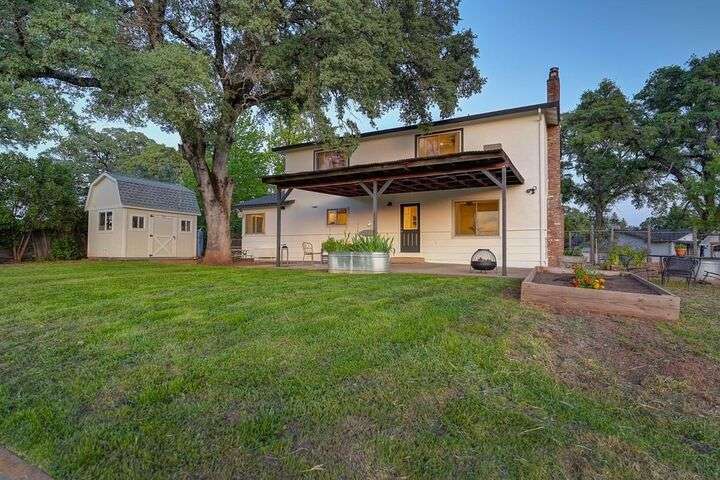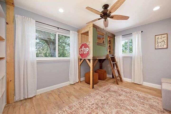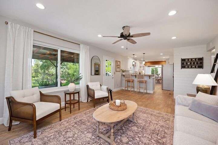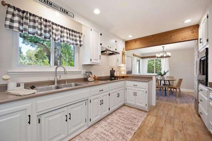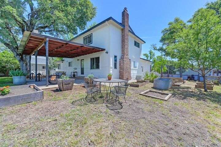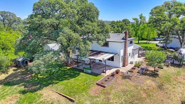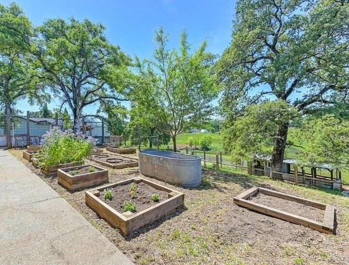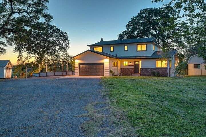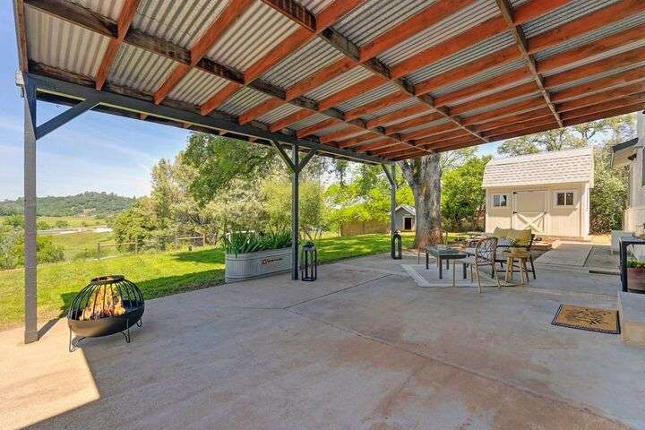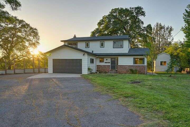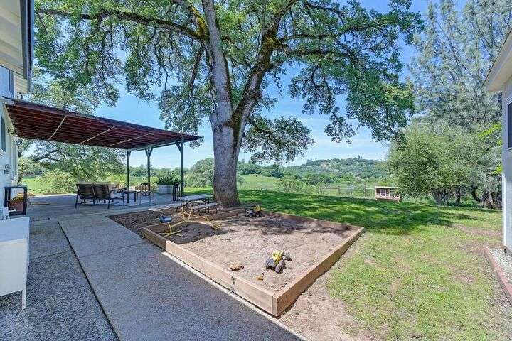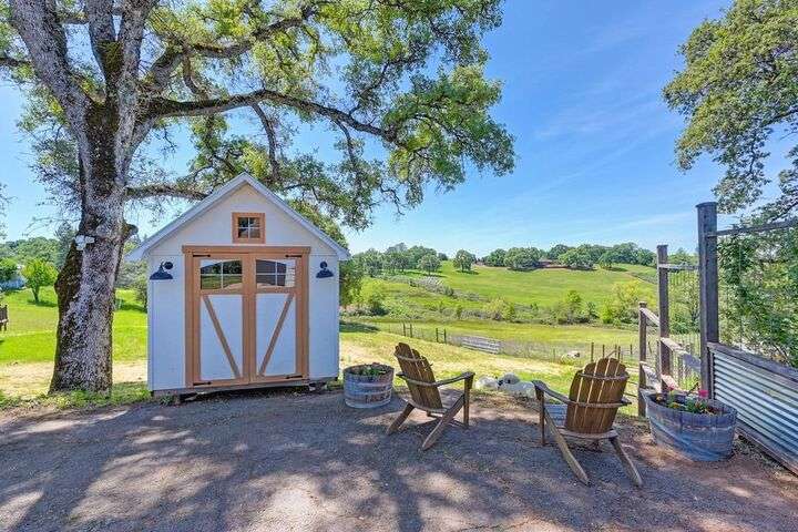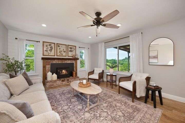Among rolling hills, this property is like a dream and is unlike anything else on the market. Charming and classic, this modern farmhouse features a view that simply cannot be missed. You will want to sit out on the back patio or in the pasture for hours listening to the wind in the trees, gazing at the rolling hills, local ponds, and grapevines. Step inside and you will find rustic elegance throughout. The wood ceramic plank flooring throughout and the hexagon tiles in the bathrooms are a real highlight. Fresh interior and exterior paint, a brand new 30 yr roof, new Anderson lifetime windows, and other updates make this home not only turnkey, but a retreat. This home is ready for animals and the homestead you have been longing for. There are 2 large fenced and cross fenced pastures, 1 smaller fenced area that makes for large chicken area with a coop, several areas of shade and a single stall structure with a lean to for goats or horses, an additional fenced area with raised garden beds, 1/2 of irrigation water in the summer that feeds the year round pond, and an amazing well producing 15 gal / min. With four bedrooms, two and a half baths, multiple living areas, and a large kitchen this home is not lacking areas to entertain.