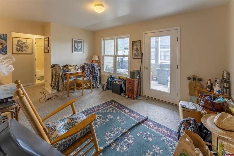 Jana Barrett, Bluebird Real Estate, LLC, C: 970-209-9510, janabar@rmi.net, www.buycrestedbutte.com: A rare opportunity to live in town, Unit #2-C at the newly offered Cana Condominiums is a spacious 2-bedroom, 1-bath second-floor unit with stunning views of Crested Butte Mountain. Located on the north side of the building, this unit features an open-concept floorplan with generous living, dining, and kitchen areas. Enjoy morning sunrises and extra storage space from the oversized 60-square-foot covered deck—perfect for bikes and gear. Natural gas in-floor heat keeps your toes warm in the winter months. There's also a private closet per residential unit in the hallway housing a full-size, stack washer/dryer. This prime location is ideal for locals, with restaurants, bars, grocery stores, shops, the skate park, ice rink, and even the bus stop all within walking distance. The free bus provides convenient access to the ski area in winter. This unit includes two dedicated parking spaces per the plat. This is the first time this building is being offered as condominiums, with the process 99% complete. All sales are contingent on final approval from the Town of Crested Butte. Important Note: A restrictive covenant is in place and applies to all residential units: "Units must be used as long-term rentals unless the owner also owns a non-residential unit in the building." Possible Owner financing with 30% down. Built in 2001 by Christopher Klein Construction, it's one of the newer buildings on the street and received a fresh exterior paint job in 2023. The building features a durable Carlyle brand rubber roof. The first floor contains three sunny retail/office spaces, while the second floor includes two 2-bedroom units flanking a smaller 1-bedroom unit. Access to the residential units is via an interior stairwell on the building’s east side.