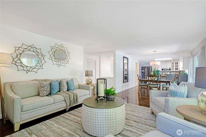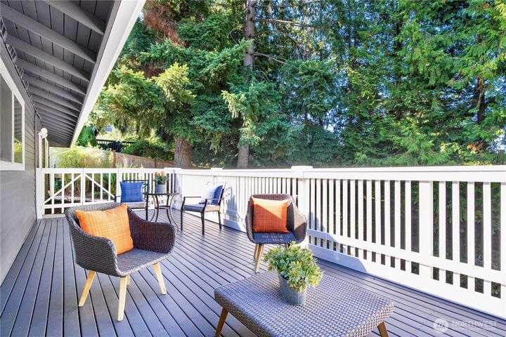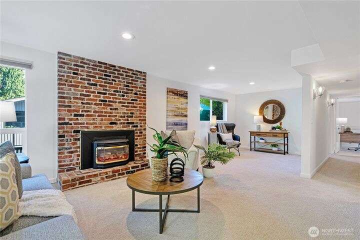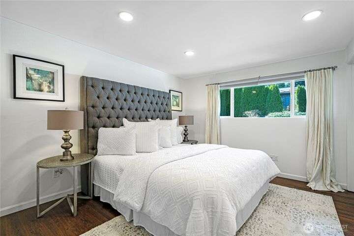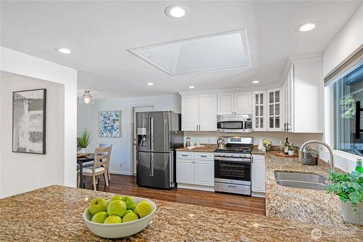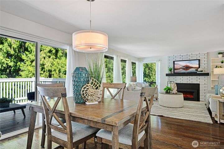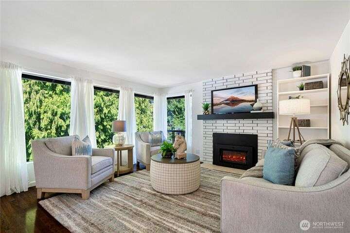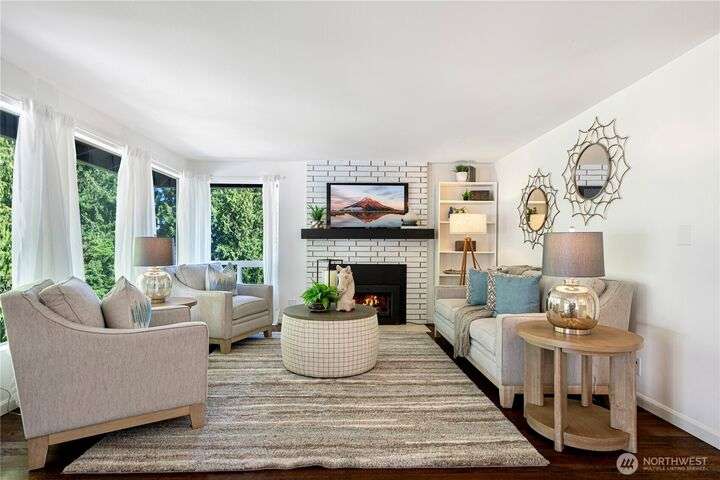 Bretton Wood Neighborhood – Light-filled home with expansive windows overlooking the backyard and two large decks. The kitchen features a skylight, breakfast nook, granite counters, and stainless steel appliances. Recent updates include fresh exterior paint plus new A/C, furnace and heat pump (2022). Main level offers 3 bedrooms, a full bath, and a remodeled ¾ primary bath. Lower level includes a spacious family room, full bath, 4th bedroom, and office. Excellent schools, surrounded by lakes, parks, and amenities—close to major employers with an easy commute via 520 and I-90, yet tucked away in a peaceful setting.
