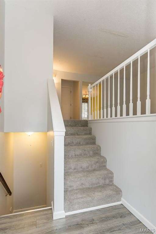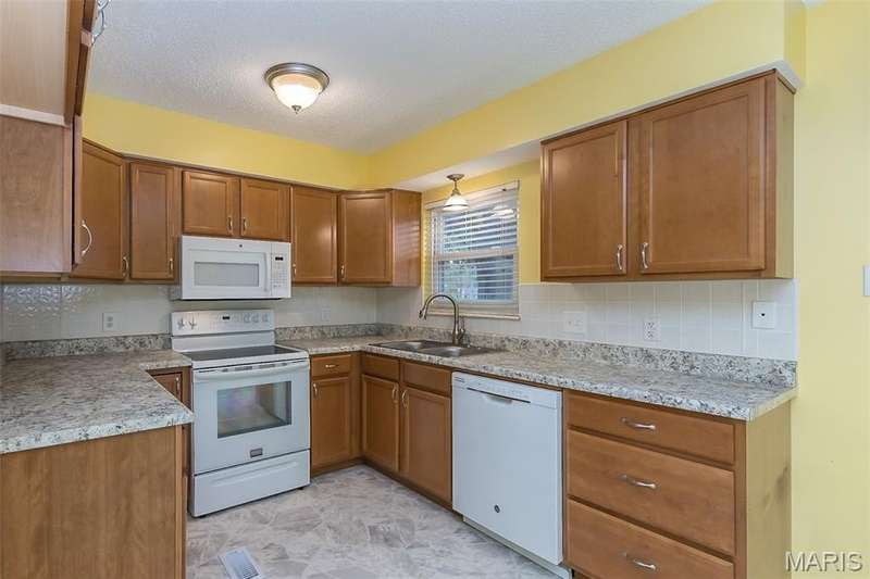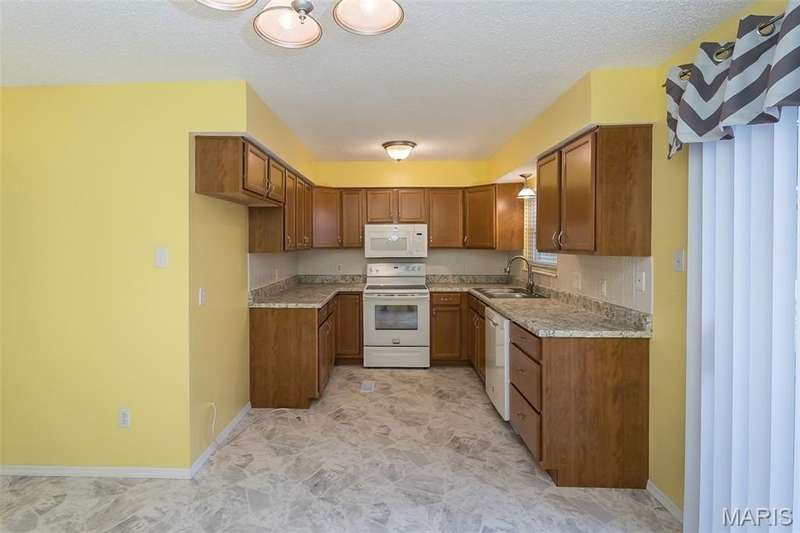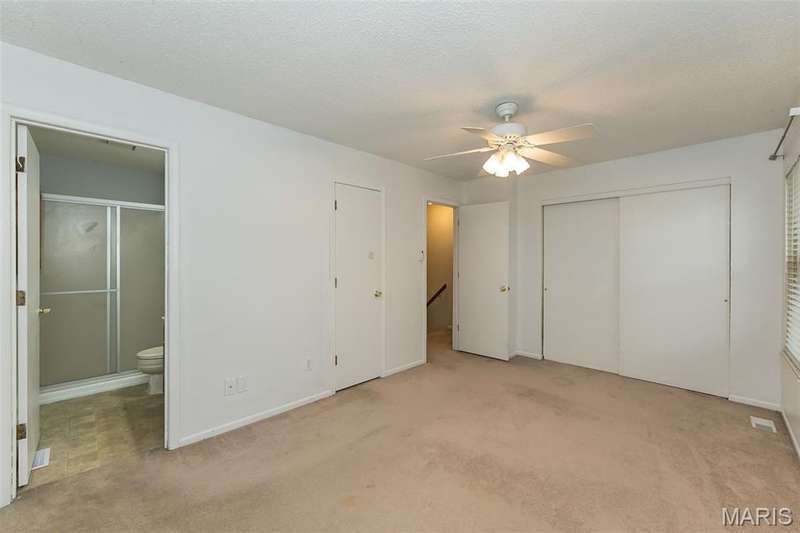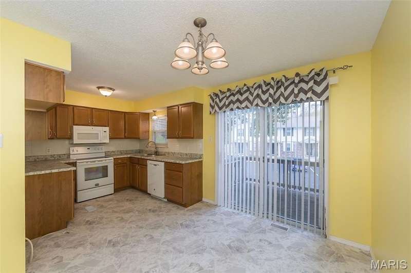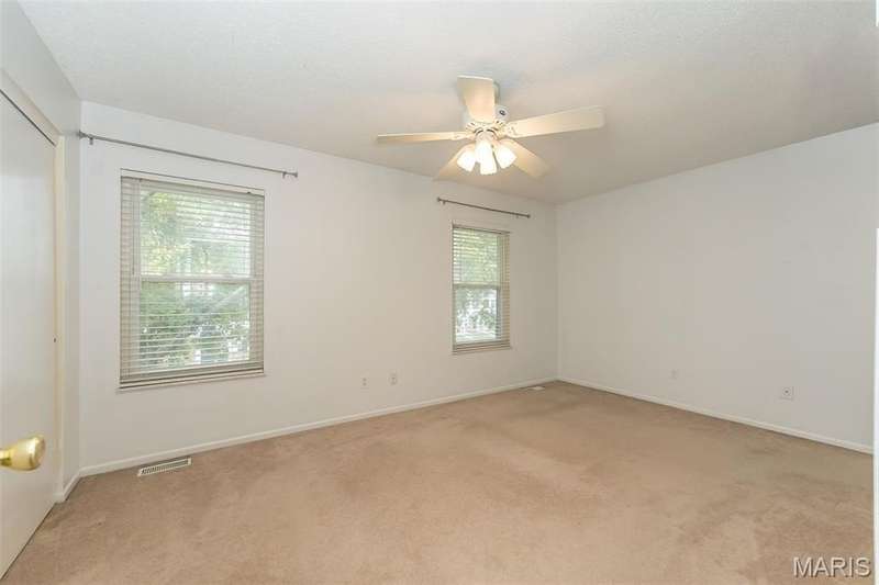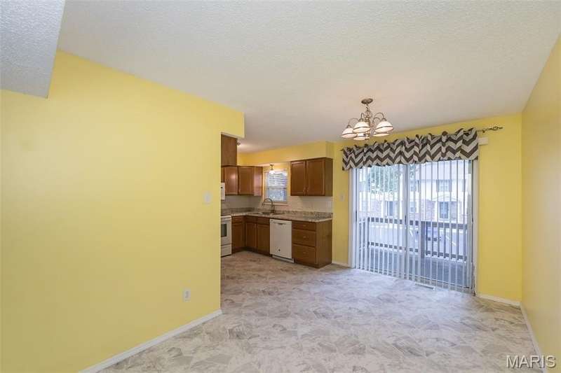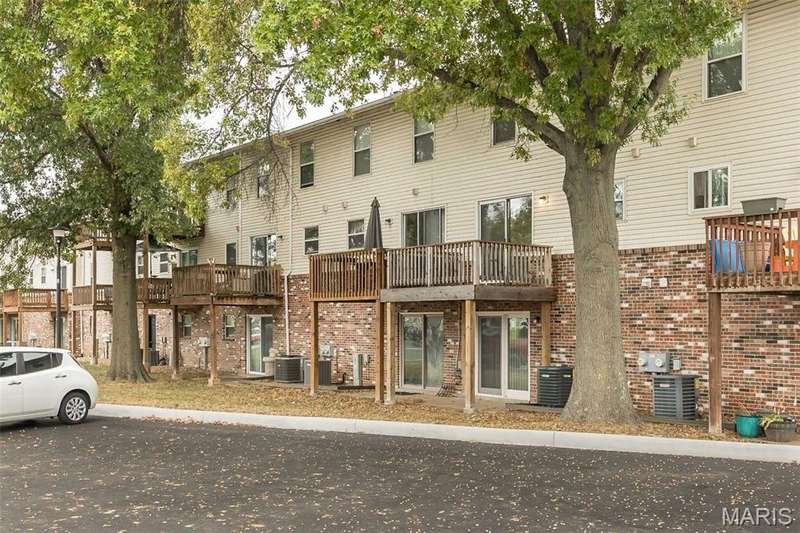Affordable, exceptional 3BR, 2.5 bath home with partially finished walkout basement and 1 car garage. Move in ready townhome has updated decor & major systems, including new air conditioner. Updated kitchen cabinets, appliances, counters and flooring. Exit the dining area sliding doors to a deck that covers the patio below. Main level consists of kitchen/dining area, powder room, and a living room that has beautiful new carpet (that continues up the stairs). Upper level you will find 3 bedrooms and 2 full baths; master suite offers full bath, ceiling fan, & 2 closets: one a walk-in plus an additional closet with by-pass doors. Lower level has a partly finished rec room (potential of 4th bedroom) with luxury plank flooring & slider doors that lead to a covered patio. The garage entrance door is at this level. This property is a Planned Unit Development whereby the lot is privately owned but is maintained by the association. The community offers a pool and other recreational green space, plus across the street is a St. Peters City Park! Per the HOA: no more than 2 pets are allowed per unit (2 cats, or one cat and one dog under 25 pounds). St. Peters Condominiums are FHA Approved!