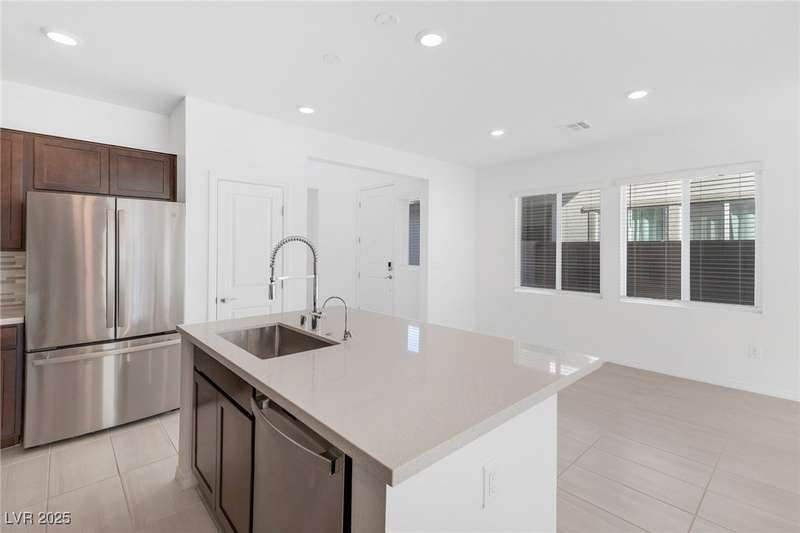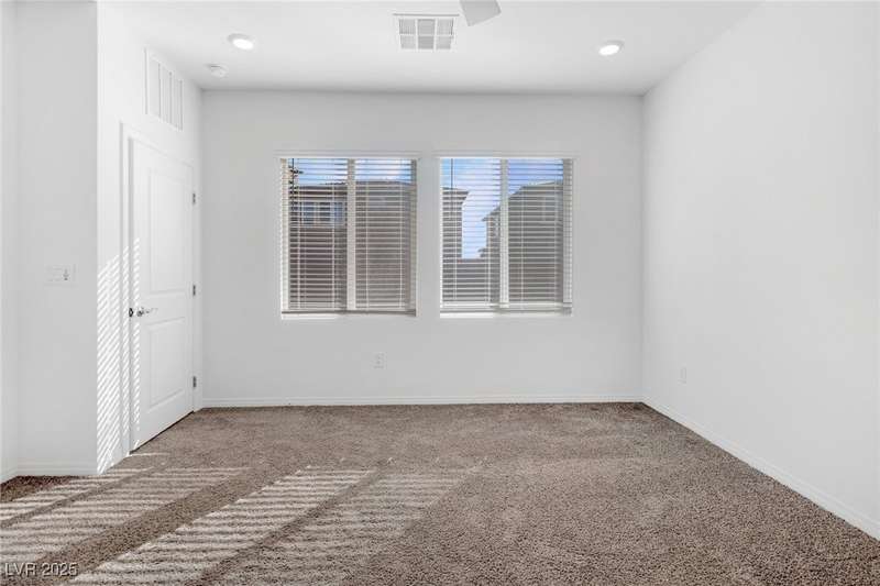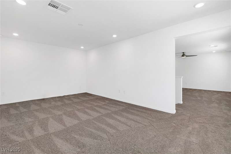 Welcome to your new home in the desirable Palmer Ranch community! This nearly new two-story residence offers 3 spacious bedrooms, a versatile loft, and an additional room that can easily convert into a 4th bedroom—perfect for a growing household or home office. Ideally located just five minutes from both I-15 and I-215, this home combines convenience with comfort. Freshly painted and barely lived in, it feels like new! The downstairs primary suite features a large walk-in custom closet and an adjoining bath with dual sinks. Enjoy a bright, open living area with expansive windows that fill the space with natural light and a ceiling fan for year-round comfort. The modern kitchen showcases a large island with breakfast bar seating, stainless steel appliances, recessed lighting, and abundant cabinet space—ideal for both everyday living and entertaining. With its thoughtful layout, prime location, and move-in-ready condition, this home offers the perfect blend of style and functionality.