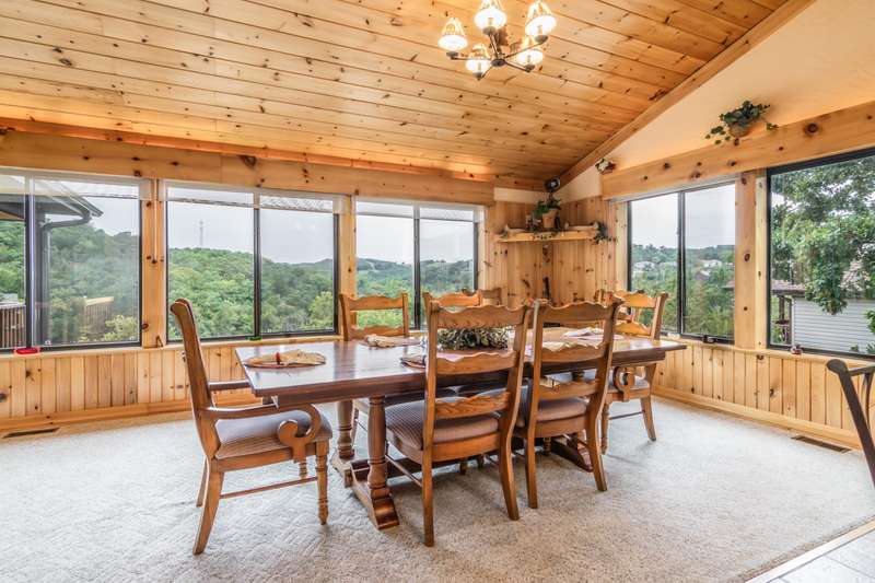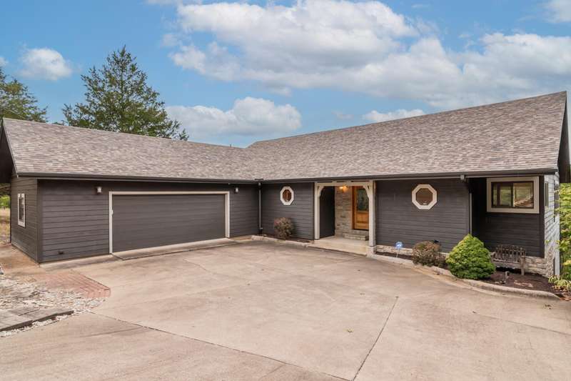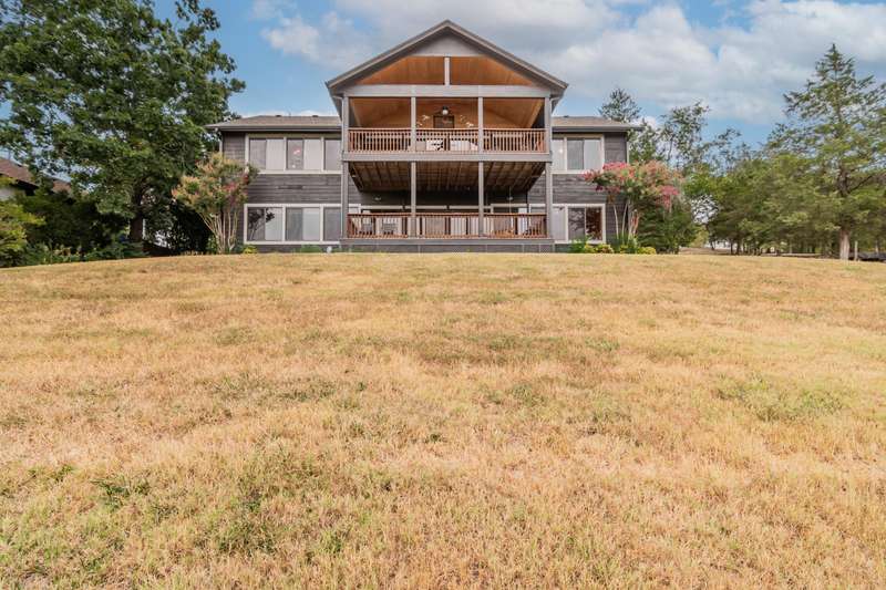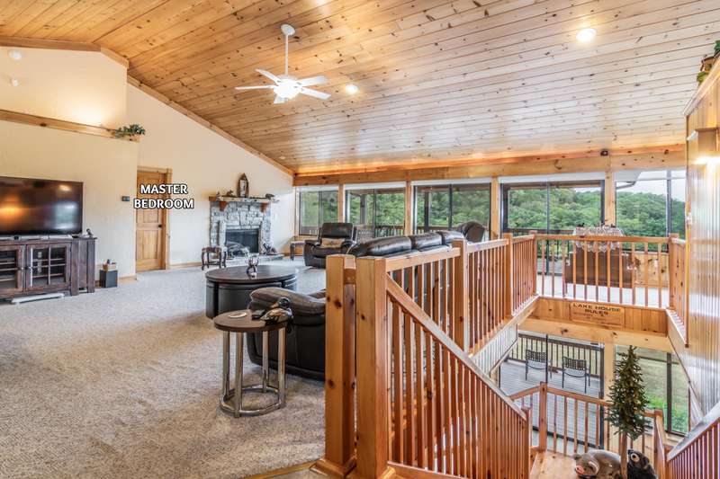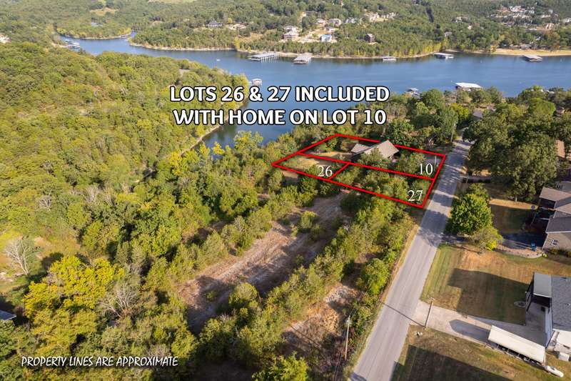 Satisfy your lake time craving with this lakefront and lake view home on Table Rock Lake. It is perfectly located near the west end of Long Creek Bridge just off Hwy 86 near Big Cedar Lodge, Top of the Rock, Thunder Ridge, Branson Airport and other great attractions. When you enter this home, you will appreciate the soaring ceilings and be drawn to the covered deck overlooking the lake. The main level features an open flowing floor plan with kitchen, dining and great room, along with laundry, guest bath and the master suite. You'll appreciate the water view while preparing food in the kitchen, sharing dinner with family and friends around the dining table, hanging out in the great room with gas log fireplace, or waking up in the master suite. The lower level features a wet bar area, large open family room, two bedrooms (1 non-conforming) and 2 bathrooms. Plus, covered deck with easy access to the shoreline of the lake. The owner intends to include most of the furniture, furnishings and dcor in the home along with a canoe so you can immediately start enjoying lake time. Three lake lots are included in this purchase and 4 additional adjoining lots are available for an additional $84,000. This could be the place you have been waiting for so make plans to visit soon.