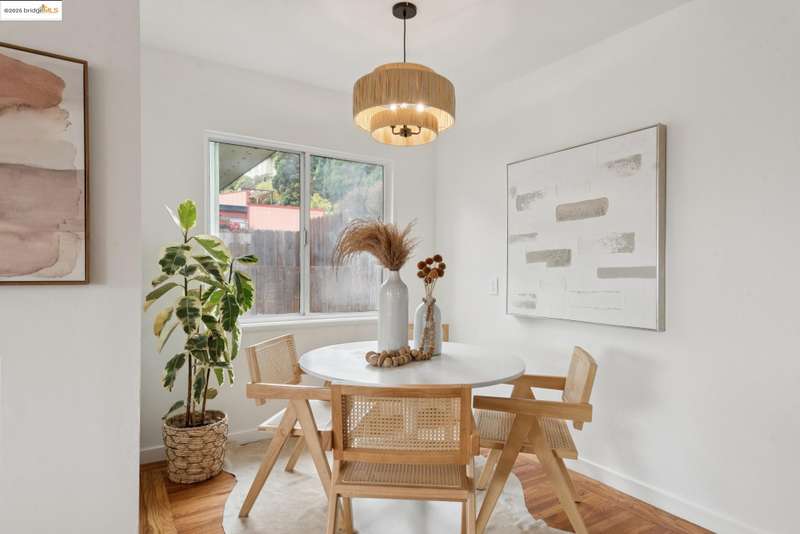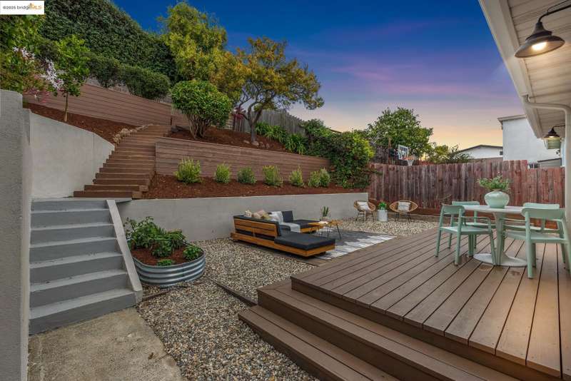 Home sweet home! This inviting El Cerrito gem is perfectly perched on Junction Ave & blends a peaceful outdoor lifestyle w/stylish interior touches. Golden hardwood floors & soft, neutral hues set a welcoming tone throughout. Sleek corner fp anchors the living room, where sunlight streams through a picture window that frames scenic images of the neighborhood. Dining area flows into a modern kitchen w/quartz countertops, decorative tile backsplash, a suite of stainless-steel appliances & ample cabinetry. Each comfortable retreat offers direct access to a private deck, plenty of closet space & a shared bath. Beautifully landscaped front & back yards provide the indoor-outdoor living we all crave. In the front, you will find multi-level brick-accented landscaping for great curb appeal. Terraced backyard will excite farm-to-table enthusiasts w/your 1st planter box w/ seasonal veggies. Enjoy privately or share with family & friends, multiple seating areas including the private deck, lower level & serene upper viewing terrace perfect for stargazing or enjoying peekaboo views of the bay. 1-car garage w/interior access. Minutes from Del Norte BART w/easy access to I-80 & other local freeways making this a launchpad to the best of the East Bay. This is the stuff dreams are made of!