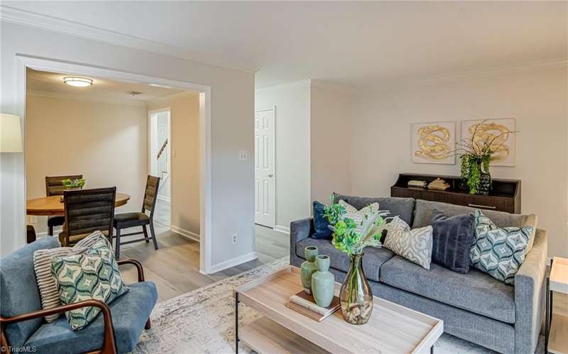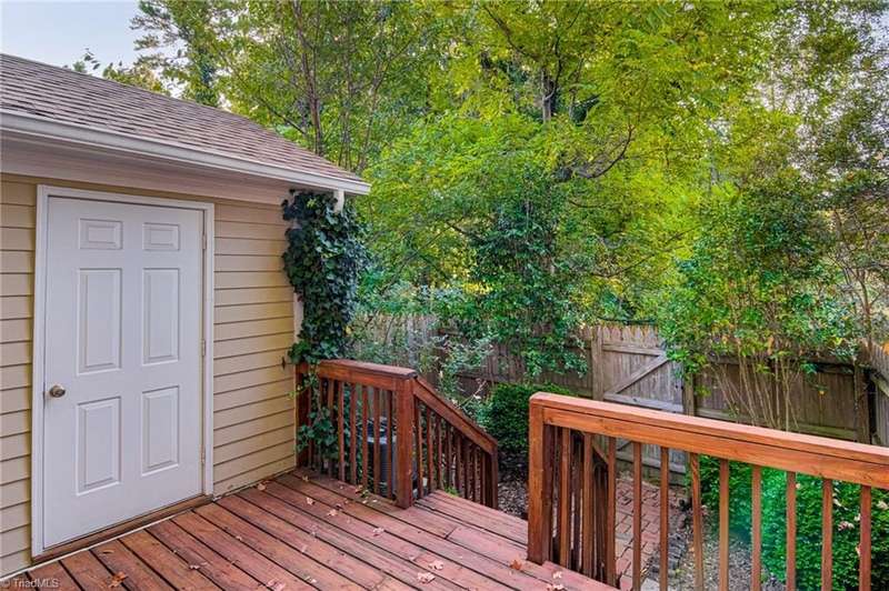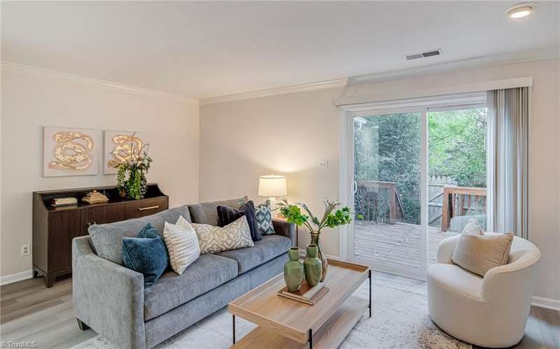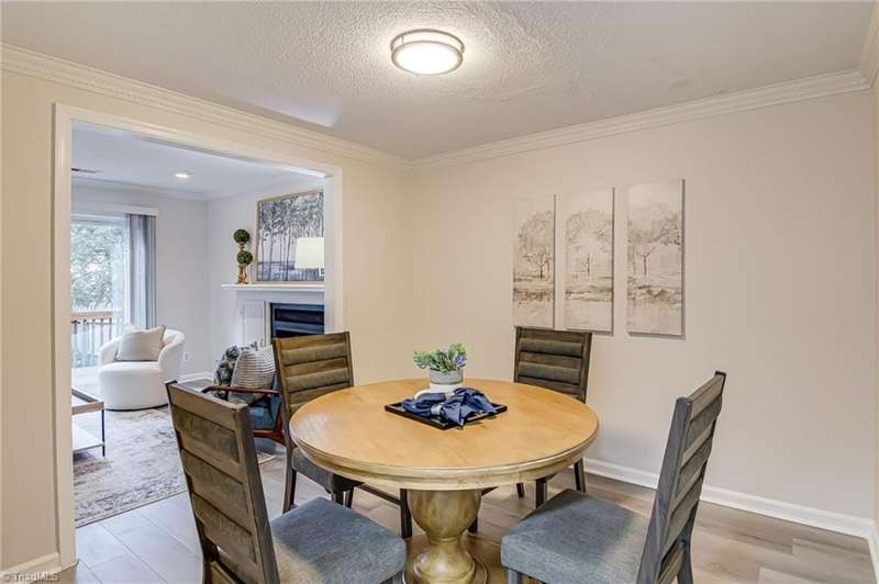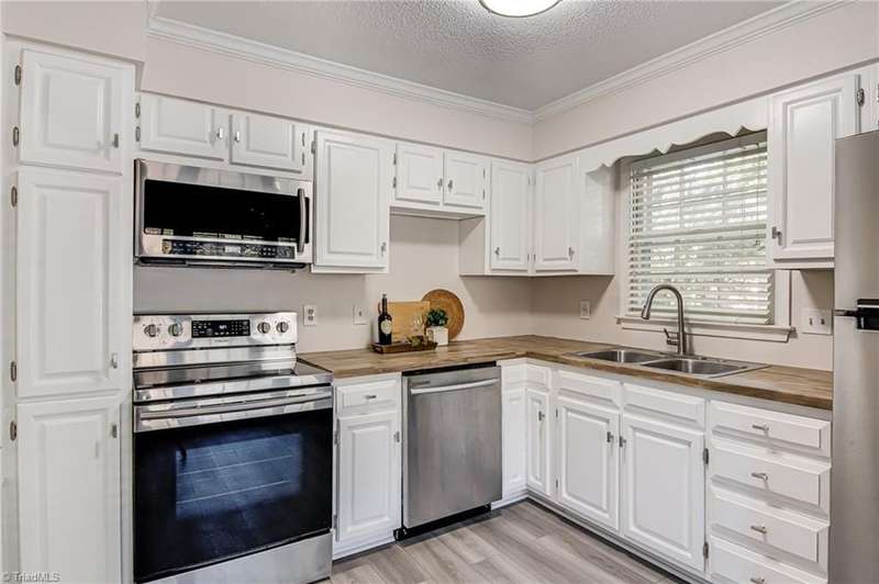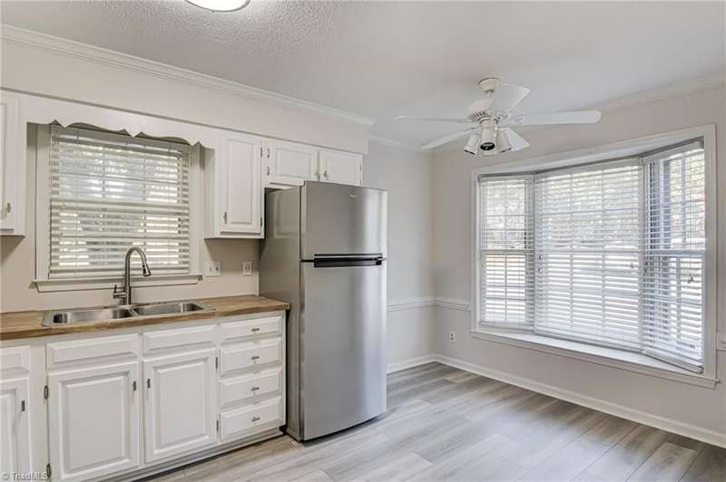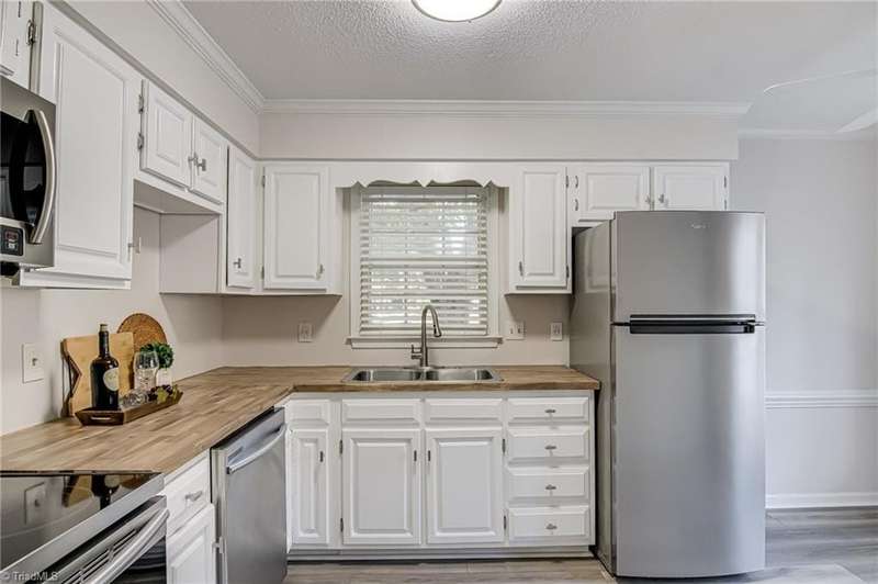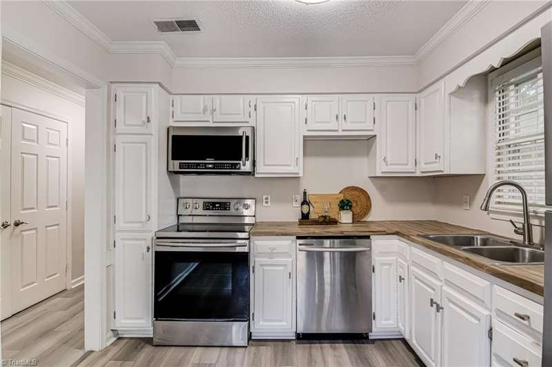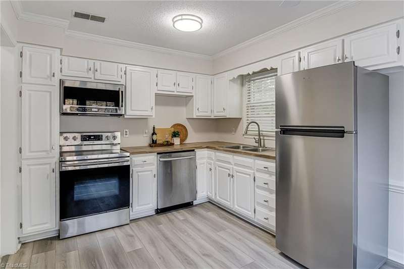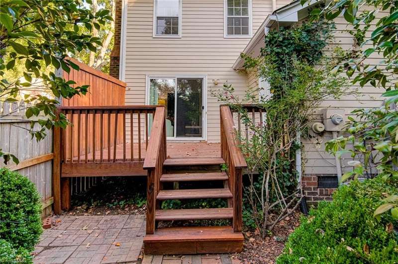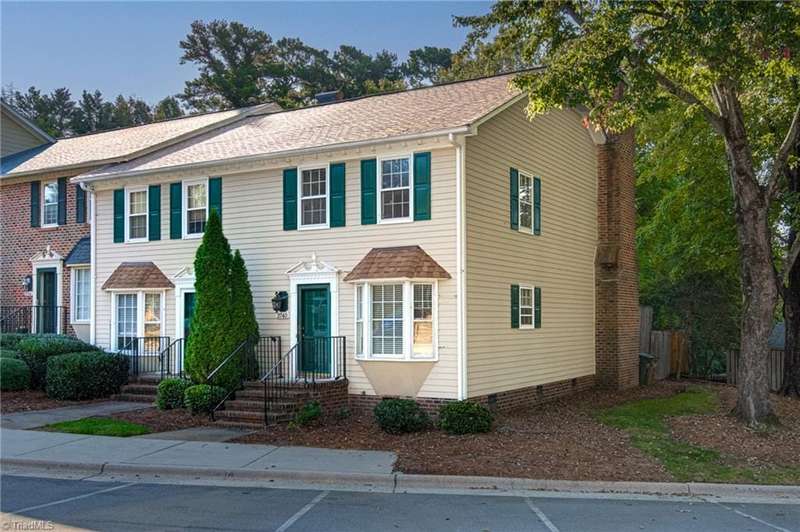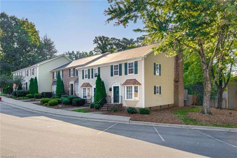 Beautifully updated end-unit townhome offering style, comfort, and convenience in prime NW Greensboro. Thoughtfully refreshed with new luxury vinyl plank flooring and fresh paint throughout, this home is trulymove-in ready. The kitchen features rich butcher block countertops, white cabinets and newer stainless steel appliances with a cozy breakfast area. A separate dining room flows seamlessly into the fireside living room, perfect for entertaining or relaxing. Step outside to the deck with an outdoor storage closet and a fenced backyard. Upstairs, youll find 2 generous bedroom suites, each with an updated bathroom and a walk-in closet, offering privacy and comfort for family or guests. Close proximity to parks, shopping, dining, and major traffic arteries.