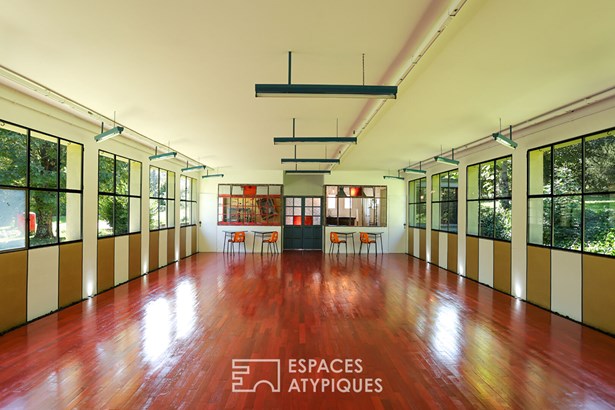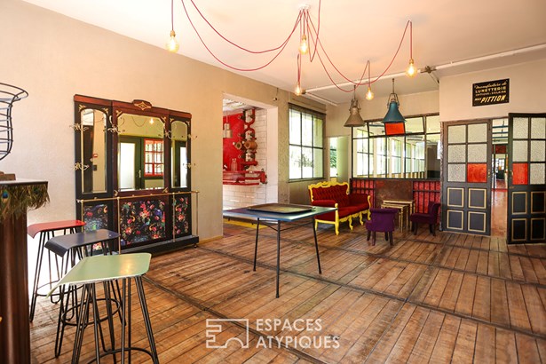 With its large openings and raw materials, this space exudes a unique loft atmosphere. The industrial charm blends perfectly with the history of the place, offering an inspiring setting for various activities.