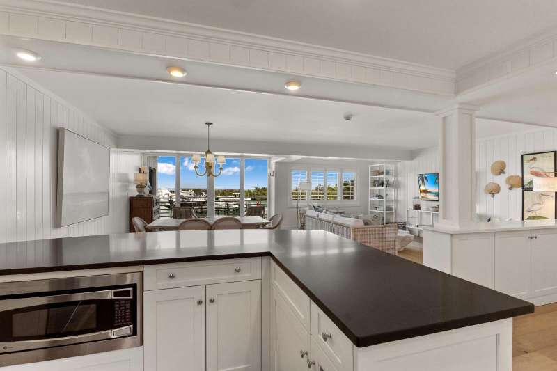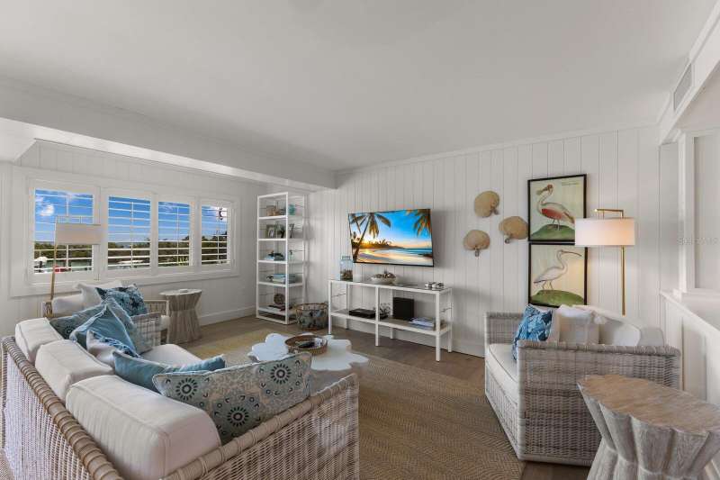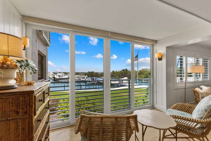 No damage from Hurricane Milton ! This first floor all one level beautifully furnished property was originally 2 units that were combined to afford an open floor plan and an extra bonus room that serves as a 3rd bedroom if so desired! Full view harbor waterfront where dolphins and manatees are often present! Enjoy majestic sunrises with expansive views in this special property. Boca Grande Club is an amenity rich community with several pools, private beach access, 8 tennis courts, state of the art fitness center and the best private restaurant on the island! Enjoy an end of day cocktail at the poolside Tiki bar, overlooking the beach and a glorious sunset. One time Club Initiation fee of $50,000.00 and one time Capital Improvement Fee of $15,000.00 upon membership.