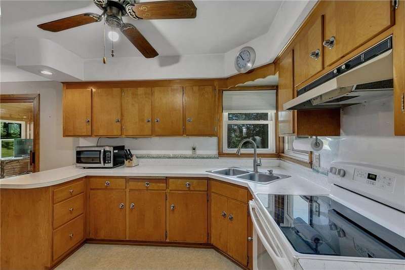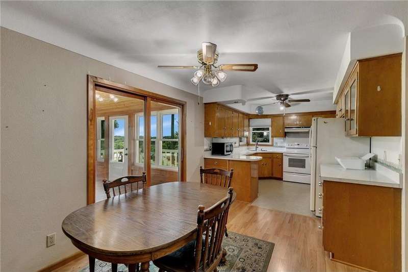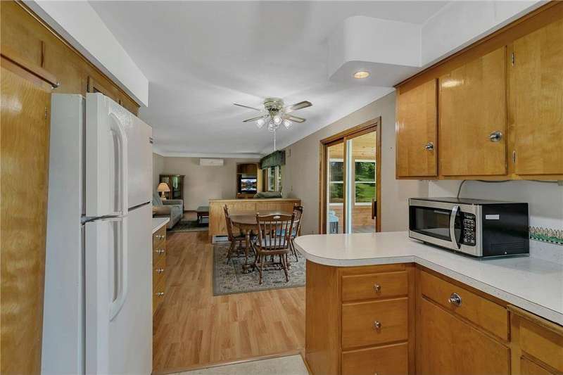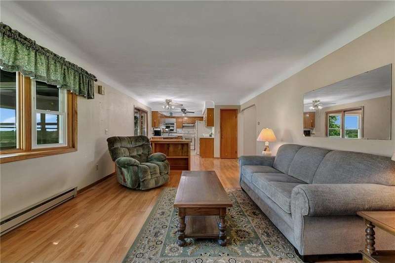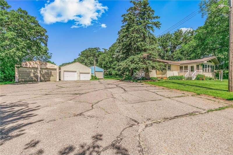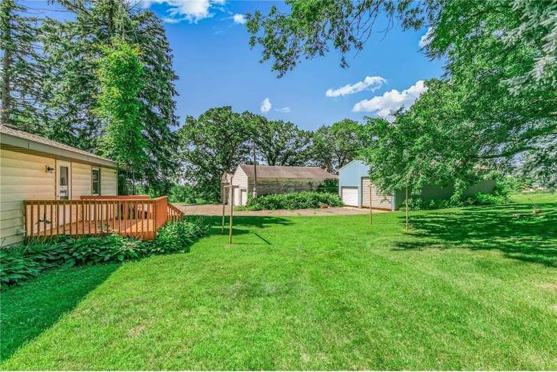 Exceptional updated Rambler on 5 acres with great tree coverage. Extra outbuildings for the toys, rental, or equipment. Overlooks Kimball golf course. Also has building out back for the animals. Bathroom was just updated with walk-in shower and flooring throughout the main level. Lower level and main level laundry.